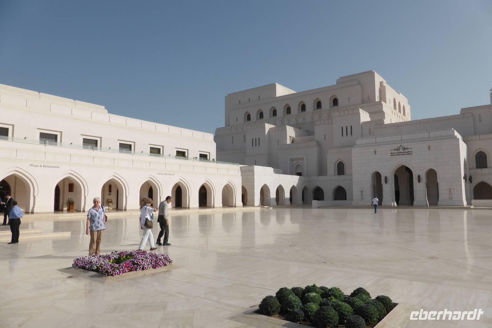 Am Morgen besichtigen wir das imposante Opernhaus. Das Royal Opera House Muscat, kurz ROHM, ist nicht irgendeine Oper, sondern das einzige Opernhaus in der ganzen Golfregion. Es ist ein Opernpalast, Prestigeobjekt des Sultans und Ausdruck seiner Liebe für klassische Musik.