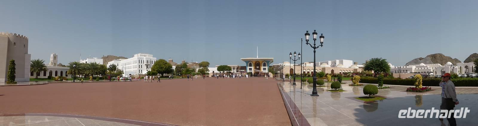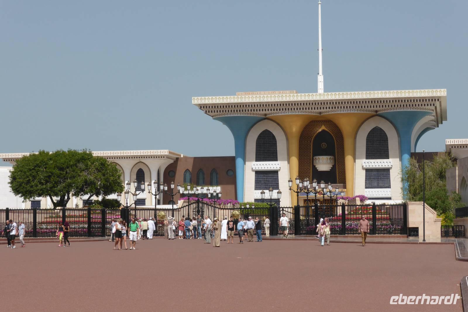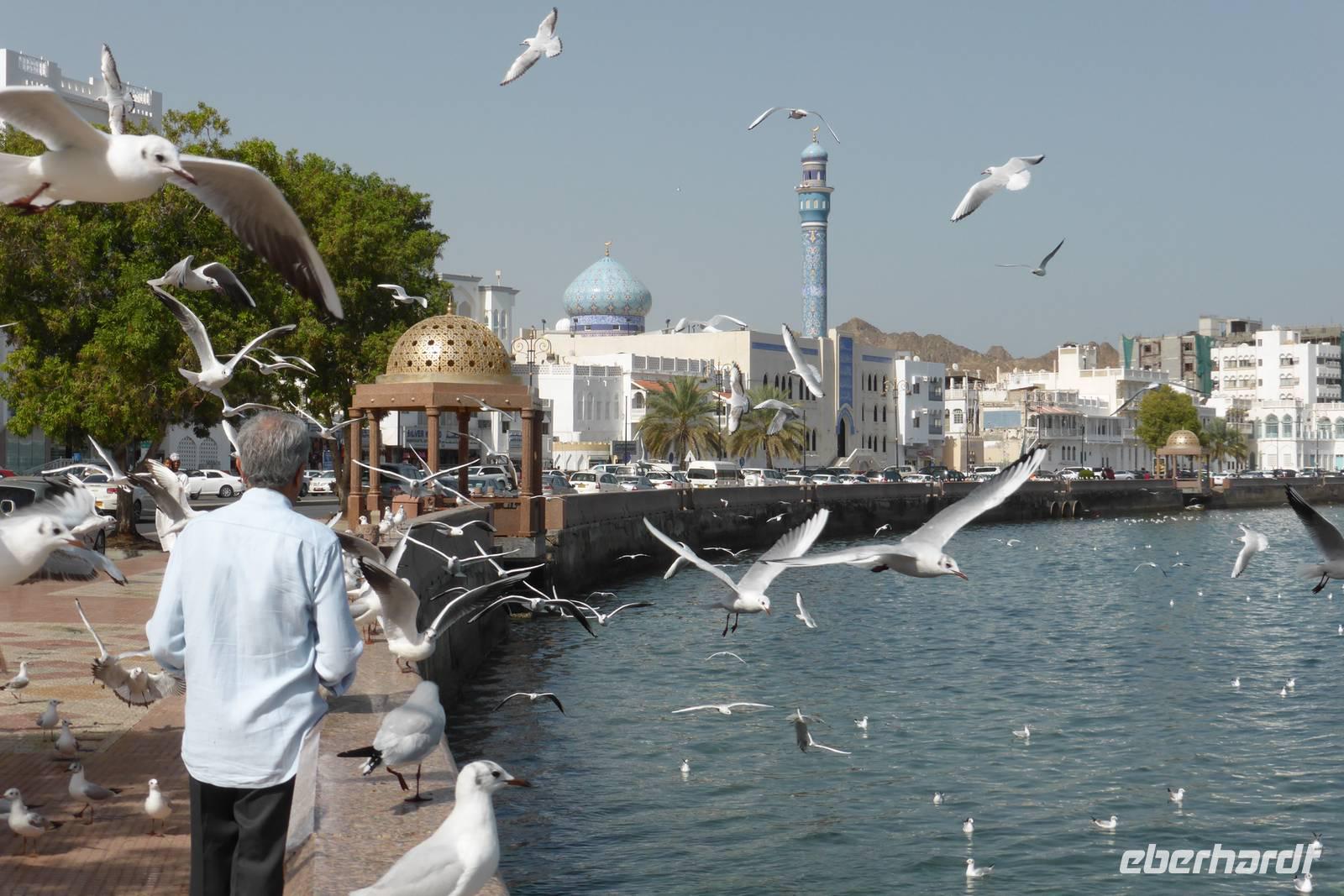 Der Marktbesuch ist auch eine gute Gelegenheit, um einen kleinen Bummel entlang der malerischen Corniche von Muttrah zu unternehmen.Im alten Maskat besuchen wir das Museum Bait Al Zubair und laufen zum Alam-Palast. Sultan Qaboos, mit 44 Dienstjahren der am längsten regierende Herrscher der arabischen Welt, lies in den 1970er Jahren den Alam-Palast bauen (alam = arab. für Zeichen). Von hier aus sollte ein Zeichen für den Aufbruch des Landes in die Moderne ausgehen. Eingerahmt von den früheren portugiesischen Festungen Jalali und Mirani bummeln wir durch den Palastbezirk mit dem einstigen Gouverneurspalast Bait Garaiza und der kleinen blauen Moschee Masjid Al Khor.
