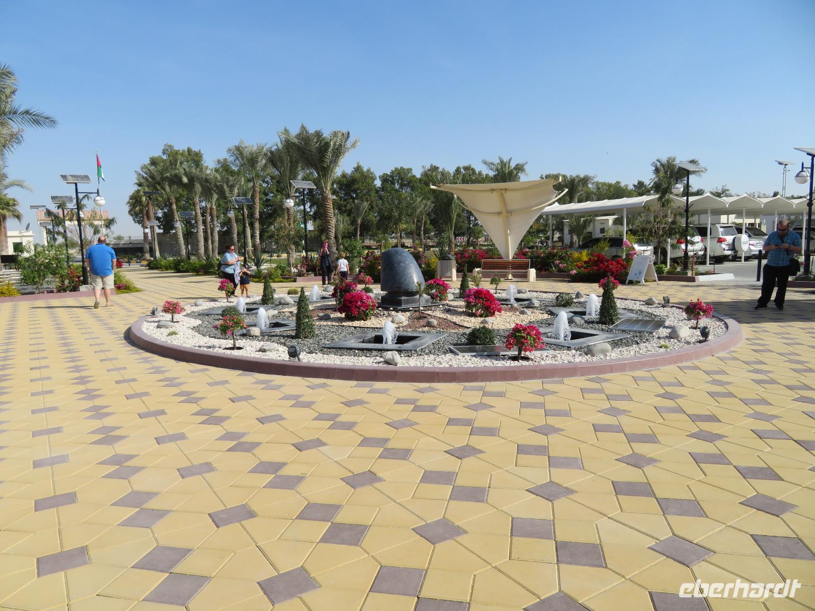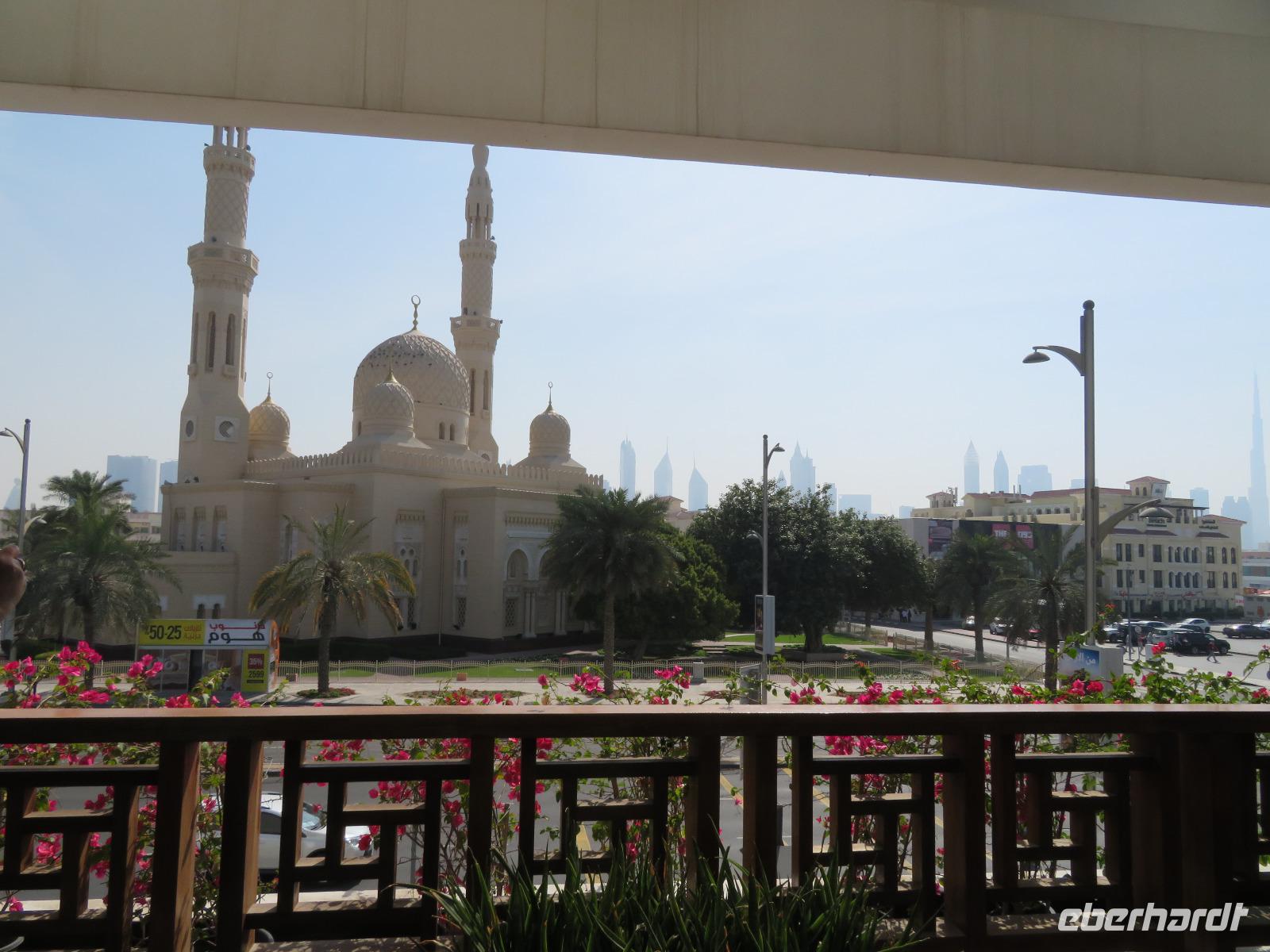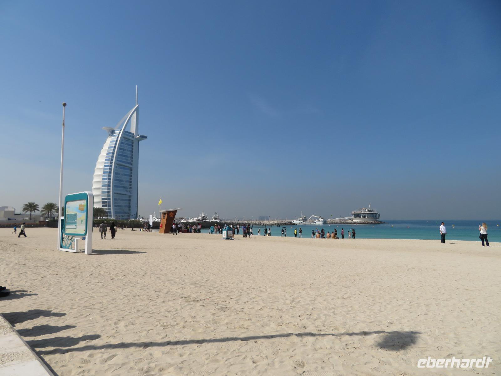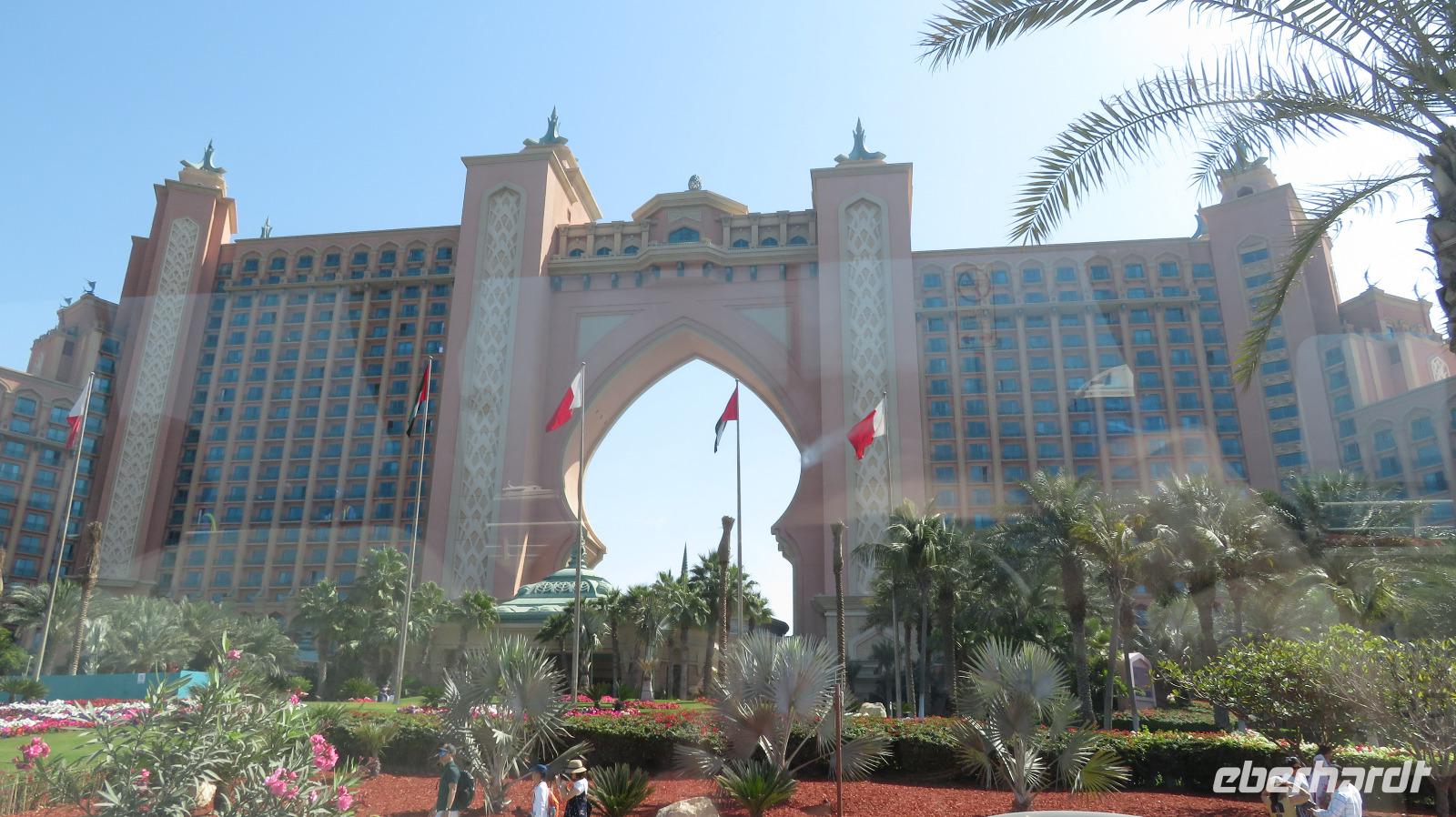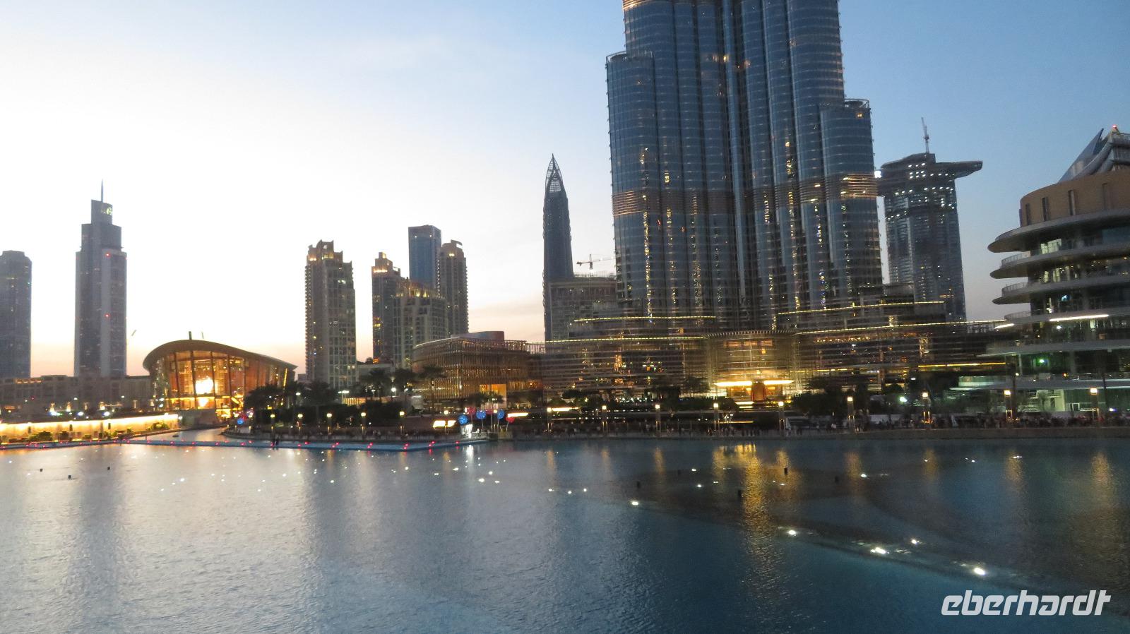 Bereits der Morgen beginnt mit ein „bisschen Highlights", wie Ibrahim gerne zu pflegen sagt. Wir besichtigen das nagelneue Ethiad Museum, das die junge Geschichte der Arabischen Emirate aufarbeitet. Am 2. Dezember 1971 schlossen sich zunächst 6 Länder zu der Union zusammen: Dubai, Abu Dhabi, Sharjah, Ajman, Fujairah und Umm Al Quwain. Ein Jahr danach kam noch das Land Ras Al Khaimah dazu und der heute bekannte Bund war vollständig. Der erste Präsident, der gleichzeitig als „Vater der Nation" gilt, war Sheikh Zayed bin Sultan Al Nahyan bis zu seinem Tod im Jahre 2004. Es ist üblich, dass der Nachfolger blutsverwandt mit dem vorherigen Herrscher ist, der erste Anwärter ist immer der älteste Sohn. Das Museum ist mit vielen interaktiven Details ausgestattet und die Architektur des Gebäudes soll an den Vertrag und die sieben Stifte erinnern, die damals verwendet wurden. Unsere Reise geht weiter durch eine der teuersten Wohngegenden, dem Stadtteil Jumeirah. Hier steht auch die gleichnamige Moschee, die auch Nichtmuslime an 6 Tagen der Woche besuchen können um einen Eindruck von der islamischen Religion zu erhalten. Wir machen hier nur einen Fotostopp bevor wir weiter zum Jumeirah Strand fahren. Schon von weitem können wir das Luxushotel Burj Al Arab erblicken. Die Form des Dhaw-Segel ist genauso spektakulär wie die Preise des Hotels. Somit bleibt das Hotel ein Traum und wir fahren anschließend anstatt mit dem Bus mit der eigens für die Palmeninsel geschaffenen Eisenbahn entlang des Stamms bis zu der Endstation an der das Atlantis Hotel erbaut wurde. Die extravagante Palmeninsel „The Palm Jumeirah" ist die größte künstlich erschaffene Insel der Welt. Nach einem kurzen Aufenthalt im extravaganten Stadtteil Dubai Marina, begeben wir uns zu der wohl spannendsten Einkaufsmeile der Welt. Der Dubai Mall. Neben 350.000qm ² Verkaufsfläche bietet die Einkaufshalle die Möglichkeit zum Skifahren und auch zum Besuch des Aquariums. Unglaublich, aber wahr. In Dubai gibt es nichts, was es nicht gibt. Der nächste Programmpunkt ist ebenfalls ein Highlight, wir fahren auf den 828m hohen Wolkenkratzer, das höchste Gebäude der Welt. Während wir zu Abend essen können wir die faszinierenden Wasserspiele, wie auch die Lichterspiele auf dem Burj Khalifa bestaunen. Ein ereignisreicher Tag geht zu Ende.