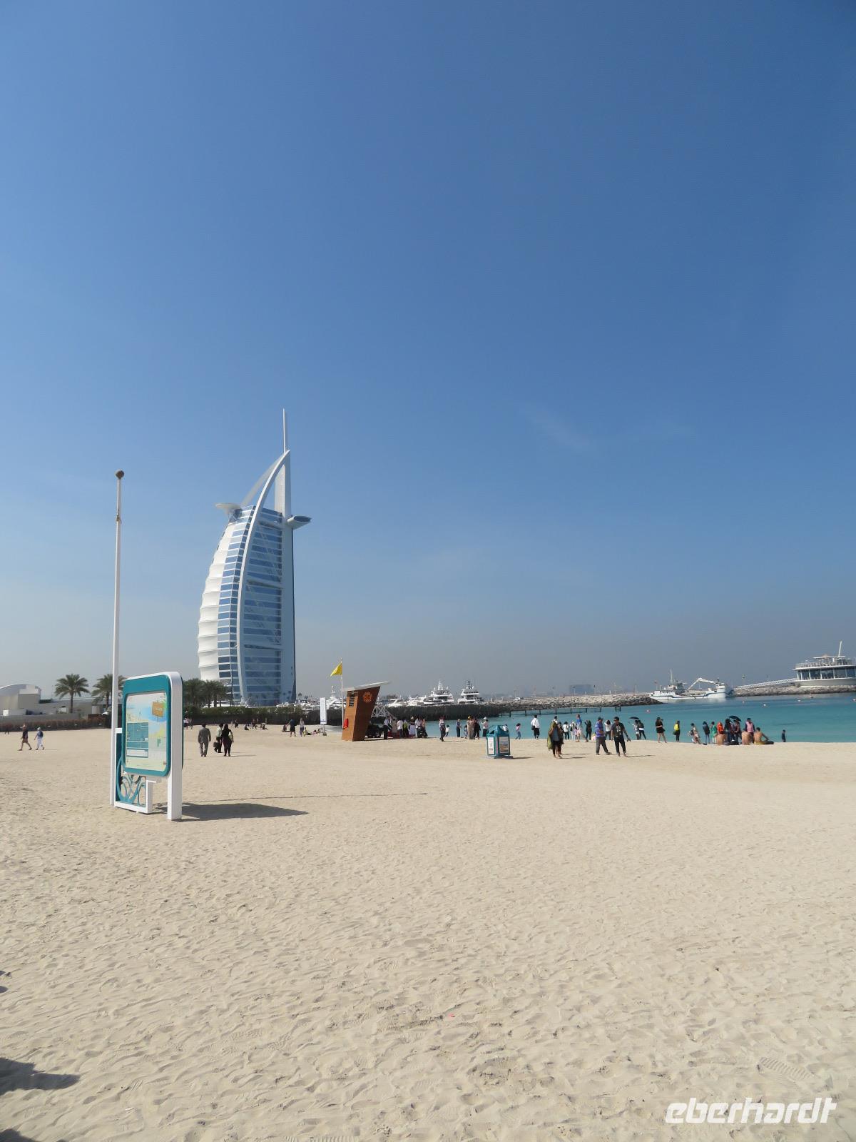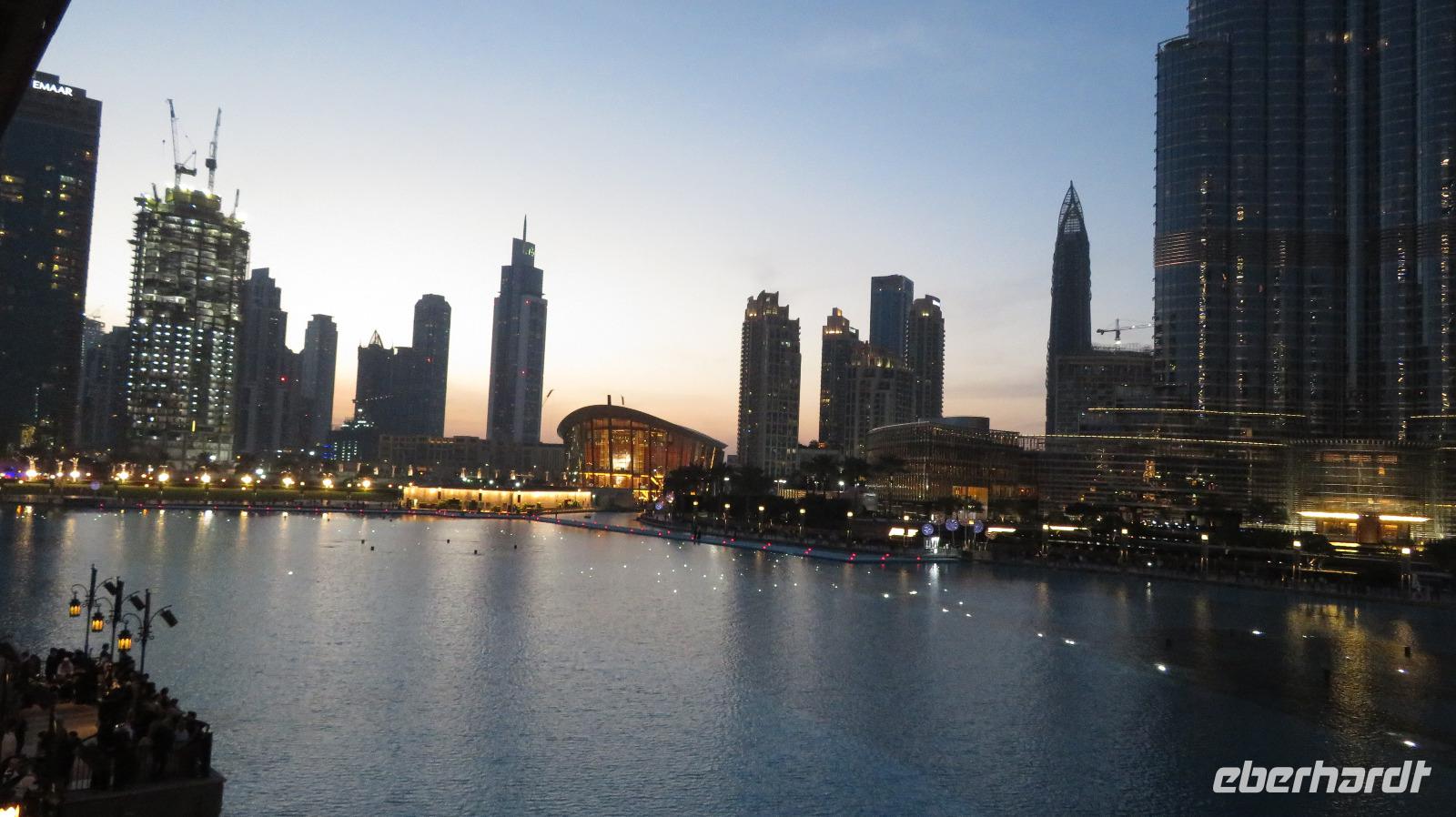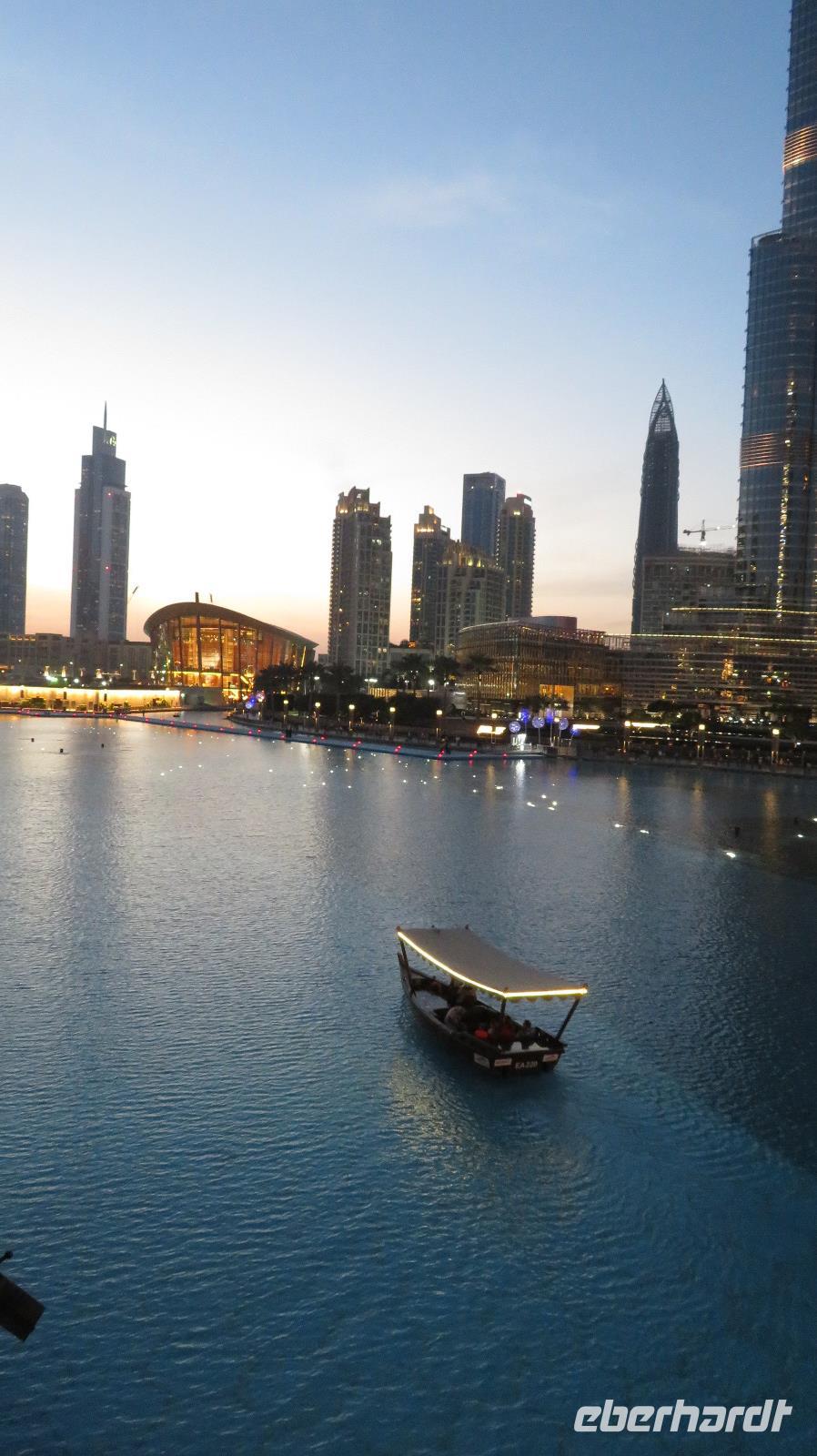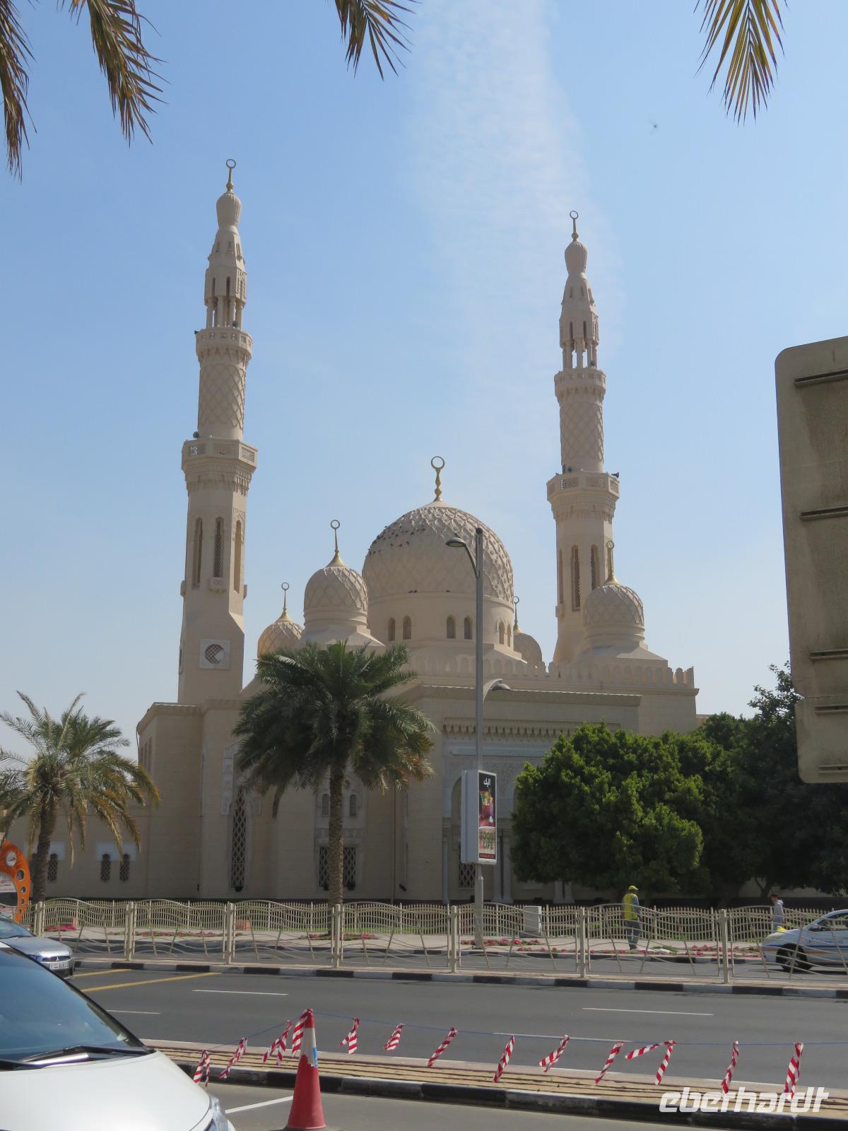 Bereits der Morgen beginnt mit ein „bisschen Highlights", wie Ibrahim gerne zu pflegen sagt. Wir besichtigen das nagelneue Ethiad Museum, das die junge Geschichte der Arabischen Emirate aufarbeitet. Am 2. Dezember 1971 schlossen sich zunächst 6 Länder zu der Union zusammen: Dubai, Abu Dhabi, Sharjah, Ajman, Fujairah und Umm Al Quwain. Ein Jahr danach kam noch das Land Ras Al Khaimah dazu und der heute bekannte Bund war vollständig. Der erste Präsident, der gleichzeitig als „Vater der Nation" gilt, war Sheikh Zayed bin Sultan Al Nahyan bis zu seinem Tod im Jahre 2004. Es ist üblich, dass der Nachfolger blutsverwandt mit dem vorherigen Herrscher ist, der erste Anwärter ist immer der älteste Sohn. Das Museum ist mit vielen interaktiven Details ausgestattet und die Architektur des Gebäudes soll an den Vertrag und die sieben Stifte erinnern, die damals verwendet wurden. Unsere Reise geht weiter durch eine der teuersten Wohngegenden, dem Stadtteil Jumeirah. Hier steht auch die gleichnamige Moschee, die auch Nichtmuslime an 6 Tagen der Woche besuchen können um einen Eindruck von der islamischen Religion zu erhalten. Wir machen hier nur einen Fotostopp bevor wir weiter zum Jumeirah Strand fahren. Schon von weitem können wir das Luxushotel Burj Al Arab erblicken. Die Form des Dhaw-Segel ist genauso spektakulär wie die Preise des Hotels. Somit bleibt das Hotel ein Traum und wir fahren anschließend anstatt mit dem Bus mit der eigens für die Palmeninsel geschaffenen Eisenbahn entlang des Stamms bis zu der Endstation an der das Atlantis Hotel erbaut wurde. Die extravagante Palmeninsel „The Palm Jumeirah" ist die größte künstlich erschaffene Insel der Welt. Nach einem kurzen Aufenthalt im extravaganten Stadtteil Dubai Marina, begeben wir uns zu der wohl spannendsten Einkaufsmeile der Welt. Der Dubai Mall. Neben 350.000qm ² Verkaufsfläche bietet die Einkaufshalle die Möglichkeit zum Skifahren und auch zum Besuch des Aquariums. Unglaublich, aber wahr. In Dubai gibt es nichts, was es nicht gibt. Der nächste Programmpunkt ist ebenfalls ein Highlight, wir fahren auf den 828m hohen Wolkenkratzer, das höchste Gebäude der Welt. Während wir zu Abend essen können wir die faszinierenden Wasserspiele, wie auch die Lichterspiele auf dem Burj Khalifa bestaunen. Ein ereignisreicher Tag geht zu Ende.