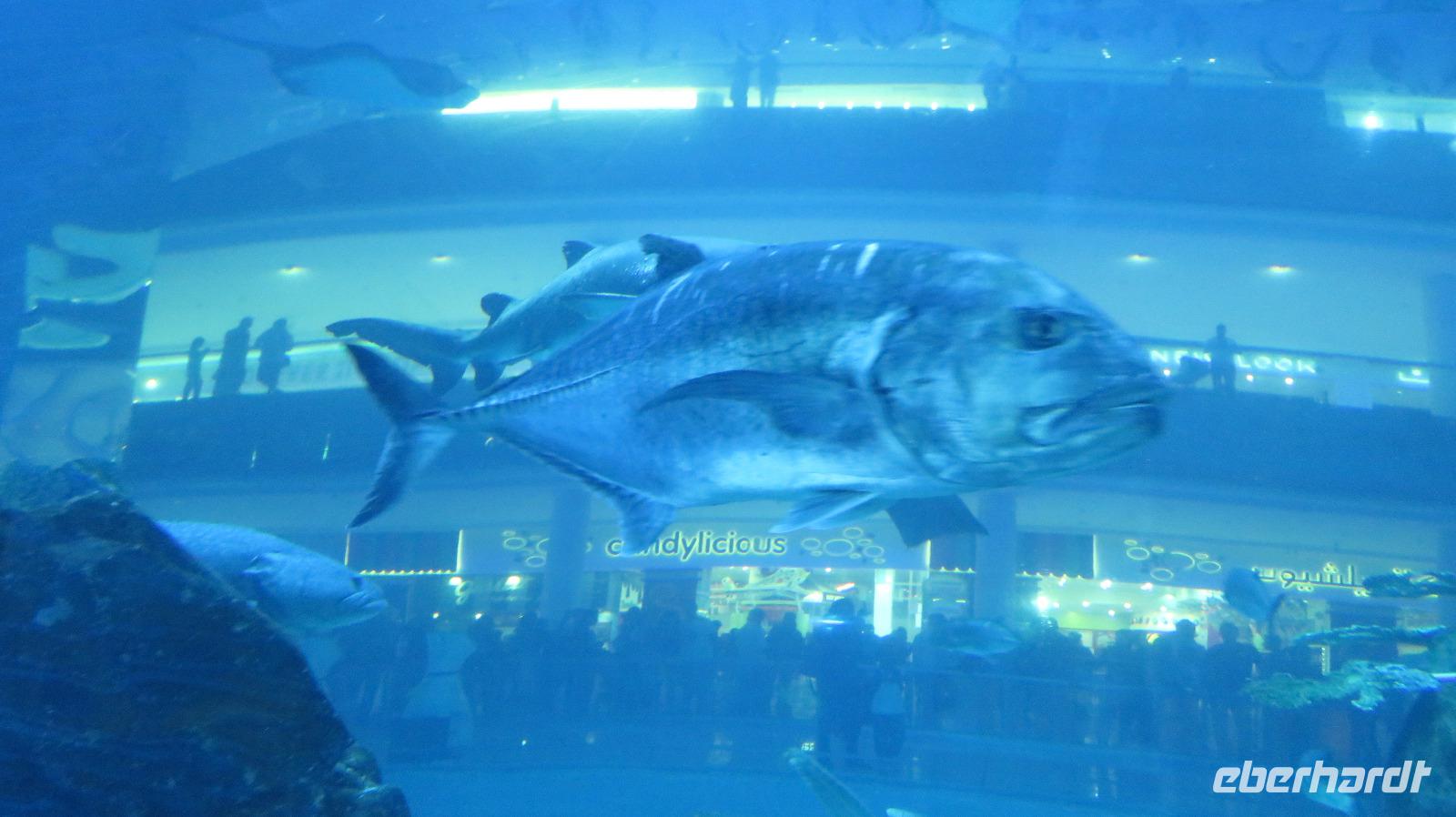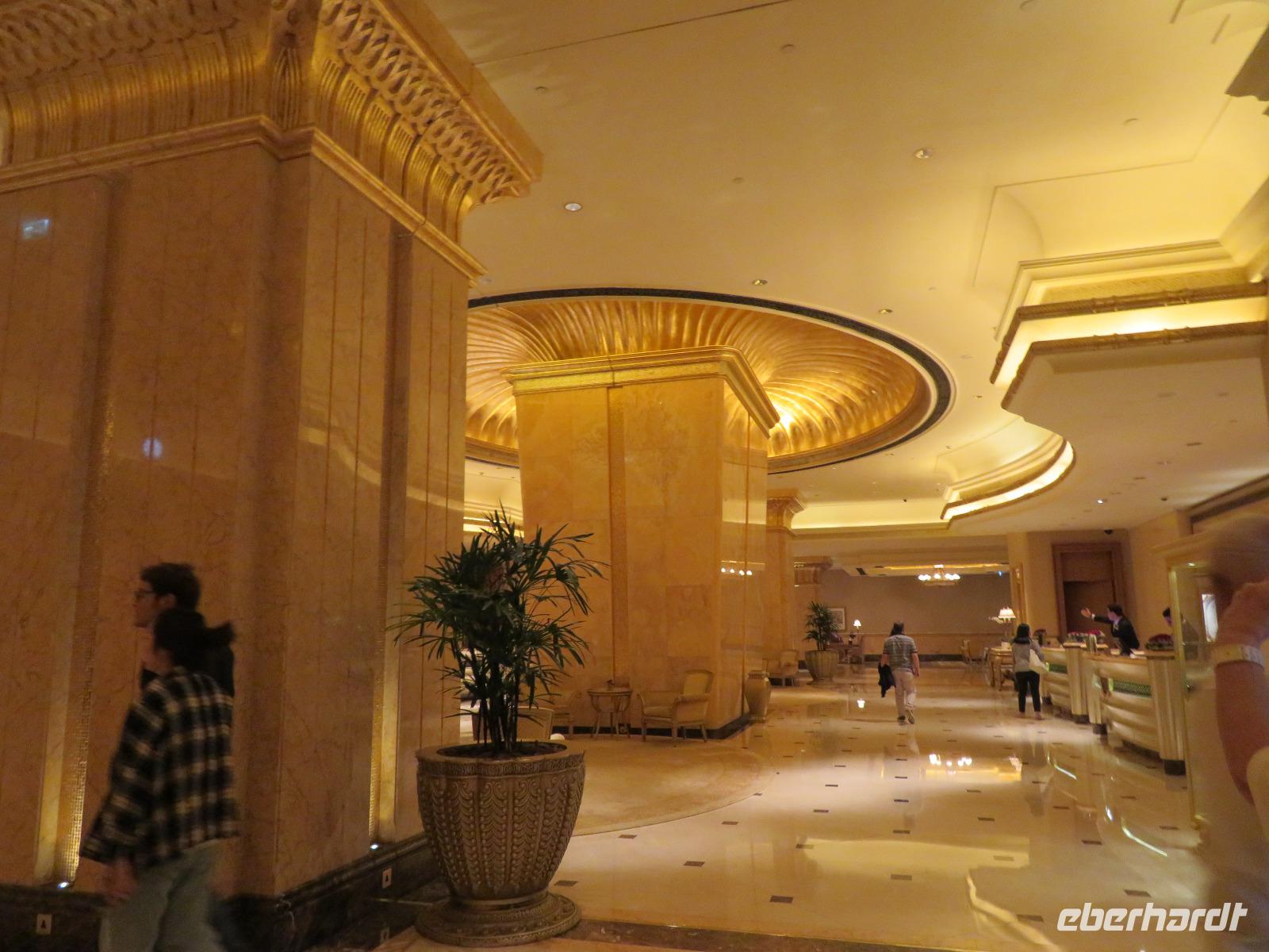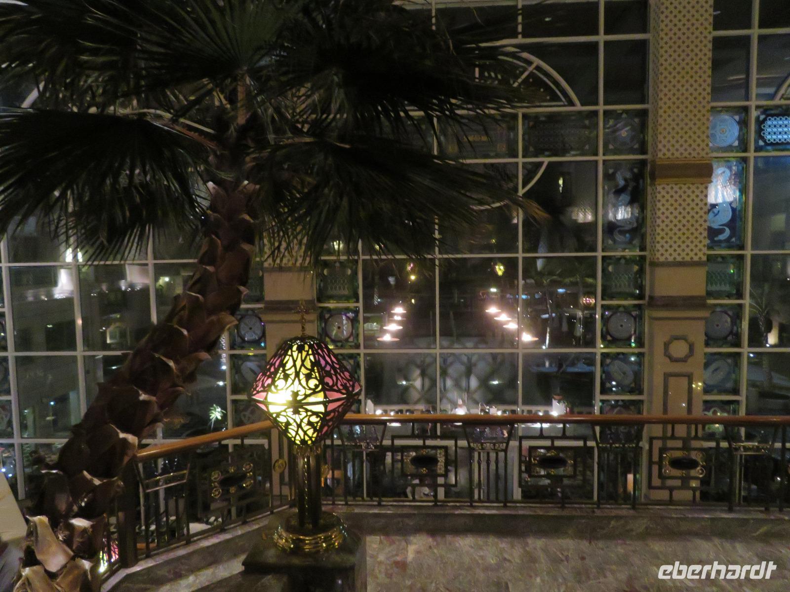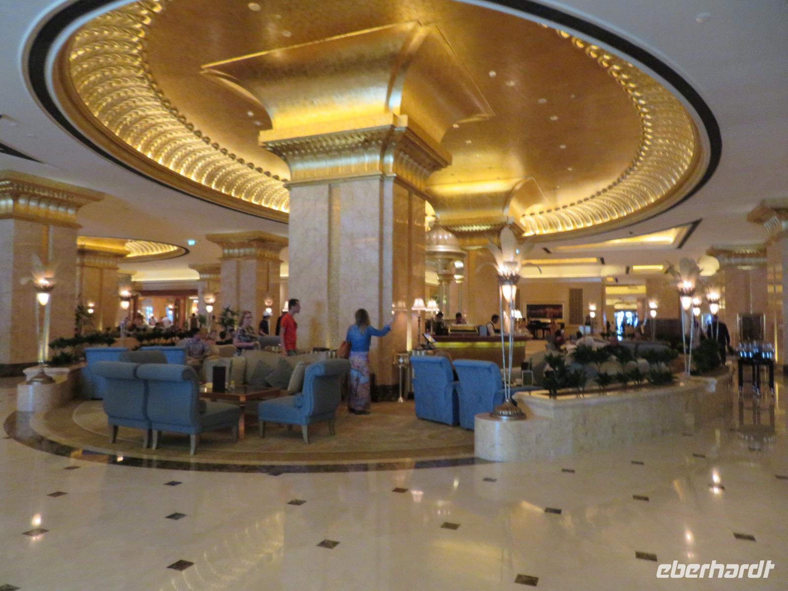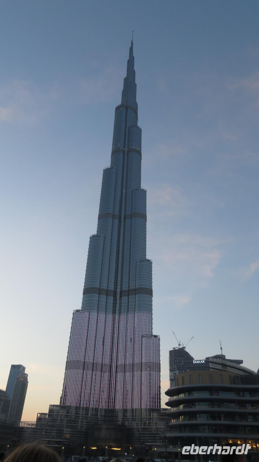 Bereits der Morgen beginnt mit ein „bisschen Highlights", wie Ibrahim gerne zu pflegen sagt. Wir besichtigen das nagelneue Ethiad Museum, das die junge Geschichte der Arabischen Emirate aufarbeitet. Am 2. Dezember 1971 schlossen sich zunächst 6 Länder zu der Union zusammen: Dubai, Abu Dhabi, Sharjah, Ajman, Fujairah und Umm Al Quwain. Ein Jahr danach kam noch das Land Ras Al Khaimah dazu und der heute bekannte Bund war vollständig. Der erste Präsident, der gleichzeitig als „Vater der Nation" gilt, war Sheikh Zayed bin Sultan Al Nahyan bis zu seinem Tod im Jahre 2004. Es ist üblich, dass der Nachfolger blutsverwandt mit dem vorherigen Herrscher ist, der erste Anwärter ist immer der älteste Sohn. Das Museum ist mit vielen interaktiven Details ausgestattet und die Architektur des Gebäudes soll an den Vertrag und die sieben Stifte erinnern, die damals verwendet wurden. Unsere Reise geht weiter durch eine der teuersten Wohngegenden, dem Stadtteil Jumeirah. Hier steht auch die gleichnamige Moschee, die auch Nichtmuslime an 6 Tagen der Woche besuchen können um einen Eindruck von der islamischen Religion zu erhalten. Wir machen hier nur einen Fotostopp bevor wir weiter zum Jumeirah Strand fahren. Schon von weitem können wir das Luxushotel Burj Al Arab erblicken. Die Form des Dhaw-Segel ist genauso spektakulär wie die Preise des Hotels. Somit bleibt das Hotel ein Traum und wir fahren anschließend anstatt mit dem Bus mit der eigens für die Palmeninsel geschaffenen Eisenbahn entlang des Stamms bis zu der Endstation an der das Atlantis Hotel erbaut wurde. Die extravagante Palmeninsel „The Palm Jumeirah" ist die größte künstlich erschaffene Insel der Welt. Nach einem kurzen Aufenthalt im extravaganten Stadtteil Dubai Marina, begeben wir uns zu der wohl spannendsten Einkaufsmeile der Welt. Der Dubai Mall. Neben 350.000qm ² Verkaufsfläche bietet die Einkaufshalle die Möglichkeit zum Skifahren und auch zum Besuch des Aquariums. Unglaublich, aber wahr. In Dubai gibt es nichts, was es nicht gibt. Der nächste Programmpunkt ist ebenfalls ein Highlight, wir fahren auf den 828m hohen Wolkenkratzer, das höchste Gebäude der Welt. Während wir zu Abend essen können wir die faszinierenden Wasserspiele, wie auch die Lichterspiele auf dem Burj Khalifa bestaunen. Ein ereignisreicher Tag geht zu Ende.