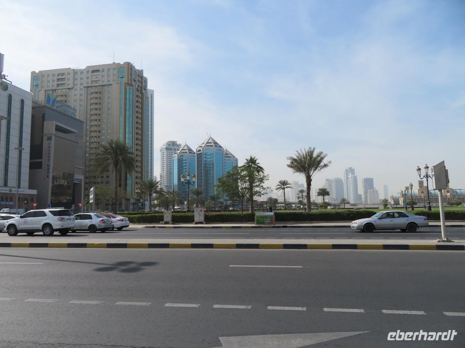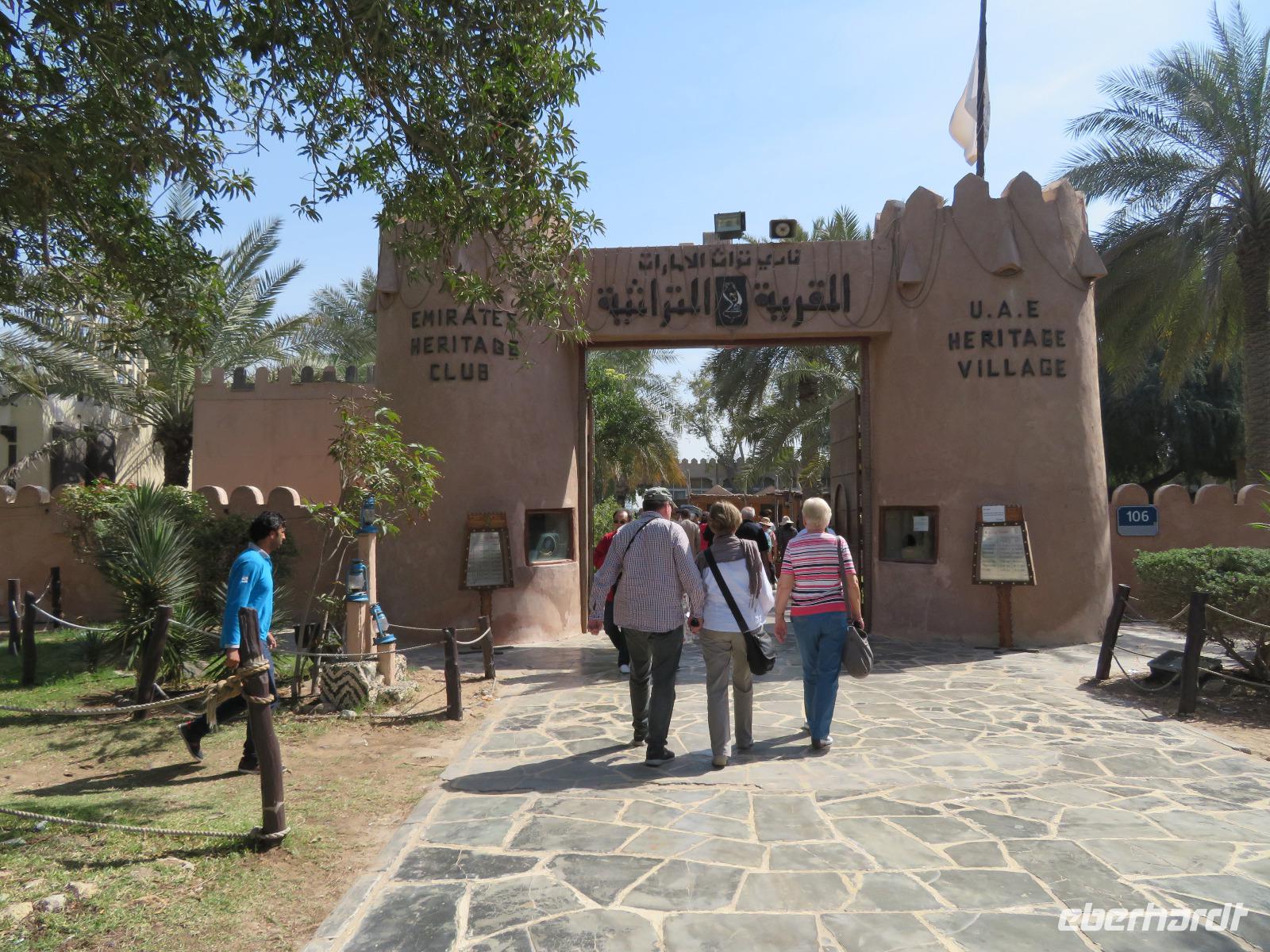 Das drittgrößte Emirat Sharjah ist nur 20 Minuten Autofahrt von Dubai entfernt. Viele die in Dubai arbeiten, leben in Sharja, da die Wohnkosten hier bedeutend niedriger sind. Doch Sharjah kann auch mit dem Emirat Dubai mithalten. Im Jahr 2014 wurde das Emirat zur Hauptstadt der Islamischen Kultur gekürt. Zunächst machen wir einen kurzen Fotostopp an der King Faisal-Moschee und besuchen anschließen eines der zahlreichen, sehenswerten Museen, das Museum für Islamische Zivilisation. 2008 wurde die Markthalle des früheren Souq al-Majarrah in das Museum umgewandelt, was dem Ganzen eine eigene Atmosphäre verleiht. Bilder und Austellungsstücke aus der islamischen Kultur werden hier der Öffentlichkeit zur Verfügung gestellt. Wir verfolgen die Kultur weiter zum traditionellen Souk von Sharjah, dem Blauen Souk. Dieser wird aufgrund seiner blauen Fliesen an den Außenwänden so genannt. Über 600 Geschäfte warten darauf erkundet zu werden. Auf dem großen Allerleimarkt, auf dem Obst und Gemüse, Fisch und Fleisch verkauft wird. Wir probieren die dort verkaufte Kokosnuss und staunen über die saubere und hygienische Verkaufsfläche. Zurück in Dubai werden wie magisch von dem Schaufensterscheiben angezogen, die den goldenen Schmuck präsentieren. Wir flanieren durch die Gassen des Goldsouks und verbringen dort Zeit um dem Schaufensterbummel nachzugehen. Bevor wir mit einem traditionellen Wassertaxi, einer Abra übersetzen streifen wir noch durch den Gewürzsouk. Am anderen Ufer des Creeks angekommen sind es nur noch wenige hundert Meter bis zum Hotel. Diese führen uns über den Stoffsouk auf dem viele Einwanderer größtenteils indischer Herkunft Schals und Tücher verkaufen. Insgesamt leben in den Emiraten etwa 80 Prozent Zuwanderer, die dort nur so lange leben dürfen wie sie einer Arbeit nachgehen. Wenn Sie diesen Job verloren haben, haben sie sechs Monate Zeit um einen neuen zu finden ansonsten müssen sie das Land verlassen. Man merkt hier läuft alles etwas strenger ab. Vor unserem Hotel befindet sich das Dubai Museum, das in der ältesten ehemalige Verteidigungsanlage errichtet wurde. Hier wird die Geschichte durch viele Figuren und Bilder von der Geschichte des Perlentauchens bis heute dargestellt. Nach einer Erholungspause für meine Gäste treffen wir uns um den letzten Abend gemeinsam in einem Restaurant am Dubai Creek ausklingen lassen. Mit Blick auf die Skyline schmeckt unser Abendessen, ein einheimischer Fisch, besonders gut.