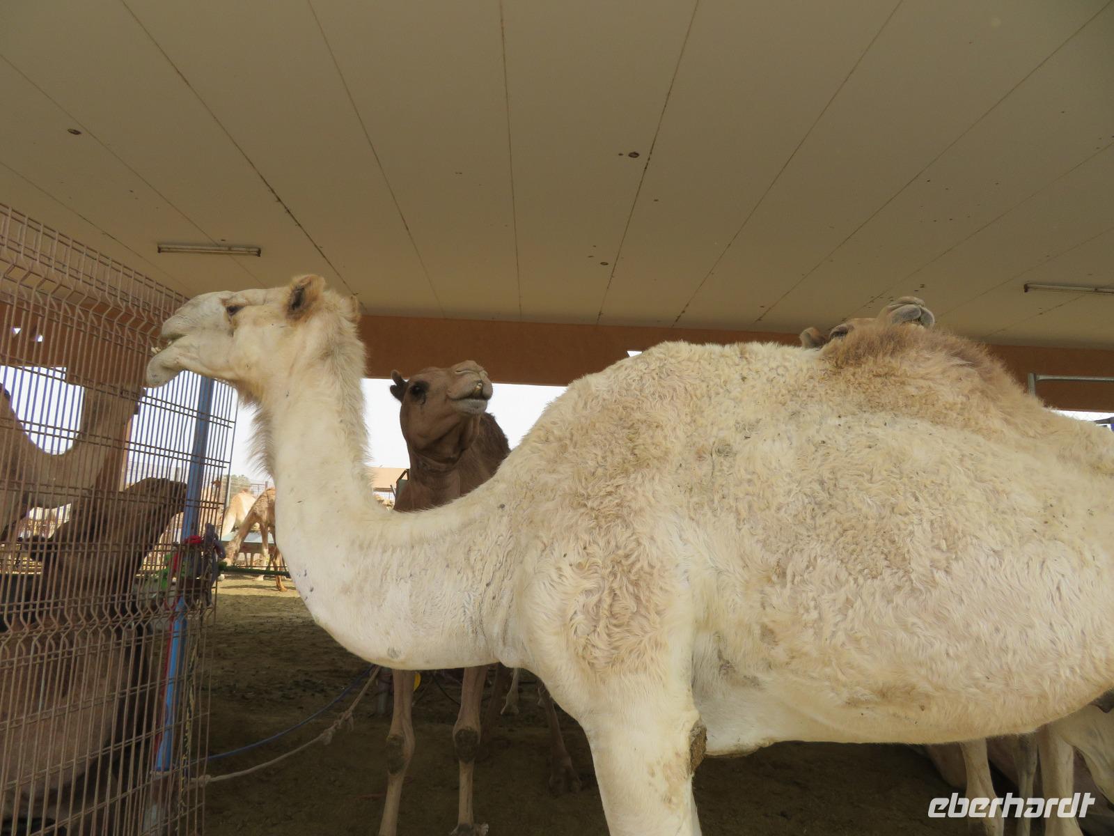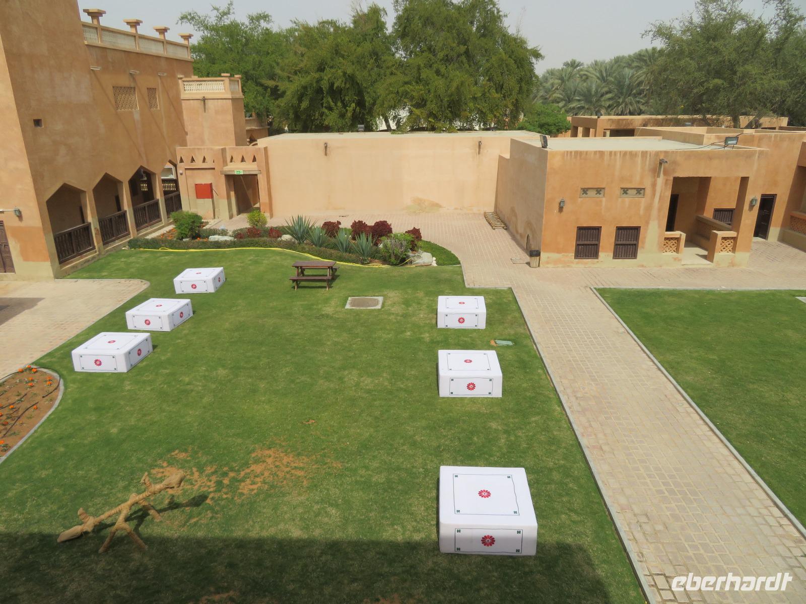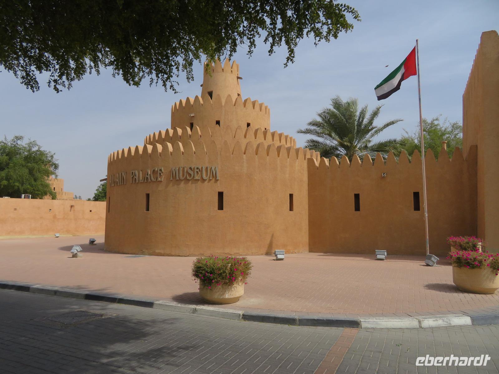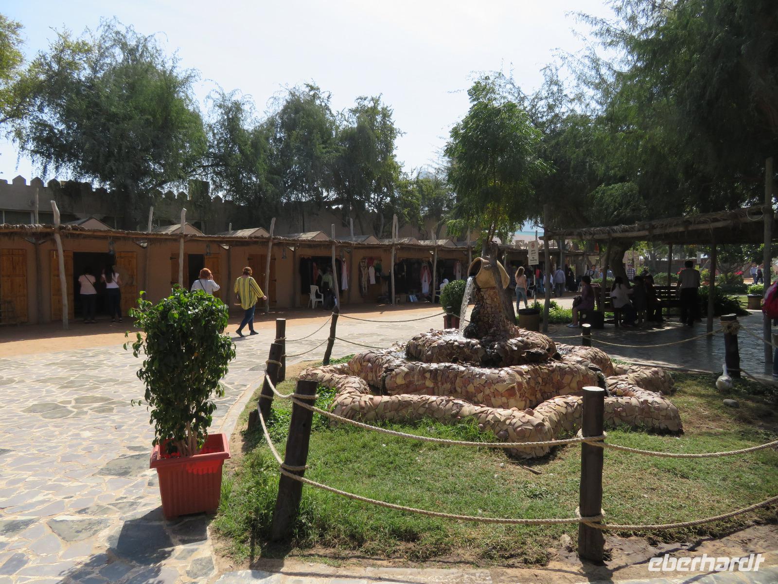 Nach vielen extravaganten Eindrücken in der Großstadt Dubai mit den hunderten Wolkenkratzern reisen wir heute weiter in Richtung des Nachbarlandes Oman. Je weiter wir uns von der Großstadt entfernen, desto karger wird das Land. In der Oasenstadt Al Ain besuchen wir den ehemaligen Palast des verstorbenen Scheich Zayed Bin Sultan Al Nahyan. Wir bekommen arabischen Kaffee und Datteln gereicht, Ibrahim führt uns durch die Räumlichkeiten der Palastanlage die unter anderem mit den Gemälden der Scheich Familie geschmückt ist. Aber nur die der männlichen, von den weiblichen Familienmitglieder, werden um sie zu schützen keine Gemälde angefertigt. Eine Sehenswürdigkeit in dieser kargen Landschaft ist auch die 1.200 Hektar große Dattelplantage wird durch ein uraltes Faladsch-Kanalsystem bewässert. Wie man die Palmen bestäubt und die Datteln im Anschluss erntet zeigt ein Mitarbeiter der Dattelplantage. Mit einem Seil bewaffnet und scheinbar mühelos klettert er die Palme hinauf. Wir dürfen die leckeren Datteln der Palmen ebenfalls kosten. Neben der Plantage hat der letzte Kamelmarkt des Landes seinen Sitz in Al Ain. Hunderte von Kamelen warten darauf weiterverkauft zu werden, da stellt sich die Frage wer von uns am meisten wert wäre? ;) Wir kommen den Kamelen ganz nah und fahren dann glücklicherweiße vollzählig weiter zu unserem Hotel. Über eine steile Serpentinenstraße fahren wir zu unserem Hotel auf 915 Meter Höhe auf dem Jebel-Hafeet-Berg. Am Abend wartet noch eine Überraschung auf uns, da heute der Tag der Liebenden ist, ist der Speisesaal entsprechend geschmückt. Die Frauen dürfen sich über eine Rose freuen und die Nachspeisen sind zu Herzen geformt. Frohen Valentinstag!