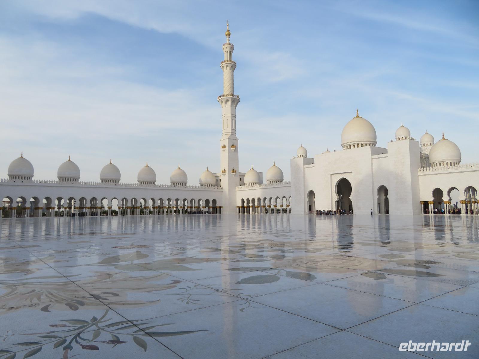 Das größte der Emirate und zugleich, aufgrund seiner Ölvorkommen, das reichste Emirat Abu Dhabi. Dieses setzt auf Kunst und Kultur. Und zu dieser Kultur gehört auch die Falkenzucht, wir besuchen die berühmte Falkenklinik der deutschen Tierärztin Frau Dr. Müller. Im Wartezimmer warten bereits die verletzen Falken auf ihre Behandlung und neben diesen auch die wohlhabenden Besitzer. Häufig gehen diese aber auch ihren Geschäften nach und kommen am Abend zurück um ihre versorgten Falken abzuholen. Wir werden durch die Anlage geführt und werden Beobachter wie die Nägel der bis zu 300.000 Euro teuren Falken gepflegt und wieder geschärft werden für die Jagd. Für das hauseigene Fotoalbum können im Anschluss die Falken auf den Arm genommen werden. Wir lassen die Falkenklinik hinter uns und machen einen Abstecher auf die Yas-Insel. Die Vergnügungsinsel lässt die Herzen der rasanten Gäste höher schlagen. Die Ferrai World, die schnellste Achterbahn der Welt und die Formel-1-Strecke sind die Objekte die deren Herzen höher schlagen lassen. Unsere Fahrt führt uns weiter auf die Insel Saadiyat. Die neue Kulturinsel beherbergt das Zayed National Museum, das Guggenheim Abu Dhabi und seit Dezember 2017 der Louvre Abu Dhabi. Am Nachmittag sind wir im luxuriösen und prunkvollen 5-Sterne-Hotel Emirates Palace zur Teestunde eingeladen und trinken dort einen Capucchino, der verziert ist mit Goldstaub. Dazu werden verschiedene süße und herzhafte Leckereien gereicht. Nicht minder beeindruckend ist die Sheikh Zayed Moschee. Nicht ohne Grund gehört Sie zu den schönsten Moscheen der Welt. Erschaffen aus weißen italienischem Marmor und mit handverzierten Säulen erstrahlt die Moschee in strahlendem Glanz. Zurück in Dubai gehen wir in einem arabischen Restaurant essen.