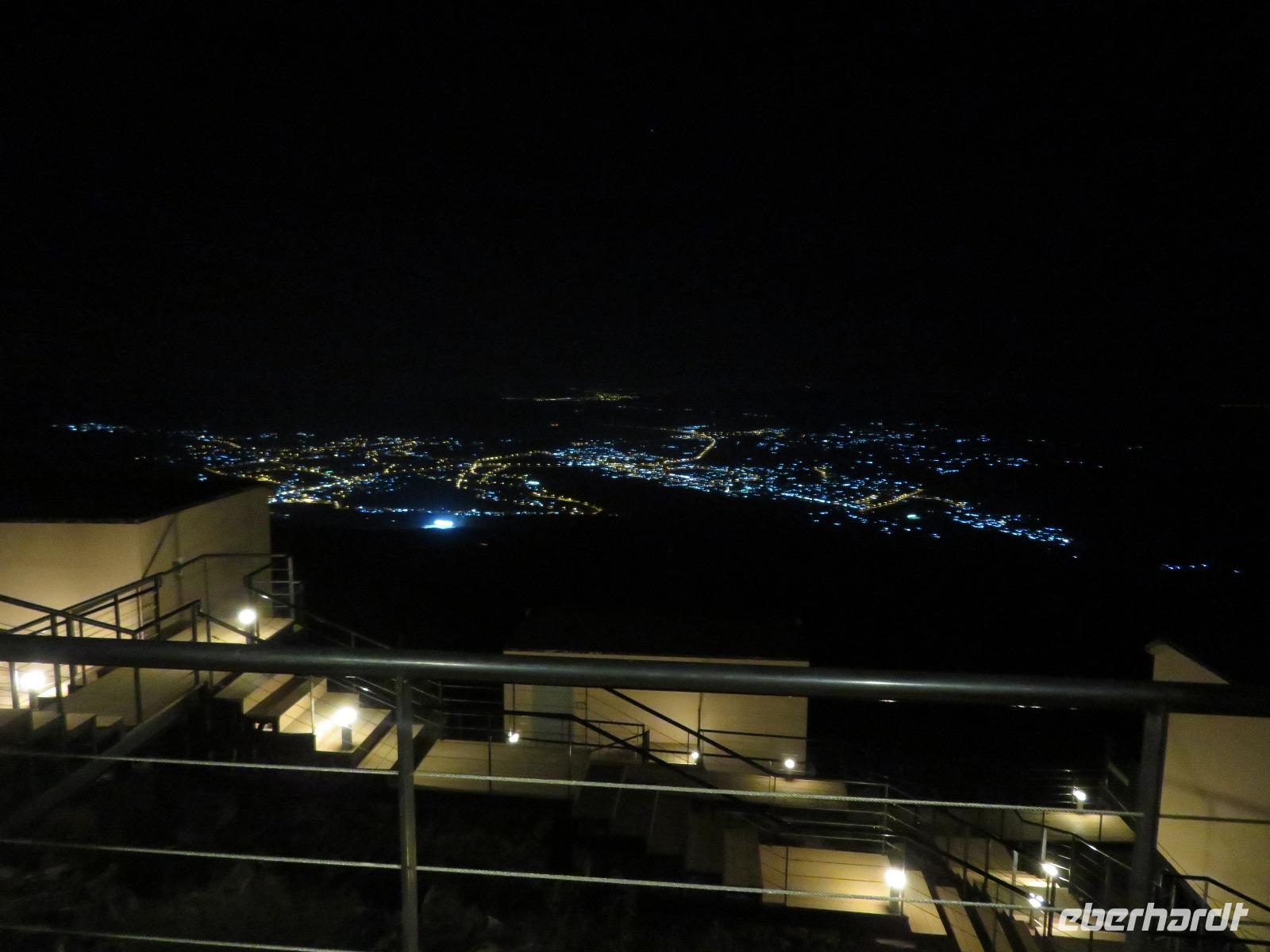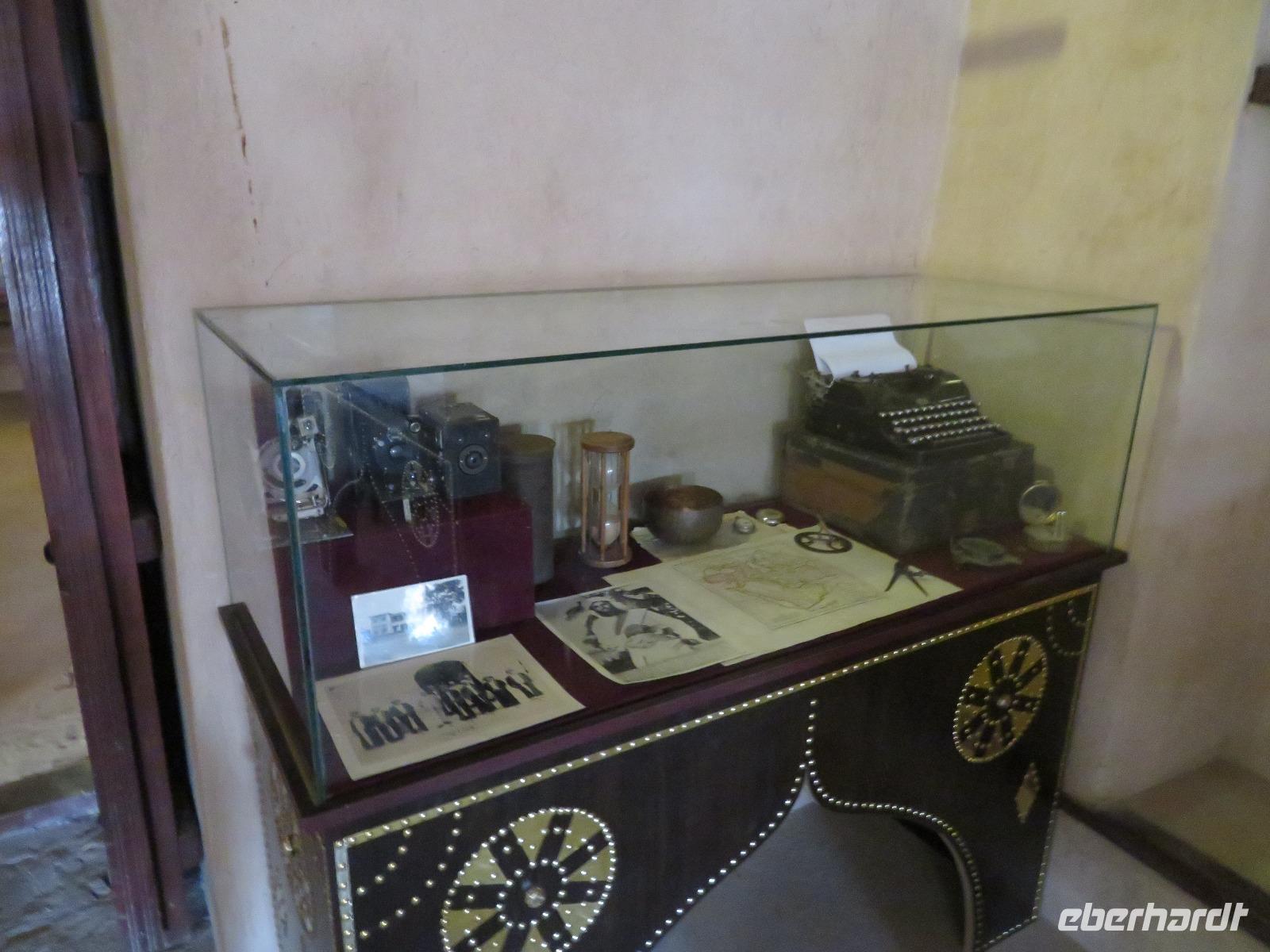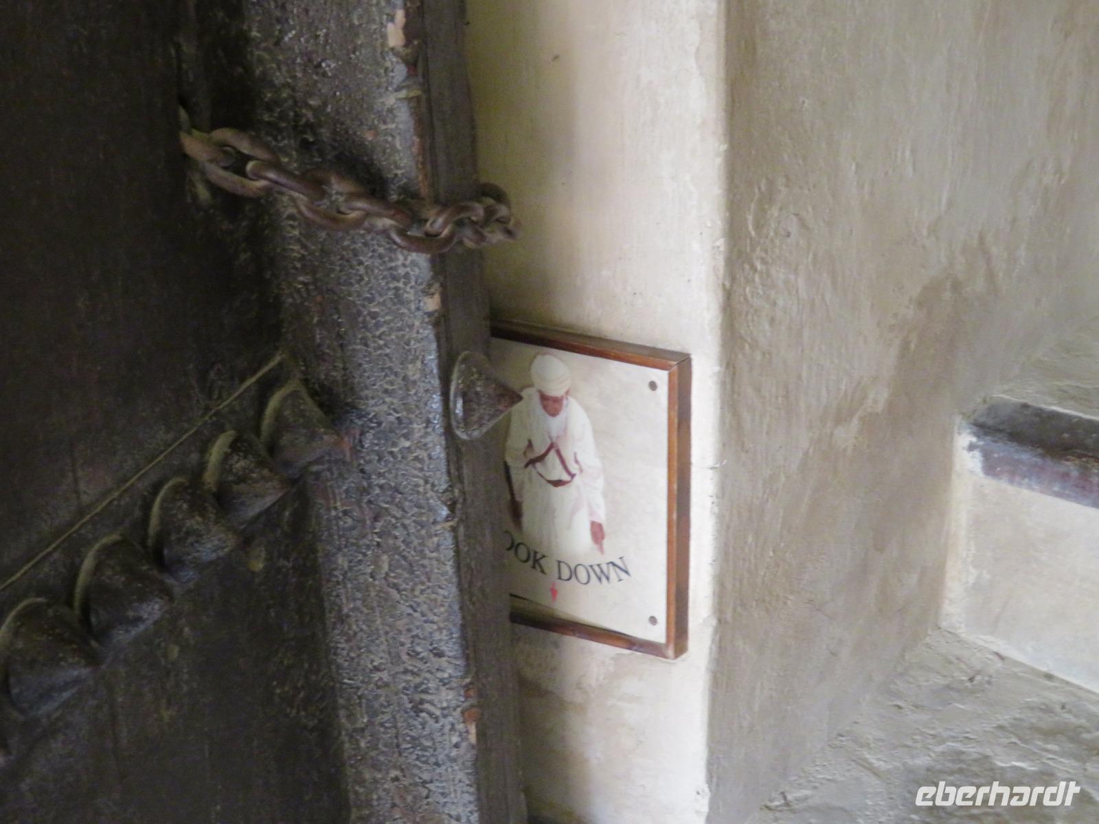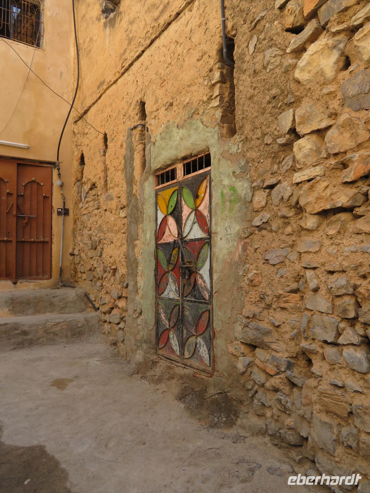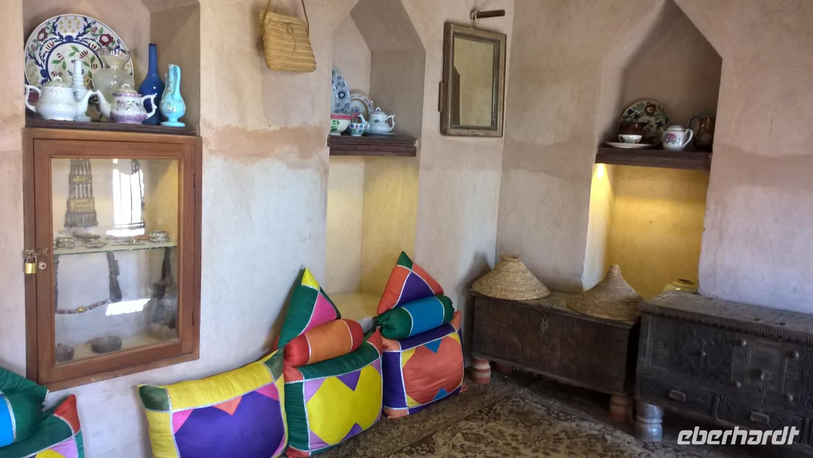 Wir begrüßen unseren neuen Reiseleiter Asa'd, einen jungen Omani, der fünf Jahre in Deutschland studiert hat. Mit ihm fahren wir zur Grenze der Vereinigten Arabischen Emirate an der wir zunächst einmal ausreisen um in das Sultanat Oman einzureisen. In den nächsten 7 Tagen reisen wir durch das aufstrebende Land unter der Herrschaft des Sultans Qaboos bin Said Al-Said. Dieser investiert nicht nur in die Zukunft des Landes sondern auch in die deren Landesbewohner. Asa'd erzählt uns, dass er mithilfe der finanziellen Unterstützung des Sultans für Absolventen im Deutschland studieren konnte. Nachdem wir unsere Arabischen Dirham in Omainische Rial getauscht haben besichtigen wir das Schloss von Jabrin aus dem Jahre 1670, das ehemals als Wohnschloss und Sommerresidenz gedacht war. Nachdem es zu Streitigkeiten mit seinem Bruder kam beschloss Sultan Bilarab bin Sultan al-Yaarub es mit Wehrmauern und Türmen zu erweitern. Man kann sich vorstellen, wie hier gelebt wurde. Es rentiert sich auch einen Blick nach oben auf die schön verzierte Holzdecke zu werfen. Ebenso beeindruckend ist das Fort von Bahla. Die Festung wurde wahrscheinlich von den Nabhani im 17. Jahrhundert aus Lehm erbaut und zählt seit 1978 als einzige osmanische Festung zum Weltkulturerbe. Eine 12 Kilometer lange Mauer umgibt die Festung. Wir fahren heute bis nach Al Hamra mit unserem Reisebus und steigen dann in Jeeps um. Diese bringen uns auf 1400 Meter Höhe, zu unserem heutigen Hotel. Der Blick von oben ist einfach unglaublich und ist die holprige Fahrt mehr als wert.