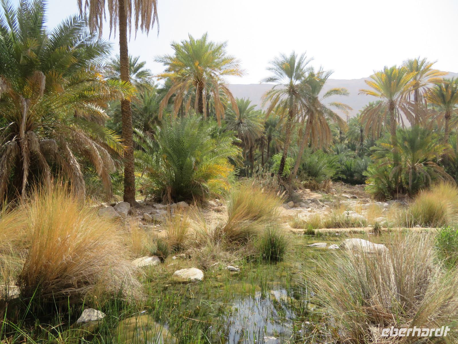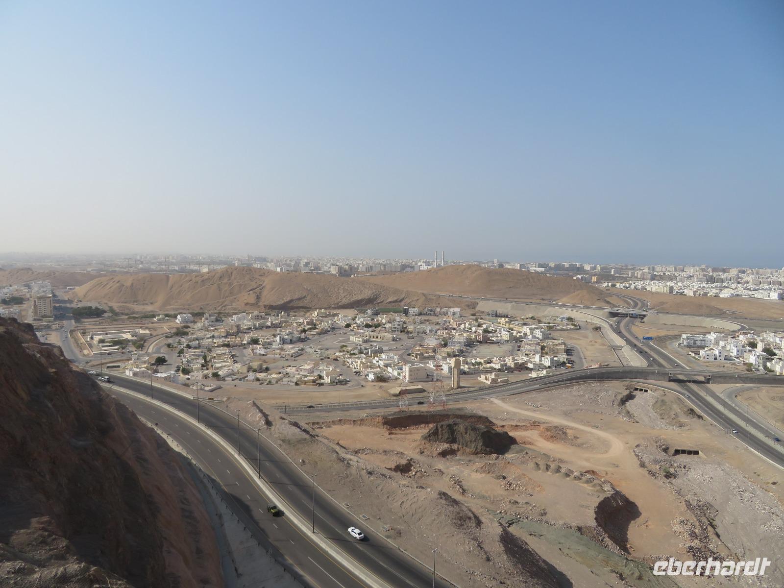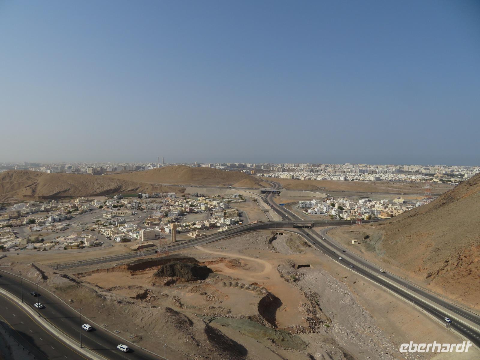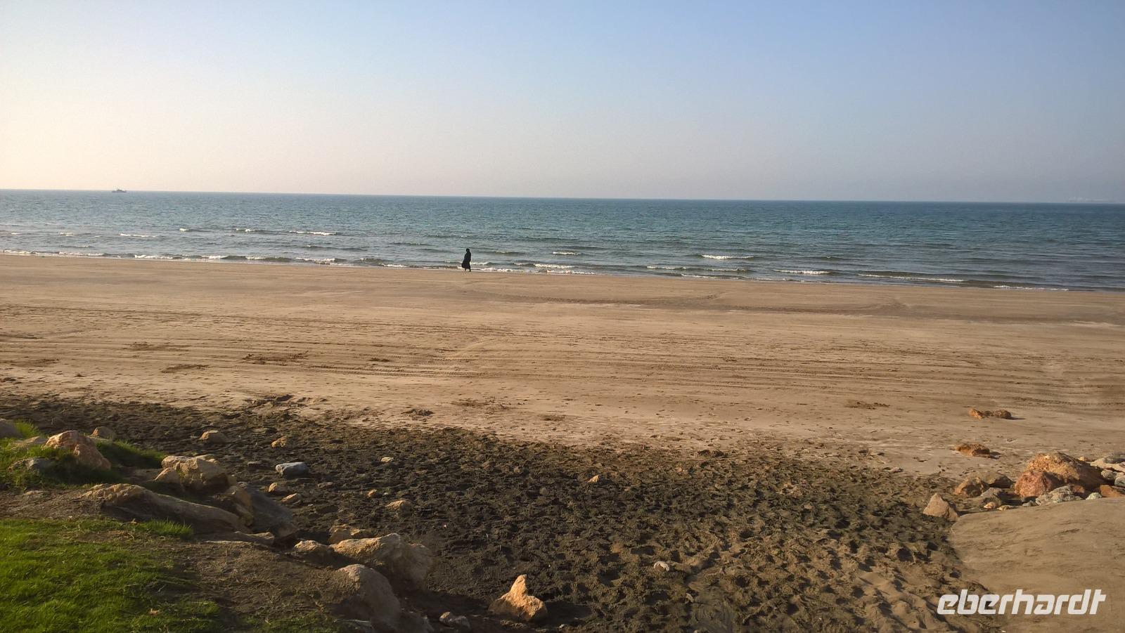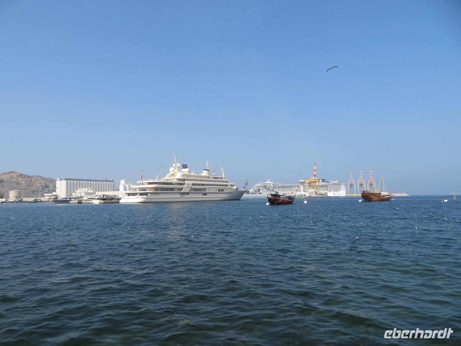 Nach dem Frühstück gehen wir zunächst auf den Gewürzmarkt in Sur und kaufen noch einige Gewürze für den heimatlichen Gebrauch. Danach fahren wir weiter in Richtung Muscat, unserer letzten Station. Doch auf dem Weg dorthin halten wir an der Ruinenstätte Qualhat, die im 13. Jahrhundert die erste Hauptstadt des damaligen Königreichs Hormuz war. Im damaligen Zeitalter war die Stadt mit einer Mauer und Wehrtürmen umgeben, aber im Jahr 1508 wurde die Stadt von den Portugiesen zerstört und die Bewohner getötet. Nach der Tragödie wurde die Stadt nicht wieder aufgebaut und geriet in Vergessenheit. Unsere Mittagspause verbringen wir am Wadi Tiwi, ein ruhige Idylle. Die Vegetation rund um den Wadi besteht neben Palmen auch aus Bananen, Mango- und Feigenbäume. Perfekt für ein Picknick, wie gut dass Eberhardt TRAVEL daran gedacht hat. Neben Fladenbrot werden Streichkäse und Chips gereicht. Klingt komisch, schmeckt aber gut :) Wir packen zusammen und unsere nächste Haltestelle an der Küstenstraße in Richtung Norden liegt das Bimmah Sinkhole. Legenden zufolge soll hier ein Krater eingeschlagen haben und dieses Badeparadies geschaffen haben. Doch dieses hat eigentlich natürliche Ursachen, das Sandgestein wurde vom Golf vom Oman unterspült und dieses Badeloch entstand. Wir besichtigen noch die Küstenstadt Quiryat und wir fahren über das Al Hajar Gebirge, schon von weitem erblicken wir die Hauptstadt des Omans, Muscat. Hier treffen sich Vergangenheit und Gegenwart. Wir machen noch eine Erkundungstour rund um das Hotel und essen dann gemeinsam zu Abend.