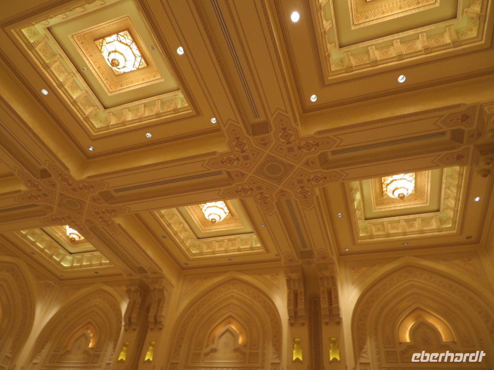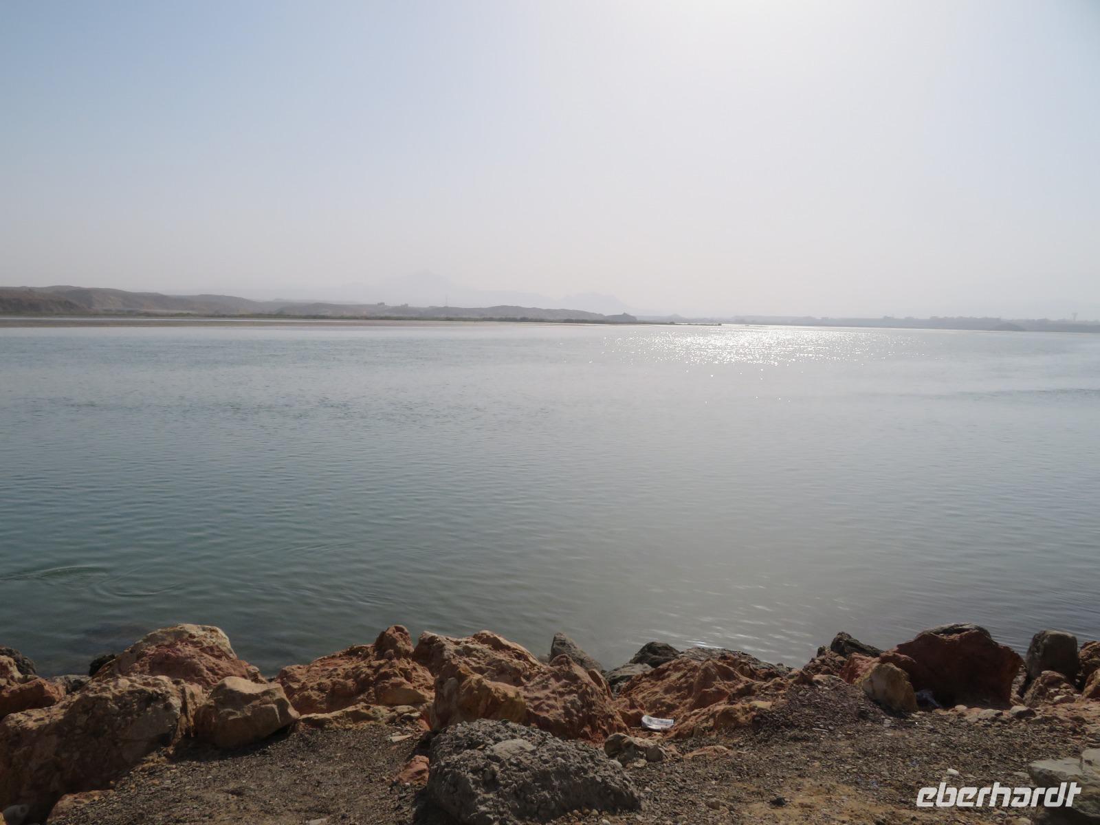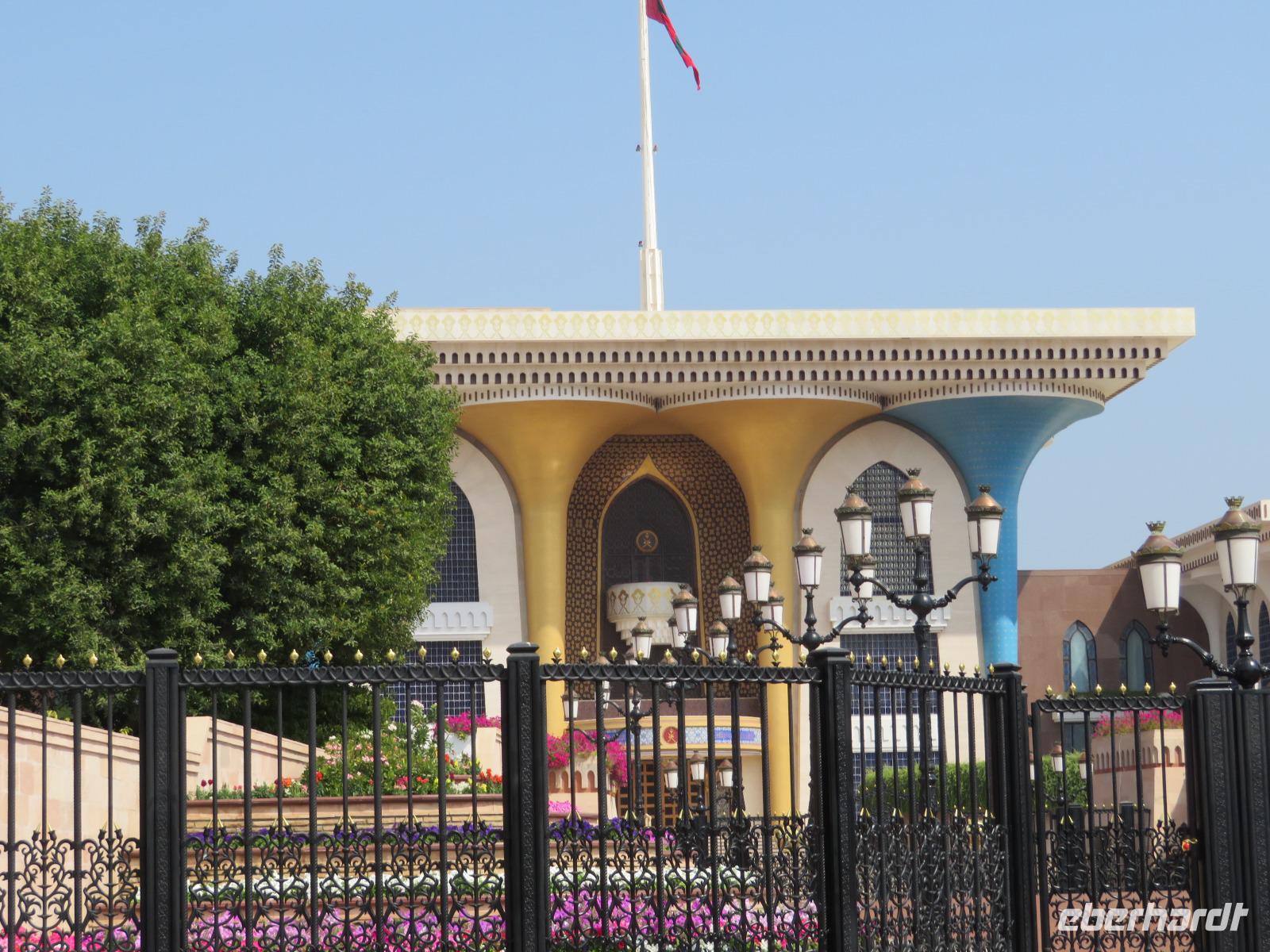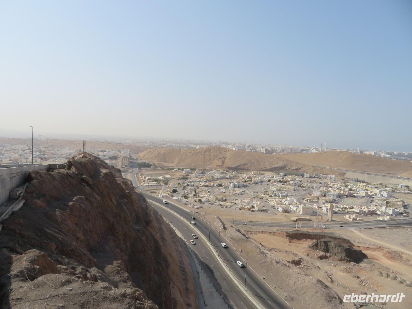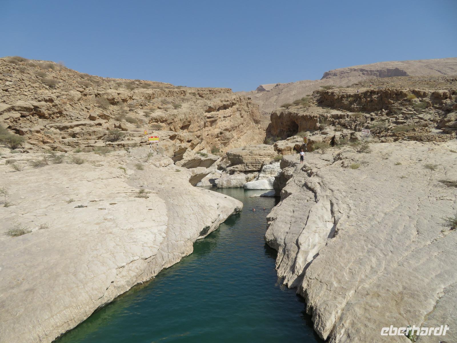 Nach dem Frühstück gehen wir zunächst auf den Gewürzmarkt in Sur und kaufen noch einige Gewürze für den heimatlichen Gebrauch. Danach fahren wir weiter in Richtung Muscat, unserer letzten Station. Doch auf dem Weg dorthin halten wir an der Ruinenstätte Qualhat, die im 13. Jahrhundert die erste Hauptstadt des damaligen Königreichs Hormuz war. Im damaligen Zeitalter war die Stadt mit einer Mauer und Wehrtürmen umgeben, aber im Jahr 1508 wurde die Stadt von den Portugiesen zerstört und die Bewohner getötet. Nach der Tragödie wurde die Stadt nicht wieder aufgebaut und geriet in Vergessenheit. Unsere Mittagspause verbringen wir am Wadi Tiwi, ein ruhige Idylle. Die Vegetation rund um den Wadi besteht neben Palmen auch aus Bananen, Mango- und Feigenbäume. Perfekt für ein Picknick, wie gut dass Eberhardt TRAVEL daran gedacht hat. Neben Fladenbrot werden Streichkäse und Chips gereicht. Klingt komisch, schmeckt aber gut :) Wir packen zusammen und unsere nächste Haltestelle an der Küstenstraße in Richtung Norden liegt das Bimmah Sinkhole. Legenden zufolge soll hier ein Krater eingeschlagen haben und dieses Badeparadies geschaffen haben. Doch dieses hat eigentlich natürliche Ursachen, das Sandgestein wurde vom Golf vom Oman unterspült und dieses Badeloch entstand. Wir besichtigen noch die Küstenstadt Quiryat und wir fahren über das Al Hajar Gebirge, schon von weitem erblicken wir die Hauptstadt des Omans, Muscat. Hier treffen sich Vergangenheit und Gegenwart. Wir machen noch eine Erkundungstour rund um das Hotel und essen dann gemeinsam zu Abend.