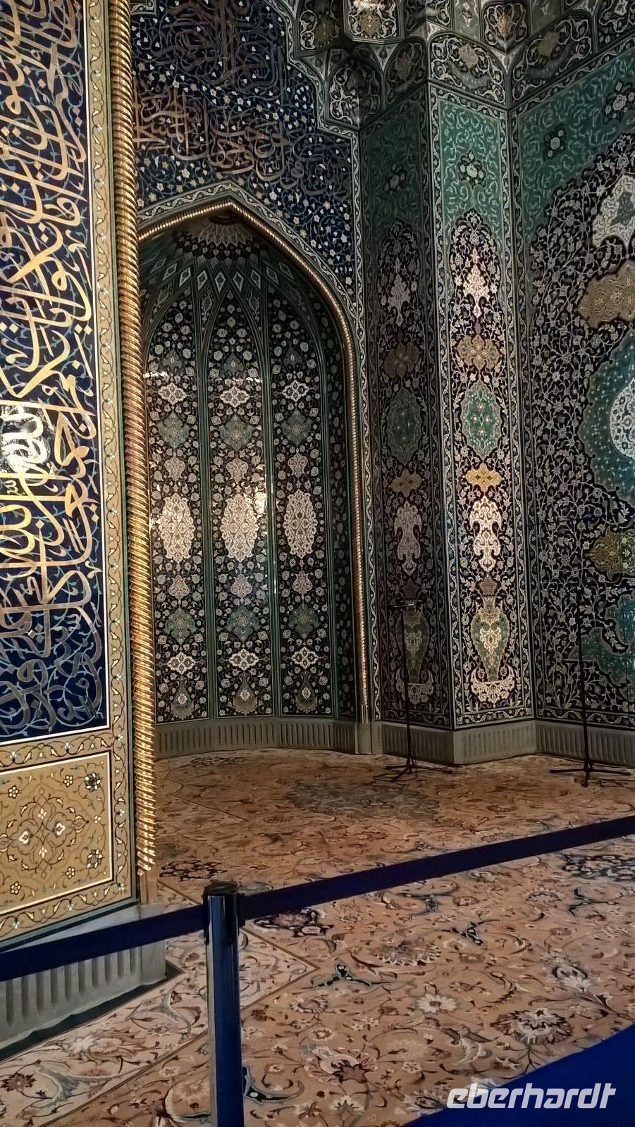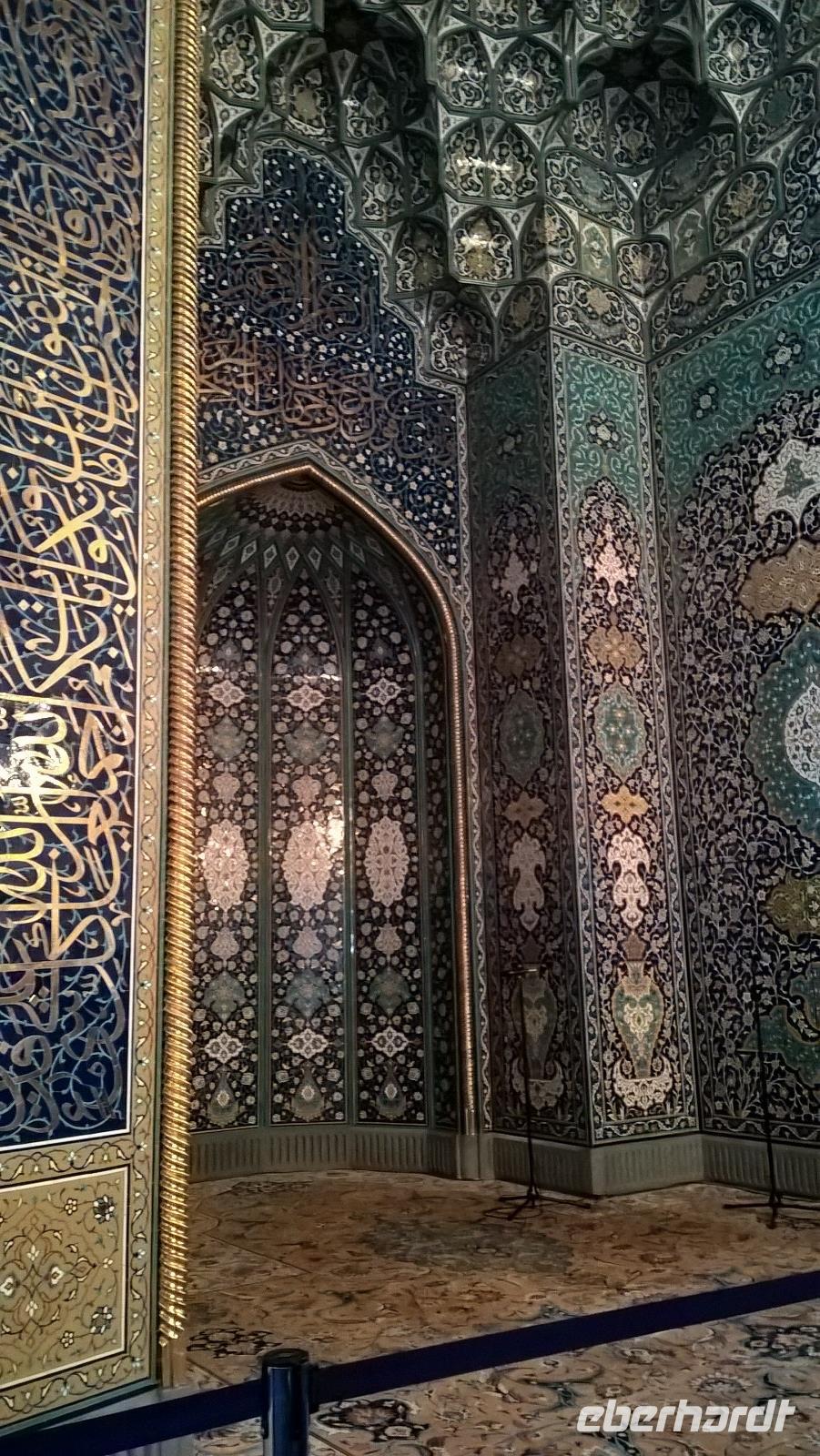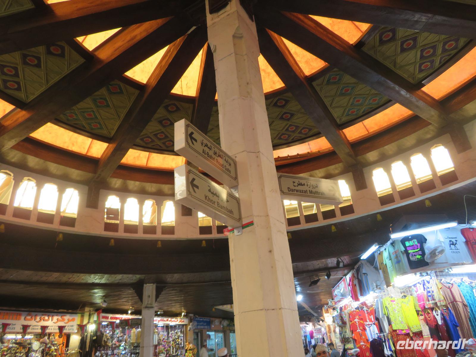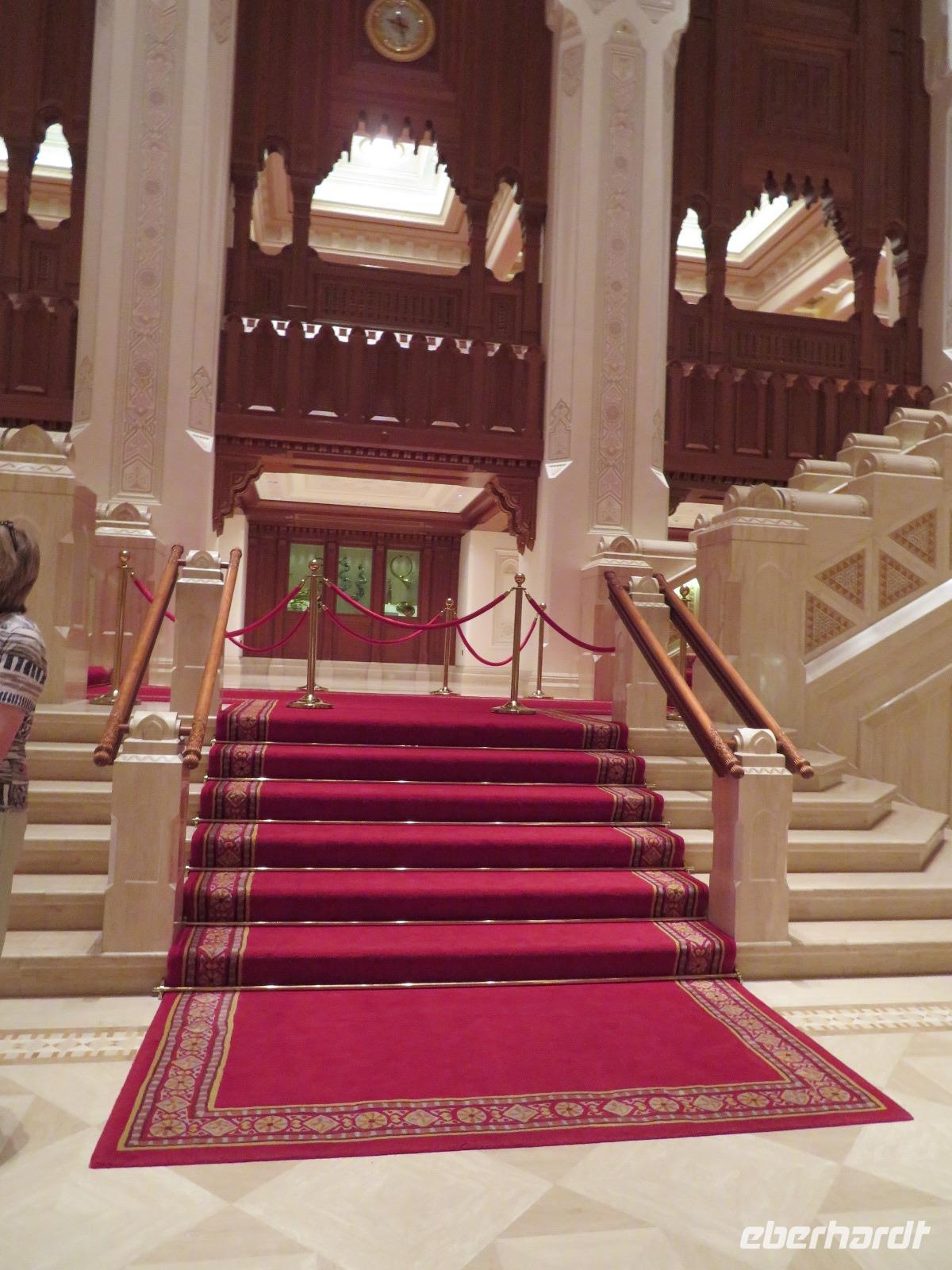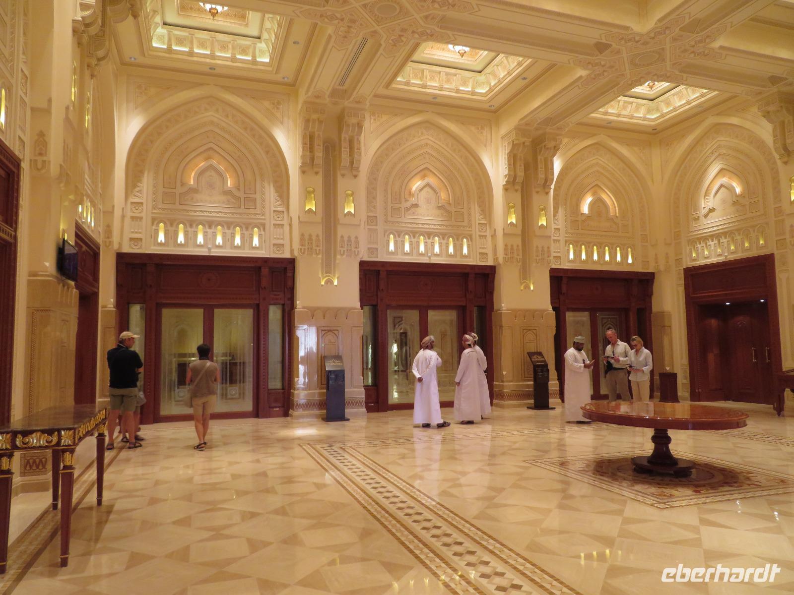 Nach dem Frühstück gehen wir zunächst auf den Gewürzmarkt in Sur und kaufen noch einige Gewürze für den heimatlichen Gebrauch. Danach fahren wir weiter in Richtung Muscat, unserer letzten Station. Doch auf dem Weg dorthin halten wir an der Ruinenstätte Qualhat, die im 13. Jahrhundert die erste Hauptstadt des damaligen Königreichs Hormuz war. Im damaligen Zeitalter war die Stadt mit einer Mauer und Wehrtürmen umgeben, aber im Jahr 1508 wurde die Stadt von den Portugiesen zerstört und die Bewohner getötet. Nach der Tragödie wurde die Stadt nicht wieder aufgebaut und geriet in Vergessenheit. Unsere Mittagspause verbringen wir am Wadi Tiwi, ein ruhige Idylle. Die Vegetation rund um den Wadi besteht neben Palmen auch aus Bananen, Mango- und Feigenbäume. Perfekt für ein Picknick, wie gut dass Eberhardt TRAVEL daran gedacht hat. Neben Fladenbrot werden Streichkäse und Chips gereicht. Klingt komisch, schmeckt aber gut :) Wir packen zusammen und unsere nächste Haltestelle an der Küstenstraße in Richtung Norden liegt das Bimmah Sinkhole. Legenden zufolge soll hier ein Krater eingeschlagen haben und dieses Badeparadies geschaffen haben. Doch dieses hat eigentlich natürliche Ursachen, das Sandgestein wurde vom Golf vom Oman unterspült und dieses Badeloch entstand. Wir besichtigen noch die Küstenstadt Quiryat und wir fahren über das Al Hajar Gebirge, schon von weitem erblicken wir die Hauptstadt des Omans, Muscat. Hier treffen sich Vergangenheit und Gegenwart. Wir machen noch eine Erkundungstour rund um das Hotel und essen dann gemeinsam zu Abend.