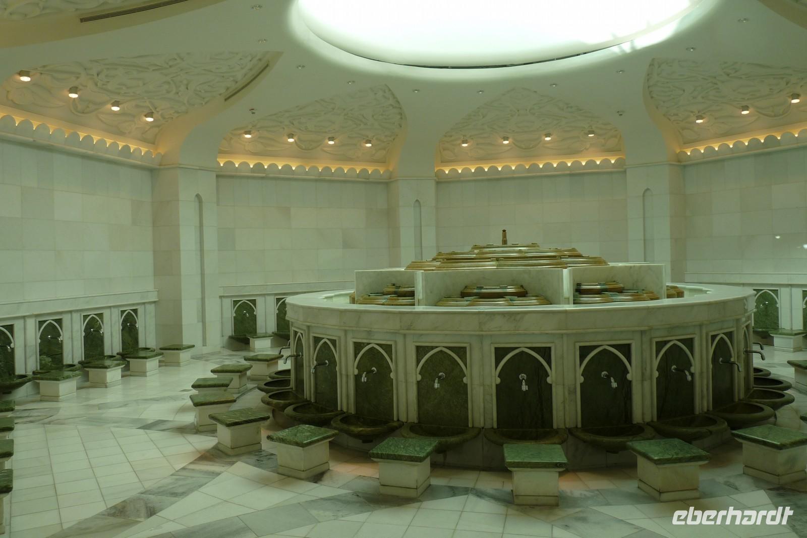 Abu Dhabi darf bei einem Besuch der VAE nicht fehlen. In der Shaikh Zayed Moschee, der weltweit größten Moschee außerhalb Saudi Arabiens, machen wir uns mit dem Islam und seinen Bräuchen vertraut. 40.000 Muslime haben hier Platz. Die im weißen Marmor schimmernde Moschee mit seinen 82 Kuppeln nenne ich auch den „Taj Mahal Arabiens“.
