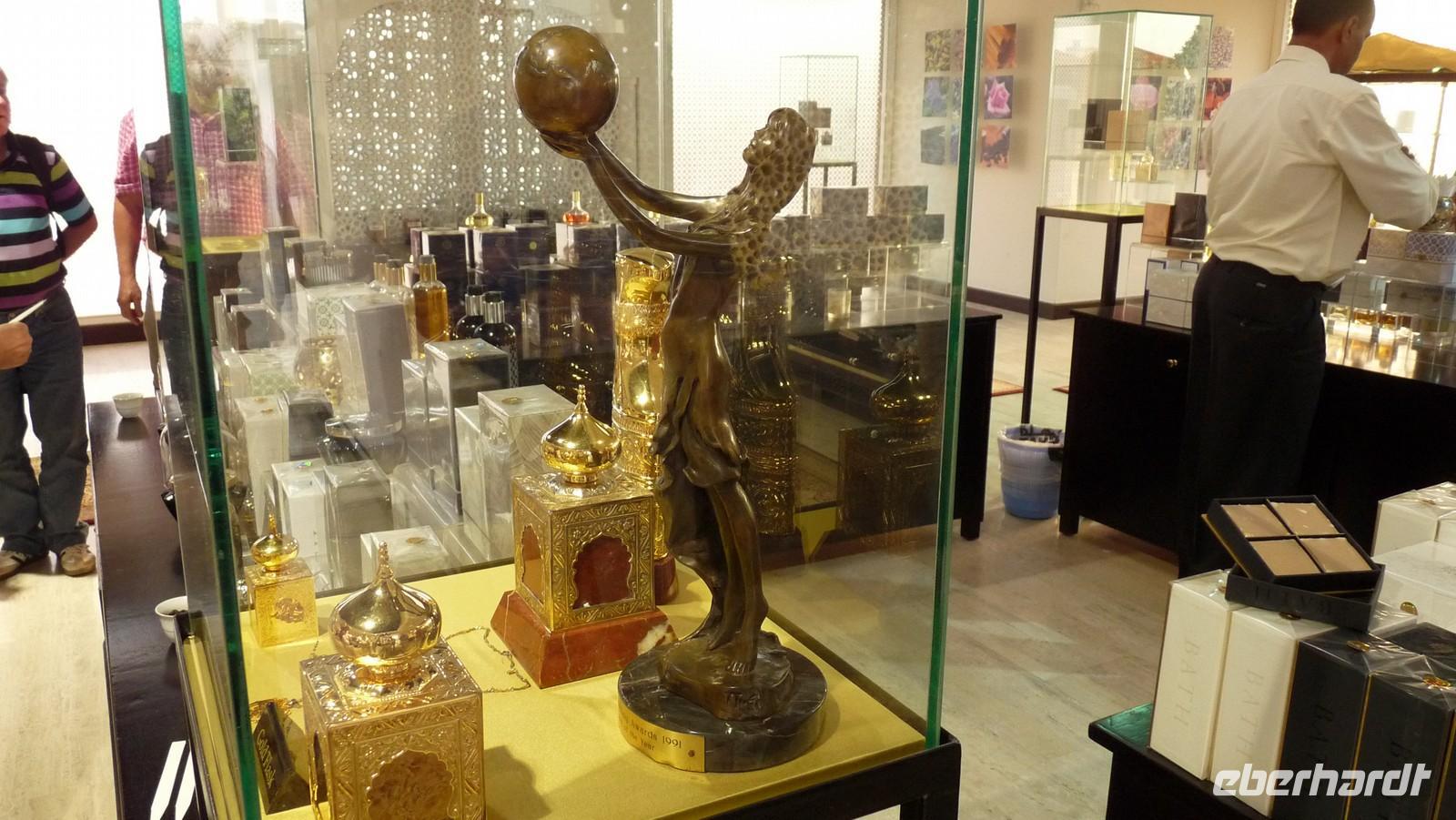 Orientalisches Flair erwartet uns im Muttrah-Souk, dem überdachten Markt Muscats. Es duftet nach Weihrauch und Gewürzen. Eine Besonderheit sind die Weihrauchstände. Hier verkaufen die dunkelhäutigen Frauen aus Salalah (Südoman) ihre Duftharzmischungen.
