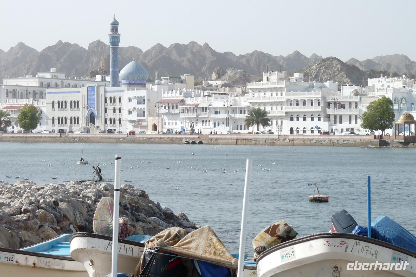 In Muscat besuchen wir den Fischmarkt im Stadtteil Muttrah. Von hier aus hat man einen beeindruckenden Blick auf die Bucht von Muttrah mit der schiitischen Moschee.
