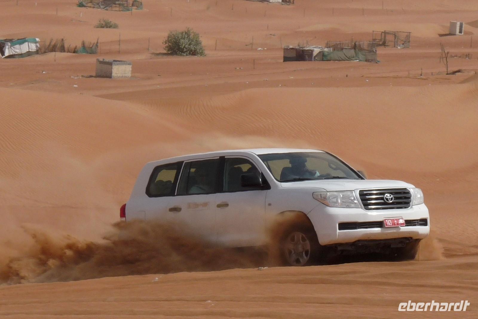 Auf dem Weg von Sur nach Nizwa gibt es ein Kontrastprogramm: Wasser und Wüste. Das Wadi Bani Khalid führt ständig Wasser und seine natürlichen Wasserbecken laden zum Schwimmen ein. In der Sandwüste Wahiba Sands unternehmen wir eine kleine Wüstensafari und besuchen Beduinen. Oft führen diese ein Doppellleben - pendeln zwischen modernen Steinhaus im nächsten Ort und traditionellem Zelt.