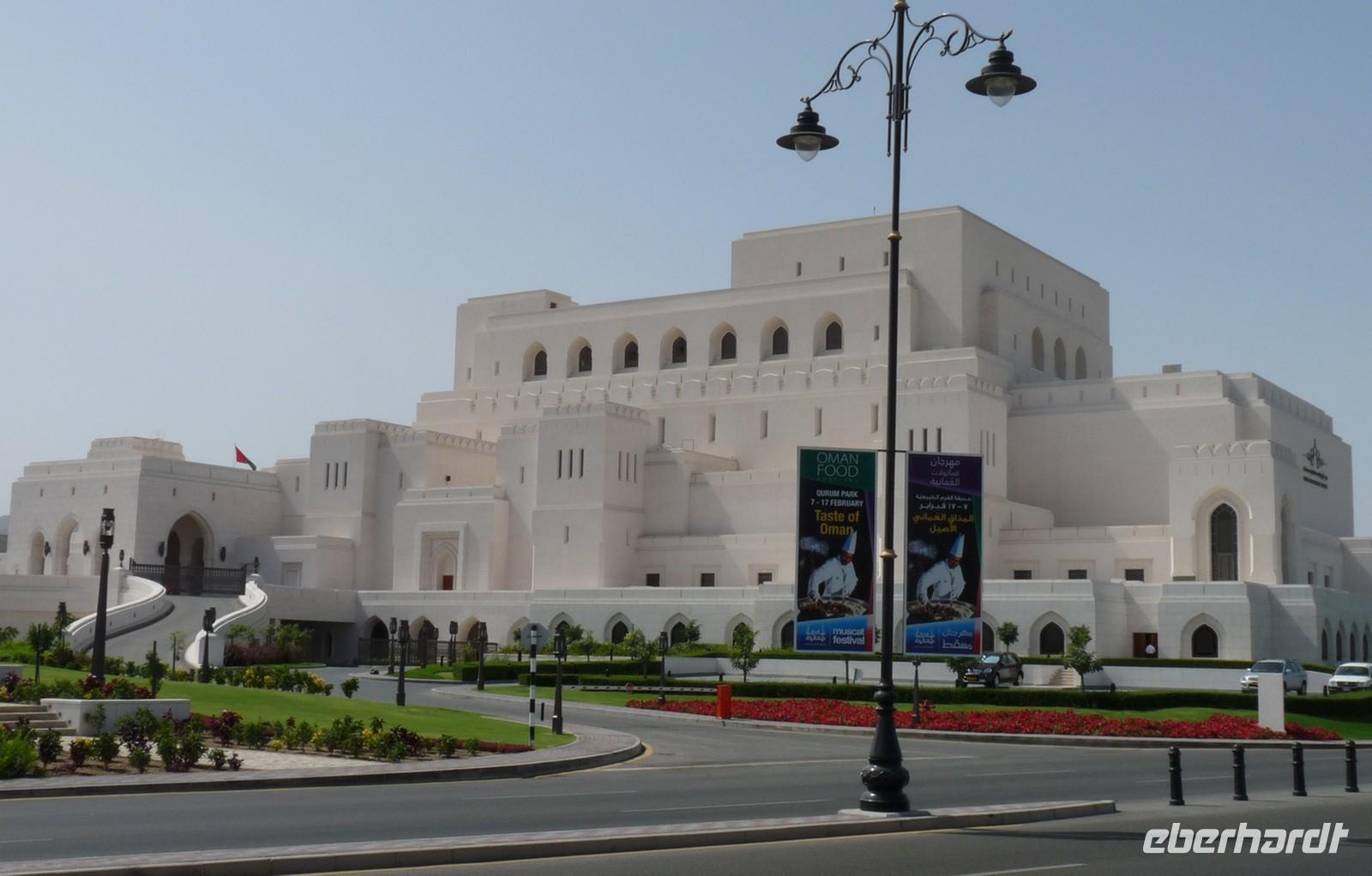 Wir fahren entlang der Straße der Botschaften zum Royal Opera House Muscat. Mit diesem Opernpalast hat Sultan Qaboos eine einzigartige Spielstätte geschaffen. Sie steht für die Vorliebe des Sultans für klassische Musik.
