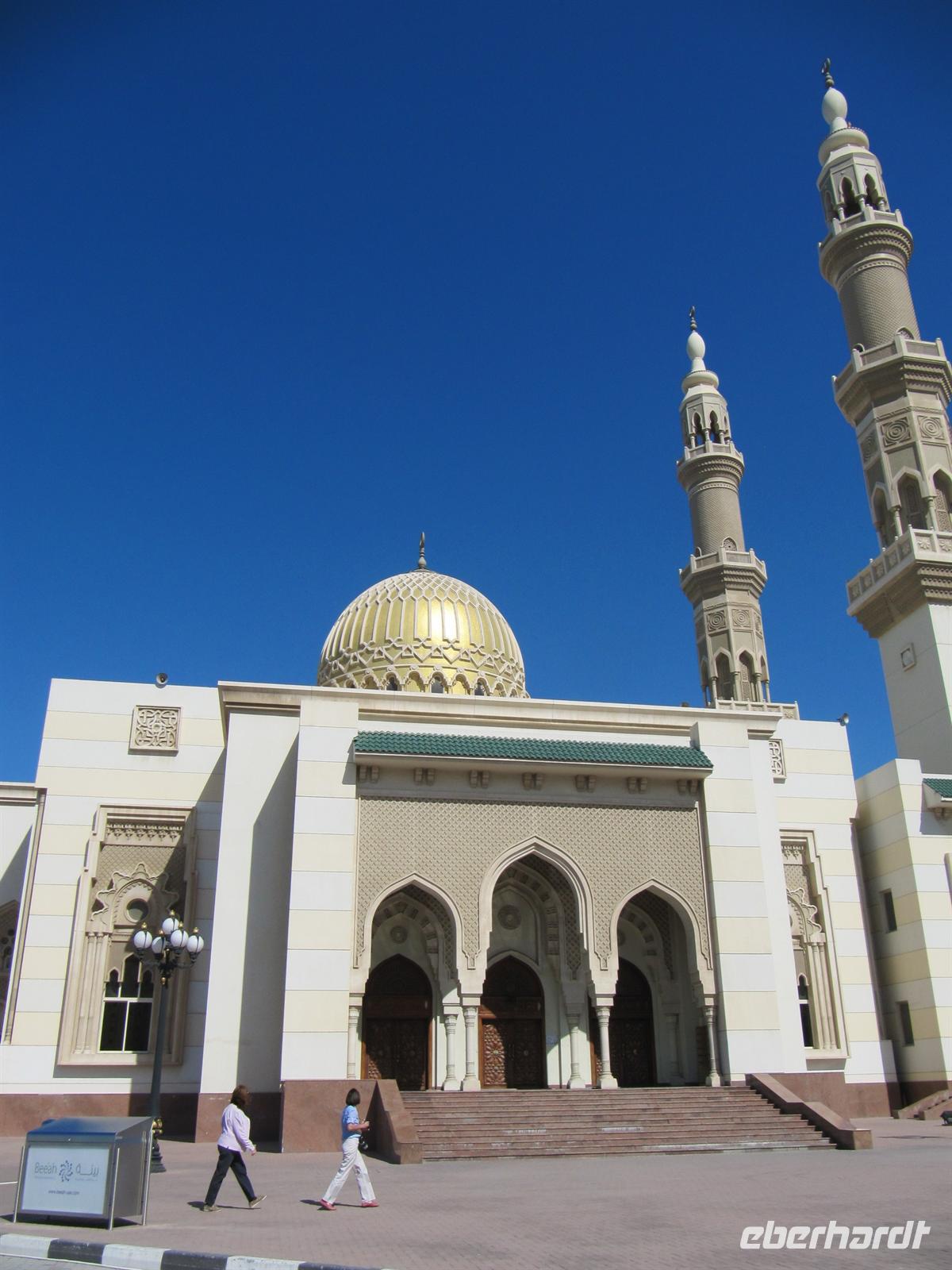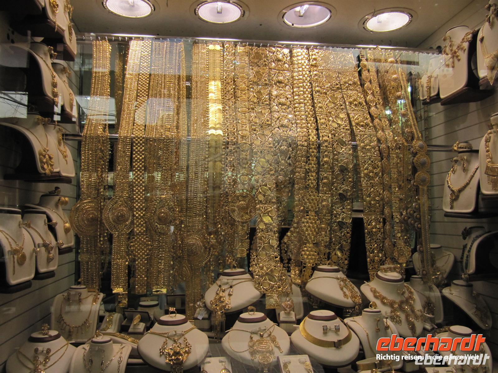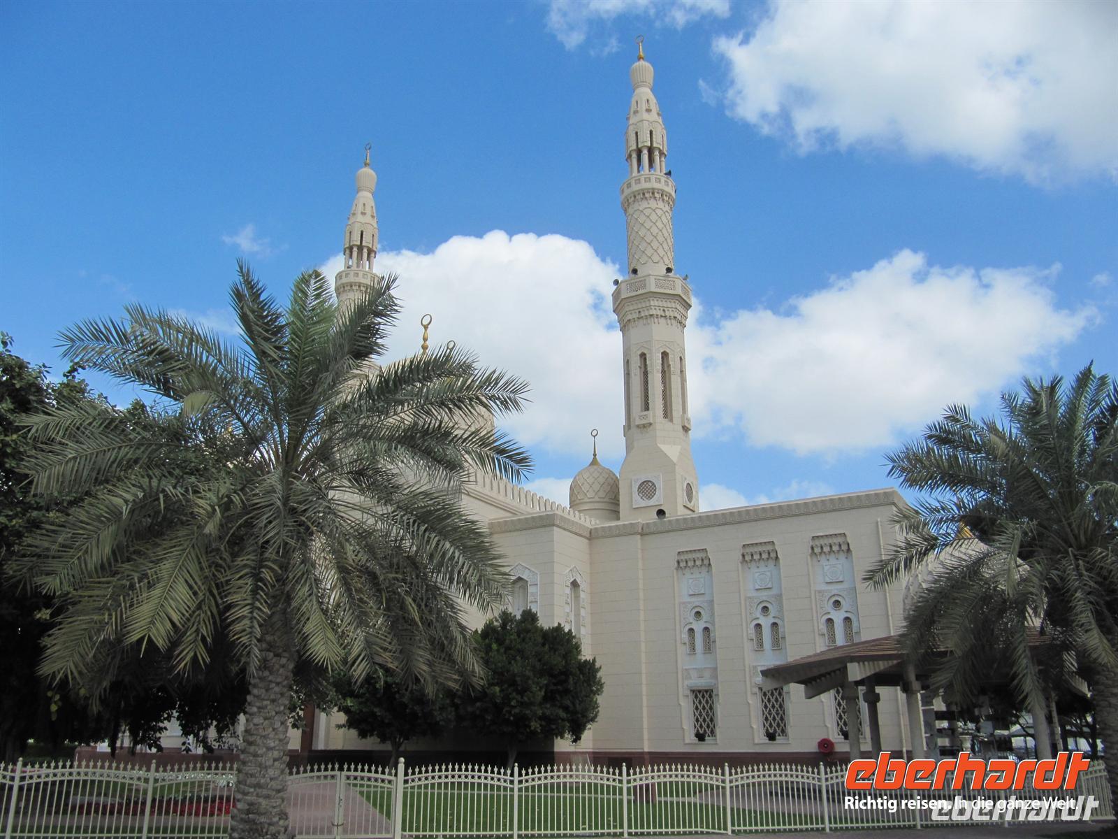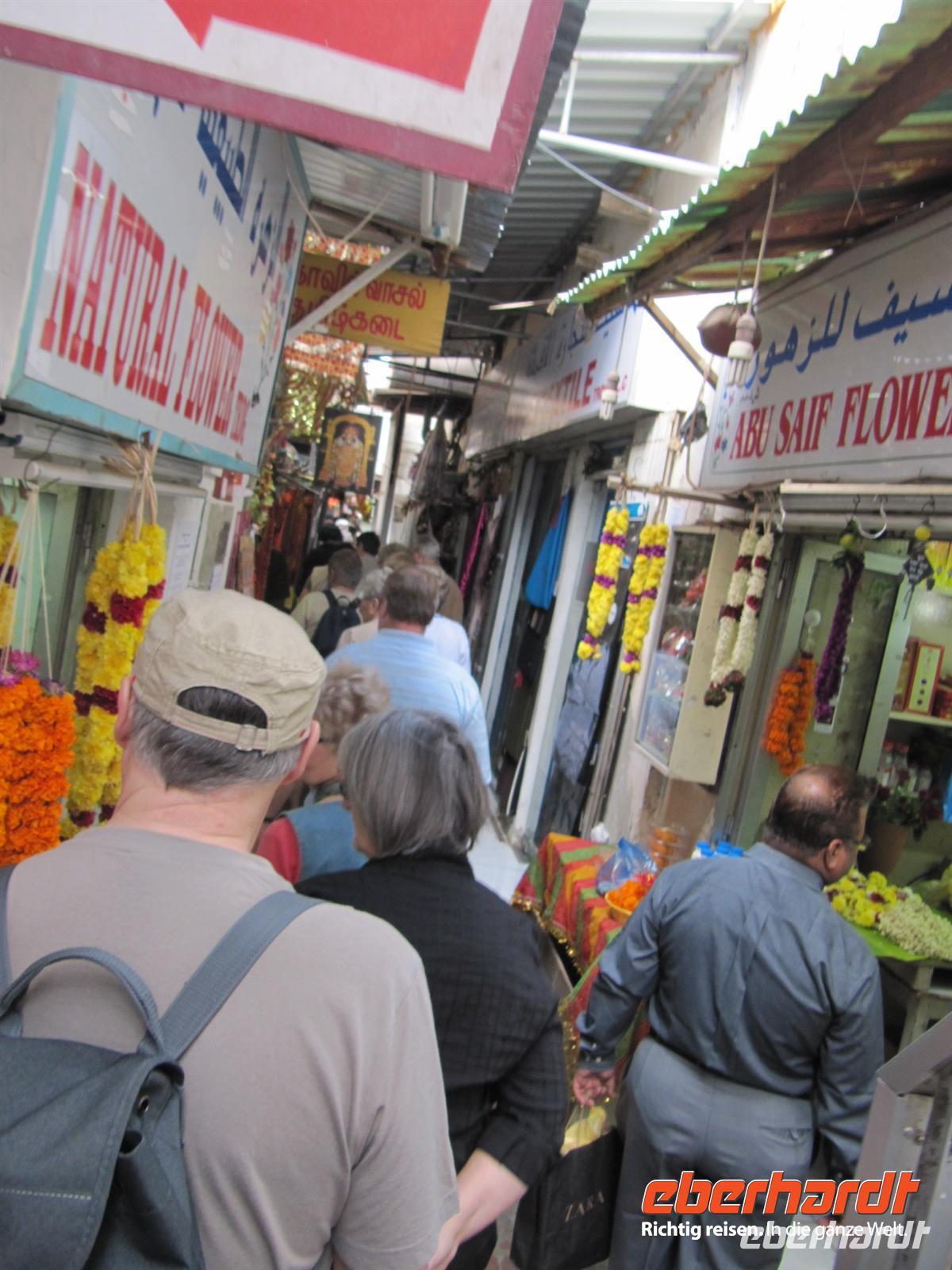 unsere Nasen. Natürlich besuchten wir einen der Händler und nahmen einige dieser kleinen Schätze mit. Es war ein Erlebnis durch die engen Gassen zu bummeln und immer neue Gerüche zu spüren und die verschiedensten Gewürze zu entdecken. Anschließend wurden ganz andere Sinne angesprochen. Wir erreichten den Goldsouk. Hier funkelten und glitzerten die vielen Schmuckstücke aus Gold, Silber, Platin und Diamanten mit unsren Augen um die Wette. Ein Geschäft am anderen bietet diese funkelnde Welt. Völlig überwältigt von soviel Reichtum spazierten wir zu unserem Bus. Wir fuhren zunächst zur Jumeirah Moschee. Hier legten wir einen Fotostopp ein. Wir konnten diese älteste Moschee Dubais nur von außen sehen, da nur Moslems in die Moschee besuchen dürfen. Anschließend ging unsere Fahrt zur Dunbai Mall. Dies ist das größte Einkaufszentrum der Welt mit 1.200 Geschäften und einigen Attraktionen. Zunächst nutzten wir die Zeit zu einem kleinen Imbiss und einem ersten kleinen Rundgang. Dann stand der erste Höhepunkt auf dem Programm. Wir besuchten das Aquarium. Zunächst gingen wir an der großen Glaswand entlang und entdeckten so manchen exotischen Fisch. Durch einen Tunnel gelangten wir direkt in die faszinierende Unterwasserwelt. Haie, Rochen und andere Fische zogen direkt über unsren Köpfen ihre Bahnen. Auch dieser Besuch war ein tolles Erlebnis. Nun erwartete uns wohl der absolute Höhepunkt im doppelten Sinne. Wir fuhren auf das höchste