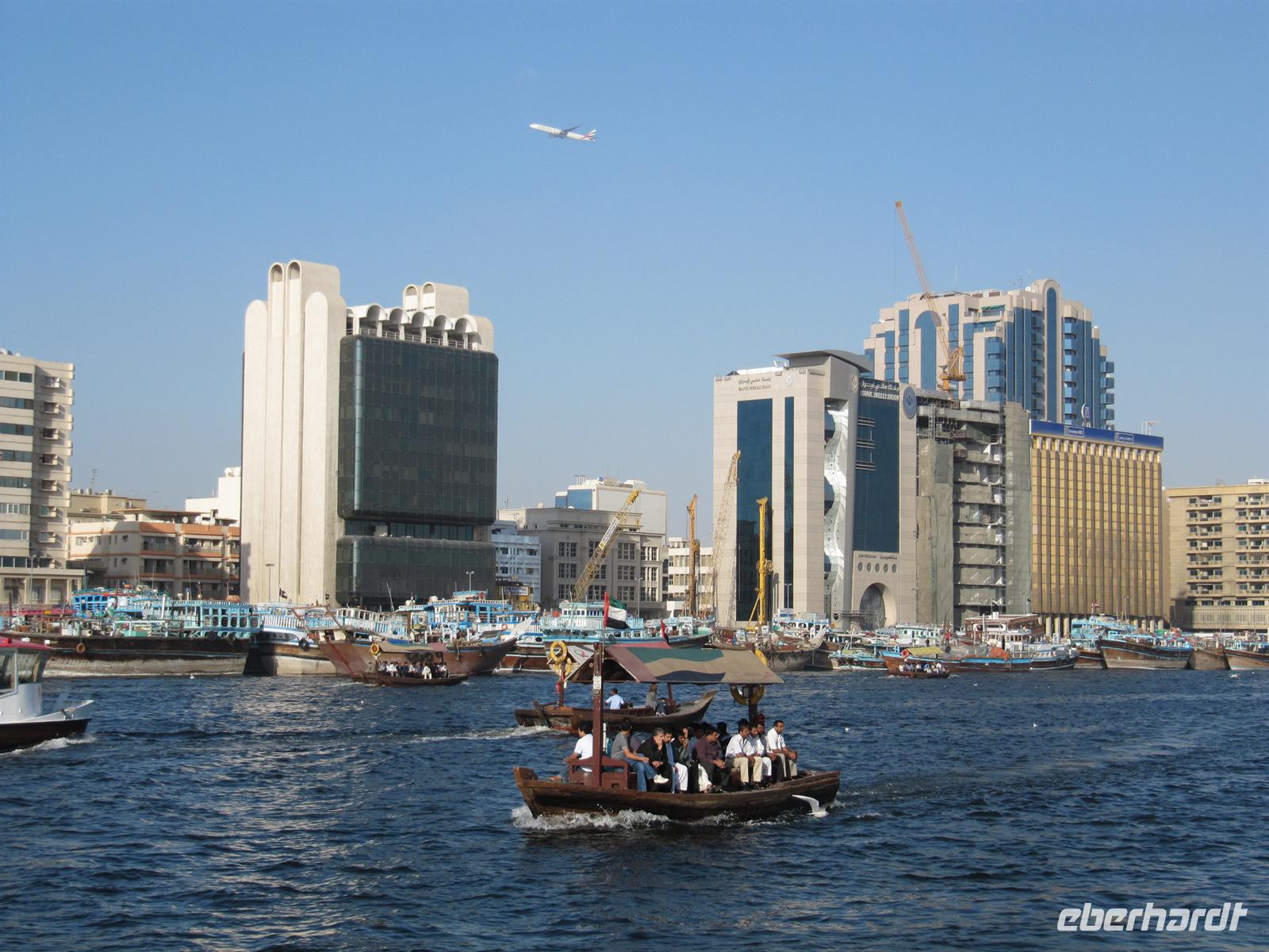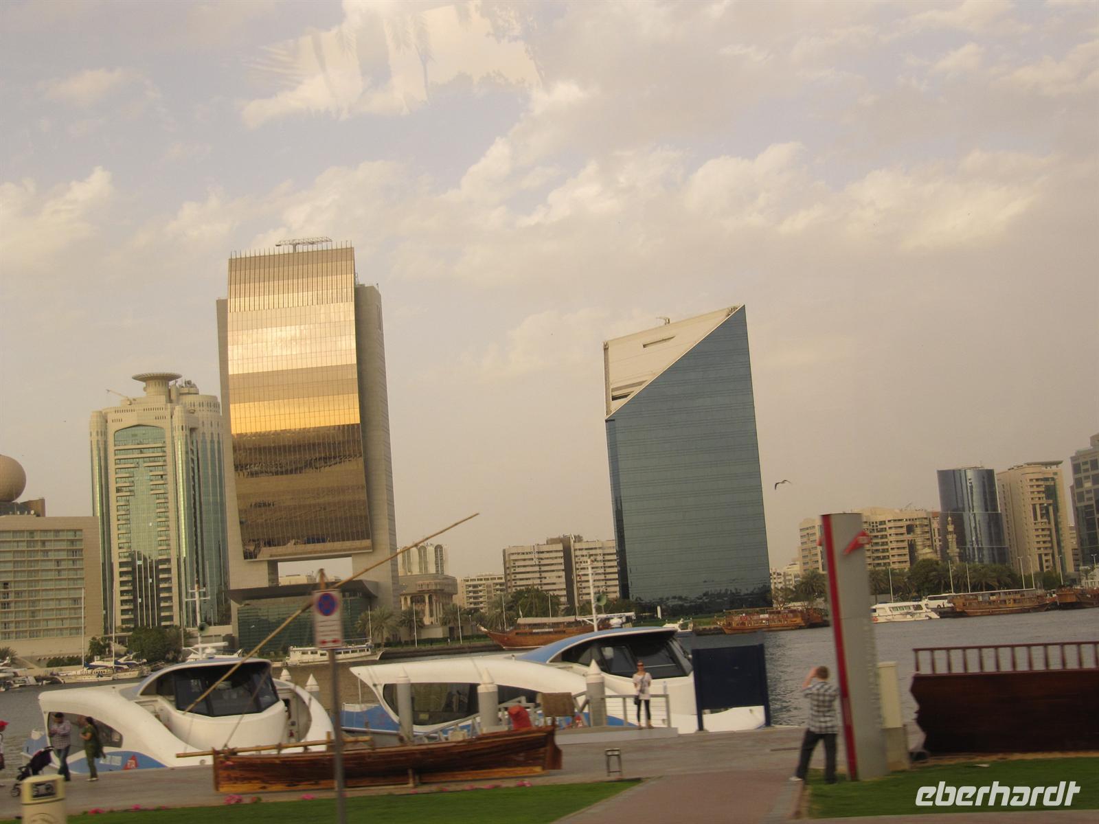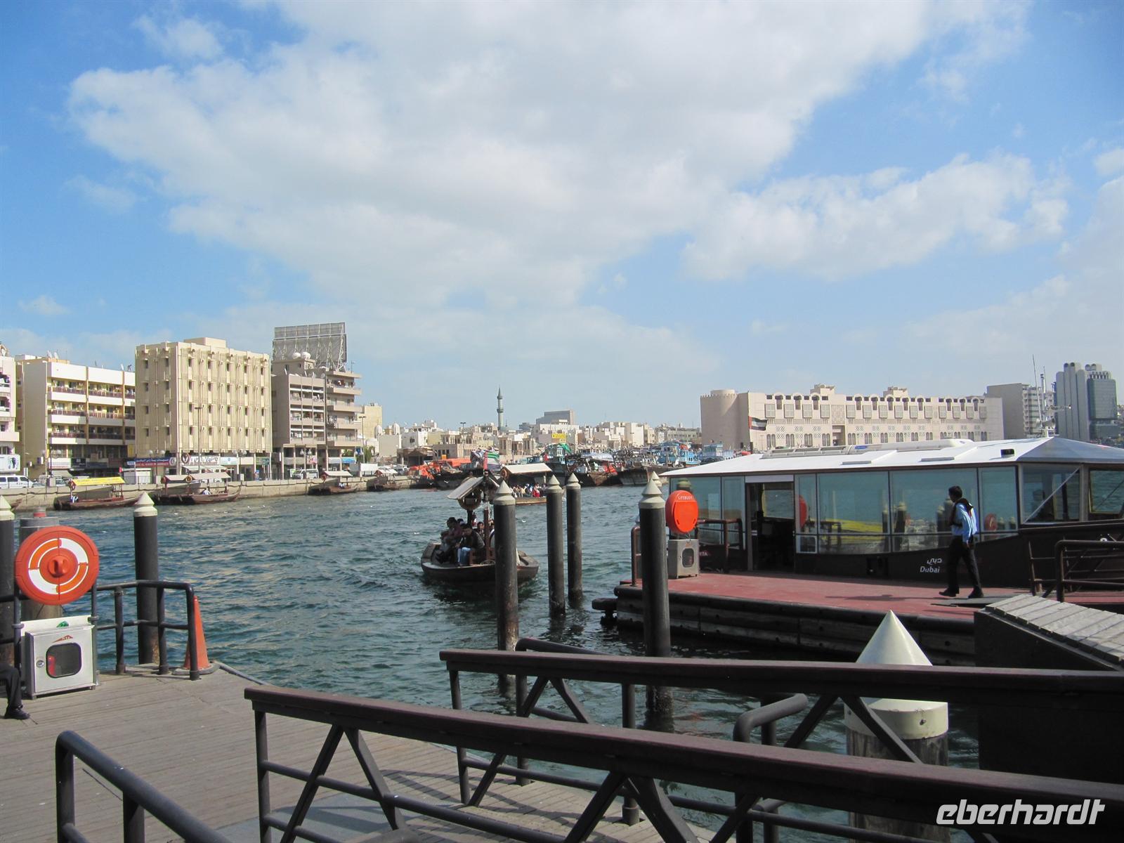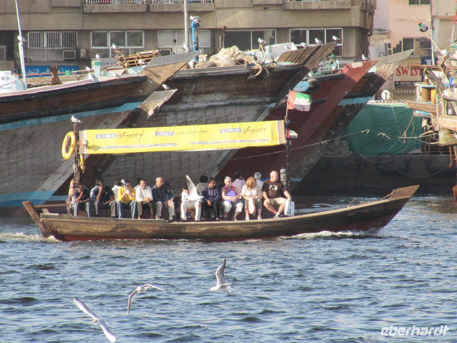 Am Abend spazierten wir zum Creek und unternahmen eine romantische Fahrt mit einer Dauh auf dem Creek. Wir erlebten das abendliche Dubai. Uns wurde ein schmackhaftes arabisches Buffet gereicht, während wir an den beleuchteten Hochhäusern vorbei glitten. Leider blies der Wind sehr stark und wir mussten uns dick anziehen, um nicht zu frieren. Aber dennoch genossen wir die Fahrt und ließen den erlebnisreichen Tag ausklingen.