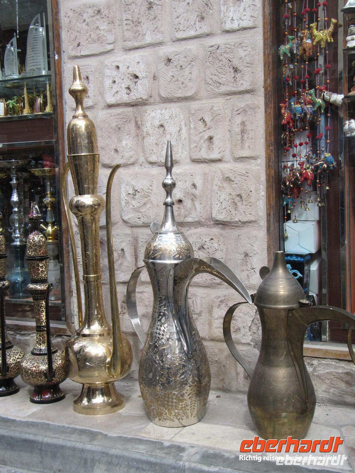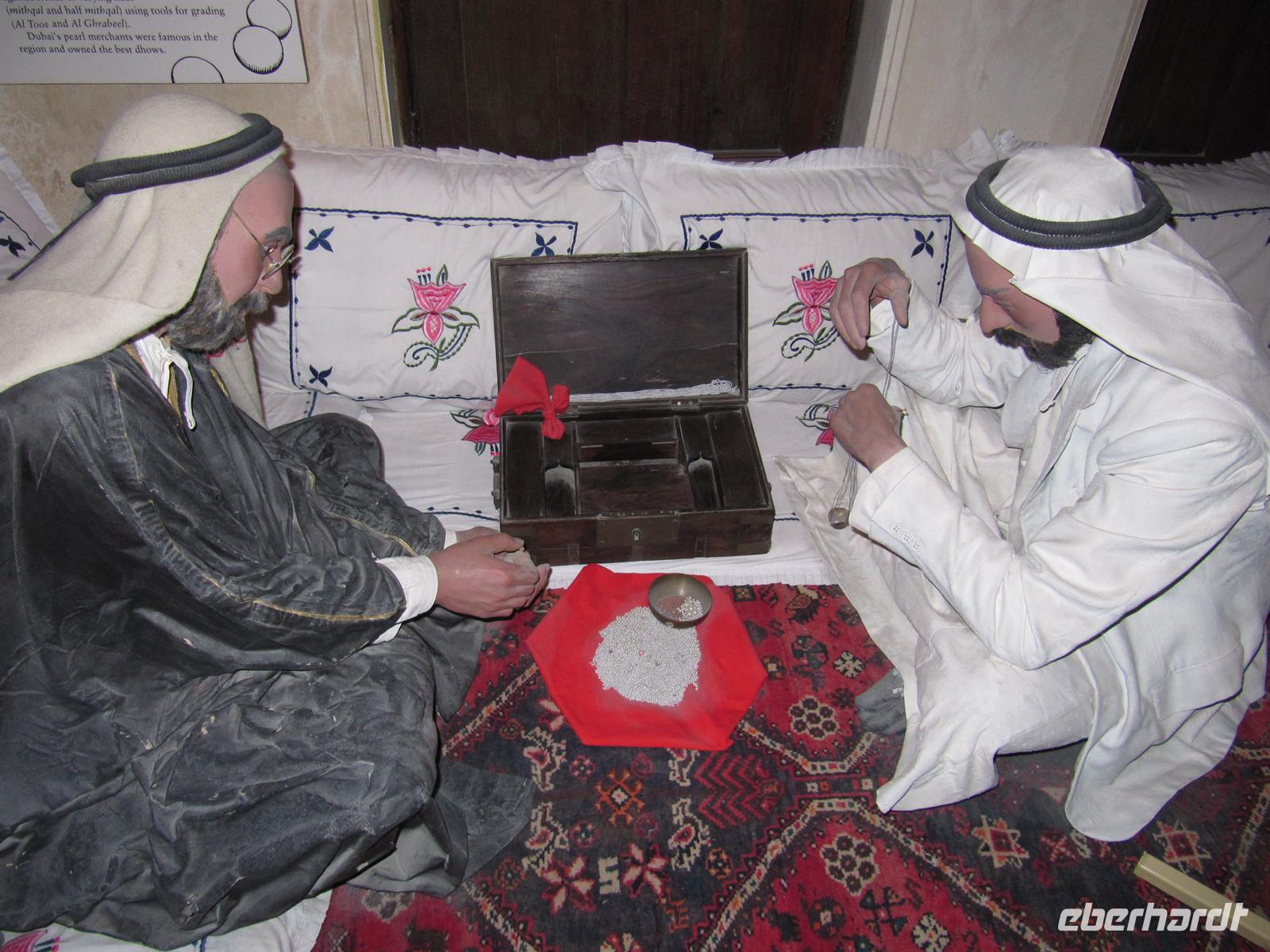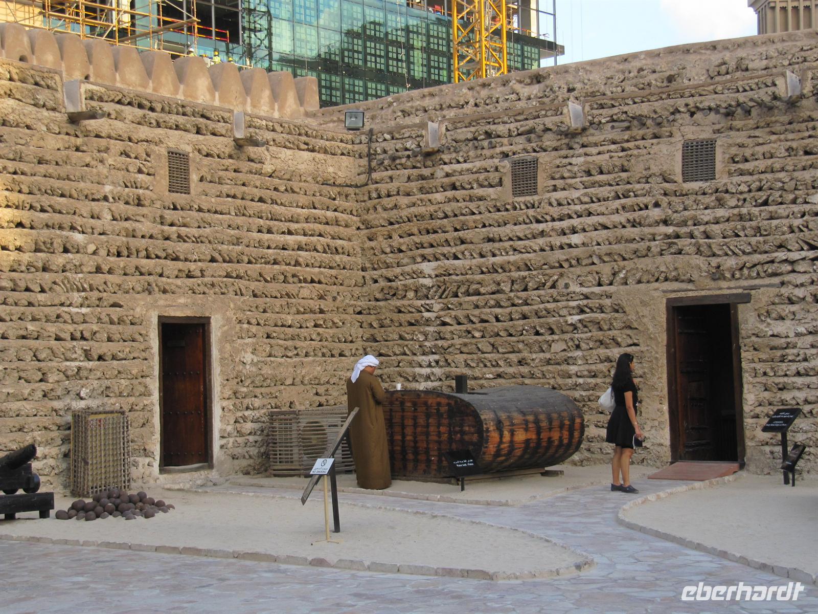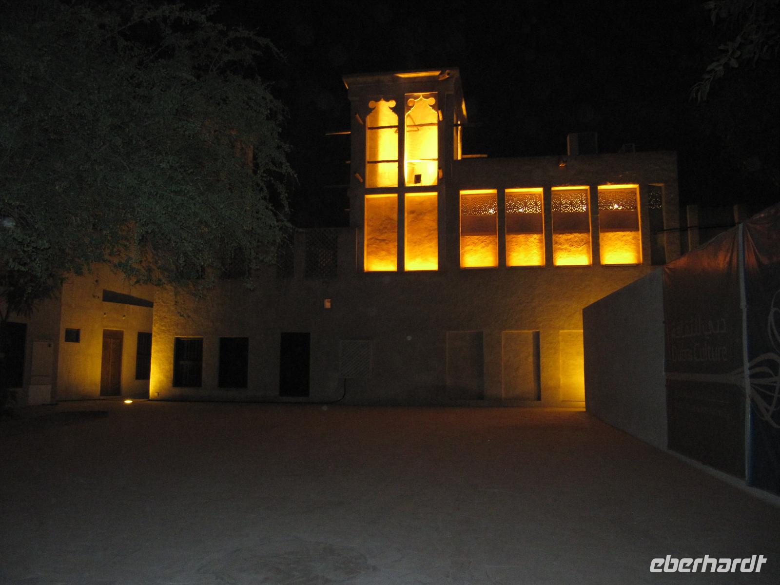 uns vorzügliches Büffet, welches keine Wünsche offen ließ. Natürlich spazierten wir durch die großzügige Lobby des Hotels und fuhren mit dem gläsernen Fahrstuhl in die 27. Etage. Leider konnten wir ganz oben nicht ins Restaurant oder in die Bar. Dennoch war die Aussicht atemberaubend. Das Hotel ist mit viel Gold verziert und in der Lobby gibt es einen Wasserfall und Wasserspiele. Viel zu schnell verging die Zeit und wir bummelten über die Brücke zurück zum Bus. Nun statteten wir dem Madinat Souk noch einen Besuch ab. Dieser im alten Stil erbaute Souk ist wunderschön. Die verschiedensten Waren werden angeboten und hübsche Restaurants am Wasser laden zum Verweilen ein. Am Nachmittag kehrten wir zum Hotel zurück. Wir besuchten das Dubai Museum, welches sich genau gegenüber von unserem Hotel befand. Hier ist sehr eindrucksvoll die Geschichte von Dubai seit Beginn der Ölfunde dargestellt. Vom kleinen Beduinendorf hat sich die Stadt innerhalb von nur 50 Jahren zur Weltmetropole der Superlative entwickelt.