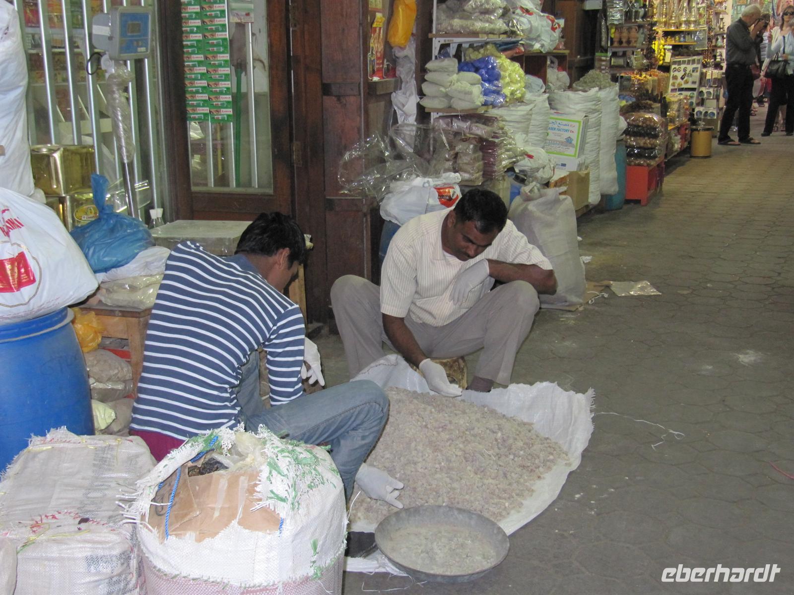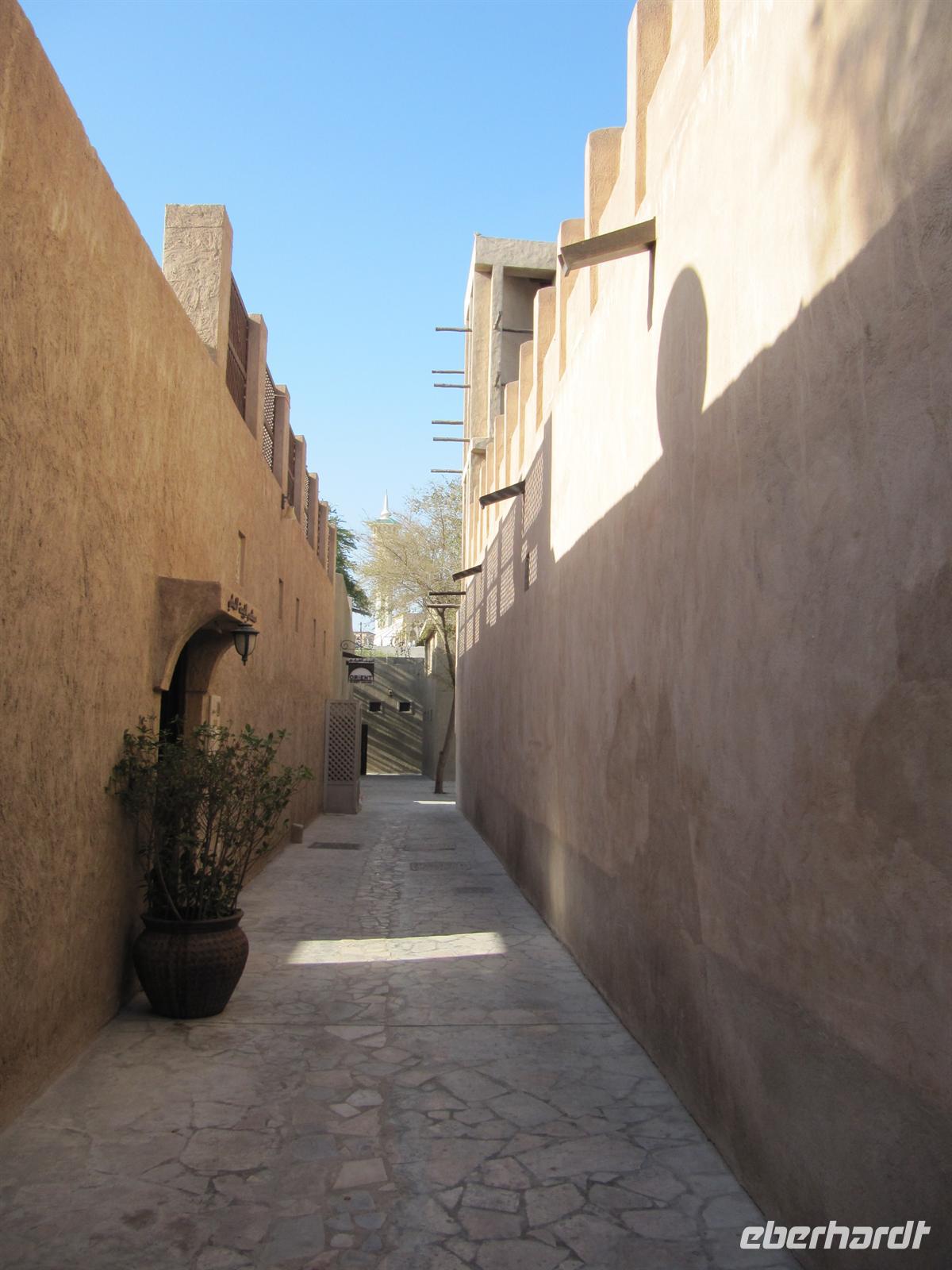 Heute schliefen aller aus. Ich durfte die beiden zunächst in München zurück geblieben Damen am Flughafen abholen. Die Ärzte haben die Erlaubnis gegeben und so konnten sie einen Tag später reisen. Nach dem Frühstück im Hotel trafen wir uns mit Martina am Hotel. Wir spazierten am Dubai Museum vorbei in die engen Gassen des Viertels der indischen Schneider. Die Welt der bunten Stoffe zog uns in ihren Bann. In dem wunderschönen alten Souk wurden die verschiedensten Waren feil geboten. Nun erreichten wir den Creek und mit einer Abra, einem typischen Wassertaxi setzten wir auf die andere Seite zum Gewürzsouk über. Hier nahm uns sofort der Duft hunderter exotischer Gewürze gefangen. Anis, Weihrauch, Zimt, Vanille, Pfeffer und, und, und kitzelten