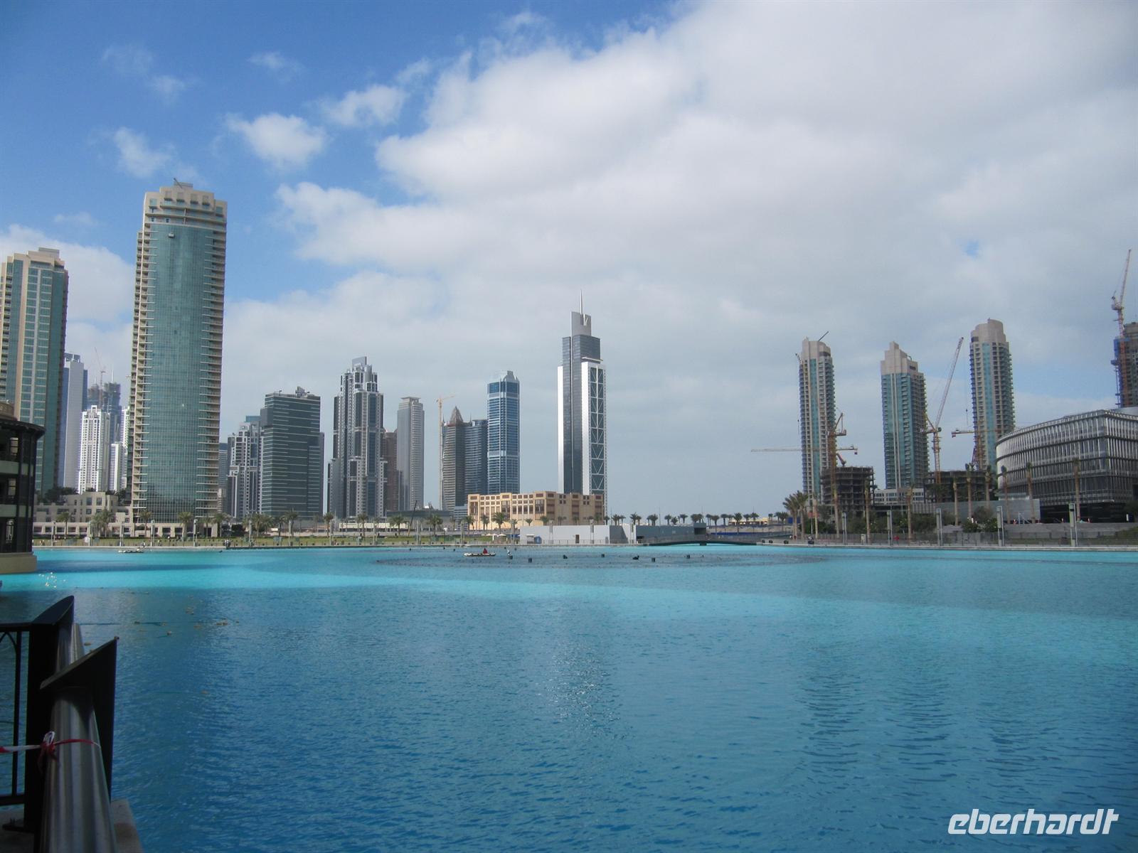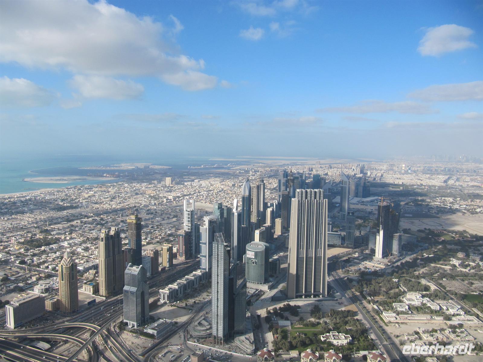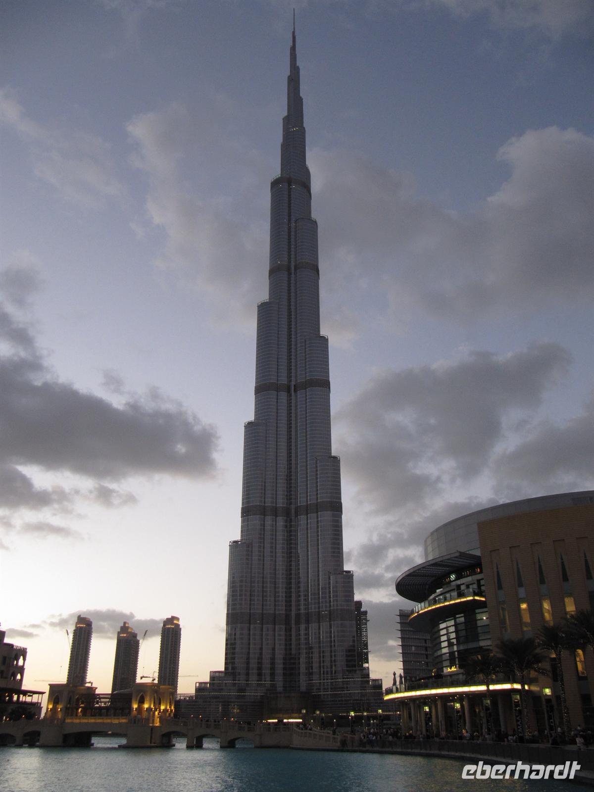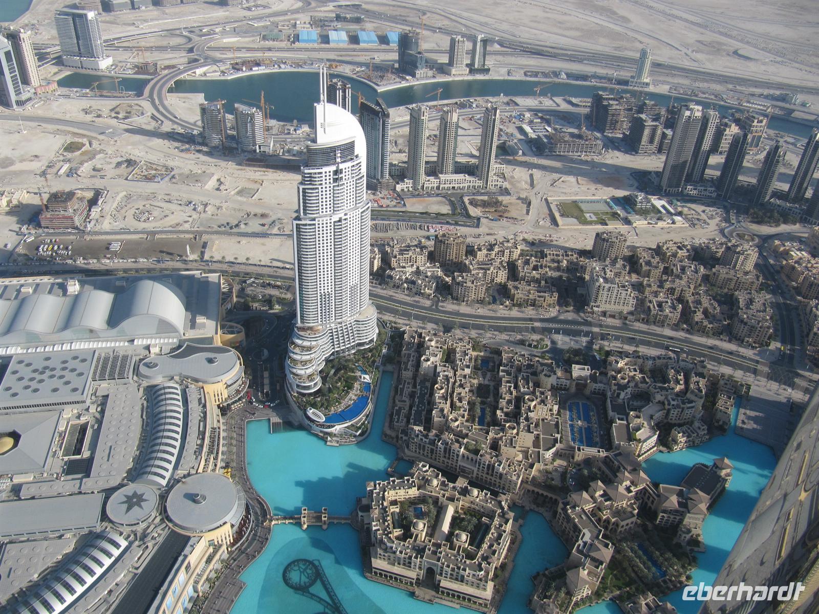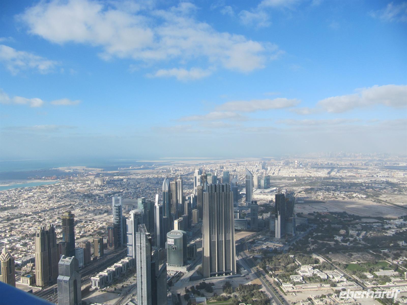 Gebäude der Welt, den Burj Kalifa. Dieses Gebäude ist 828 Meter hoch. Innerhalb von nur einer Minute brachte uns der Lift in das 124. Stockwerk in 452 Metern Höhe. Hier eröffnete sich uns ein einmaliger Blick über Dubai und weit in die Wüste. Von dieser Höhe ist uns erst so richtig bewusst geworden, wie Dubai in nur 50 Jahren entstanden ist. Eigentlich aus dem Nichts mitten in der Wüste. Wir waren alle überwältigt von diesen Eindrücken. Der Lift brachte uns wieder sicher auf den Boden. Nun schautemn wir uns die Wasserspiele vor dem Burj Kalifa an. Leider wurden diese aber im wahrsten Sinne des Wortes etwas vom Winde verweht. Mit vielen neuen Eindrücken kehrten wir zum Hotel zurück. Ein erlebnisreicher Tag ging mit dem Abendessen zu Ende.