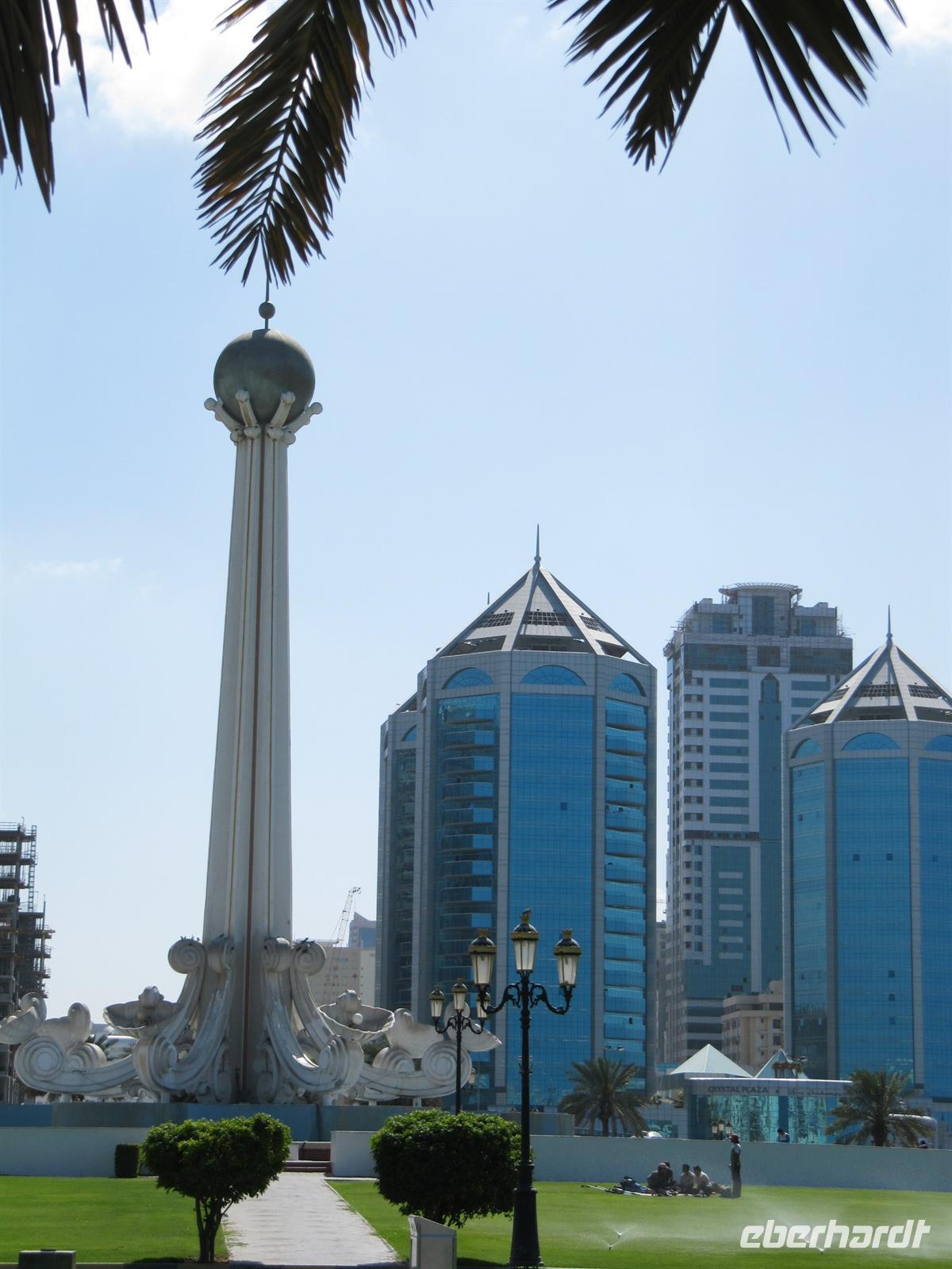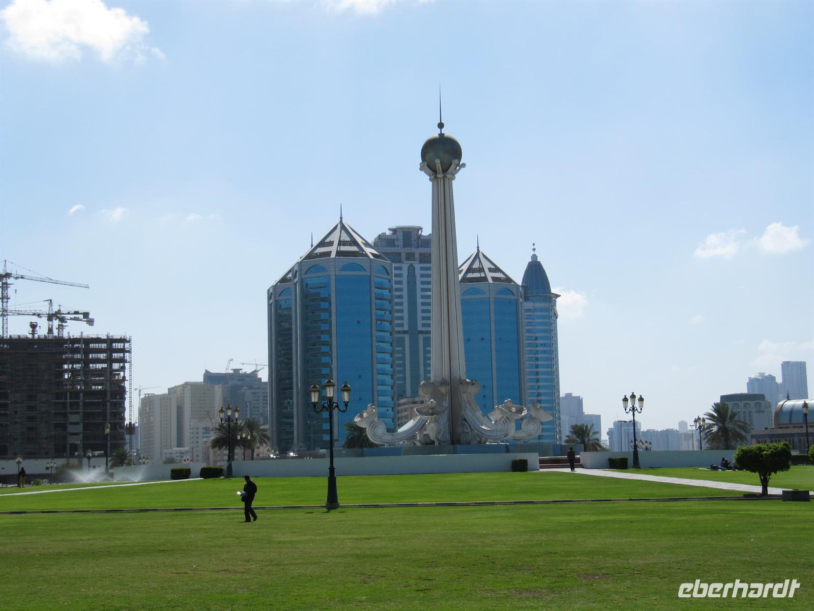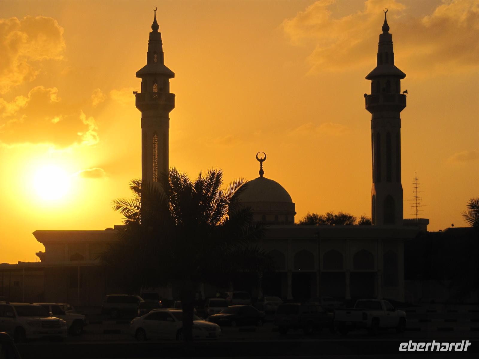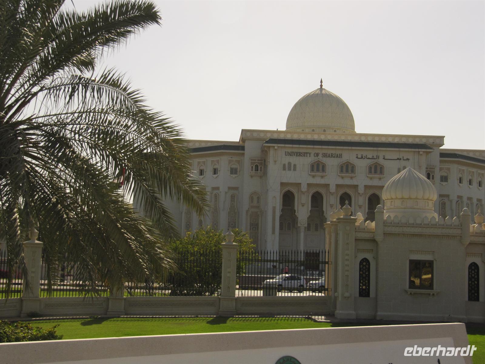 Heute stand zunächst der Besuch des Nachbaremirates Sharjah auf unserem Programm. Martina hatte einen Behördentermin und so kam Dr. Normen Ali für diesen Ausflug als Reiseleiter. Er brachte uns auf ganz eigene Art seinen Stolz auf seine Heimat mit vielen interessanten Informationen näher. Wir fuhren zunächst durch das Universitätsviertel, welches mit seinen weitläufigen Grünanlagen und weißen Universitätsgebäuden einem großen Garten gleicht. Dann fuhren wir zur King Faisahl Moschee und bummelten durch den alten Souk. Er ist der älteste Souk der Emirate. Anschließend spazierten wir über den Fischmarkt. Hier entdeckten wir so manch exotische Fische und Schalentiere, die wir nur aus Speisekarten guter Restaurants oder als