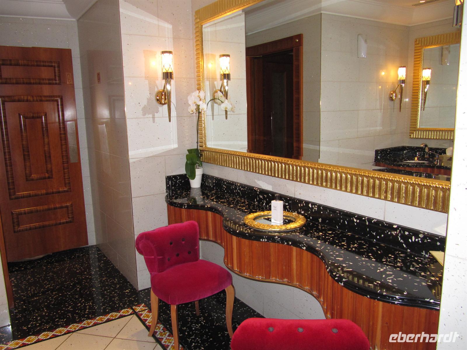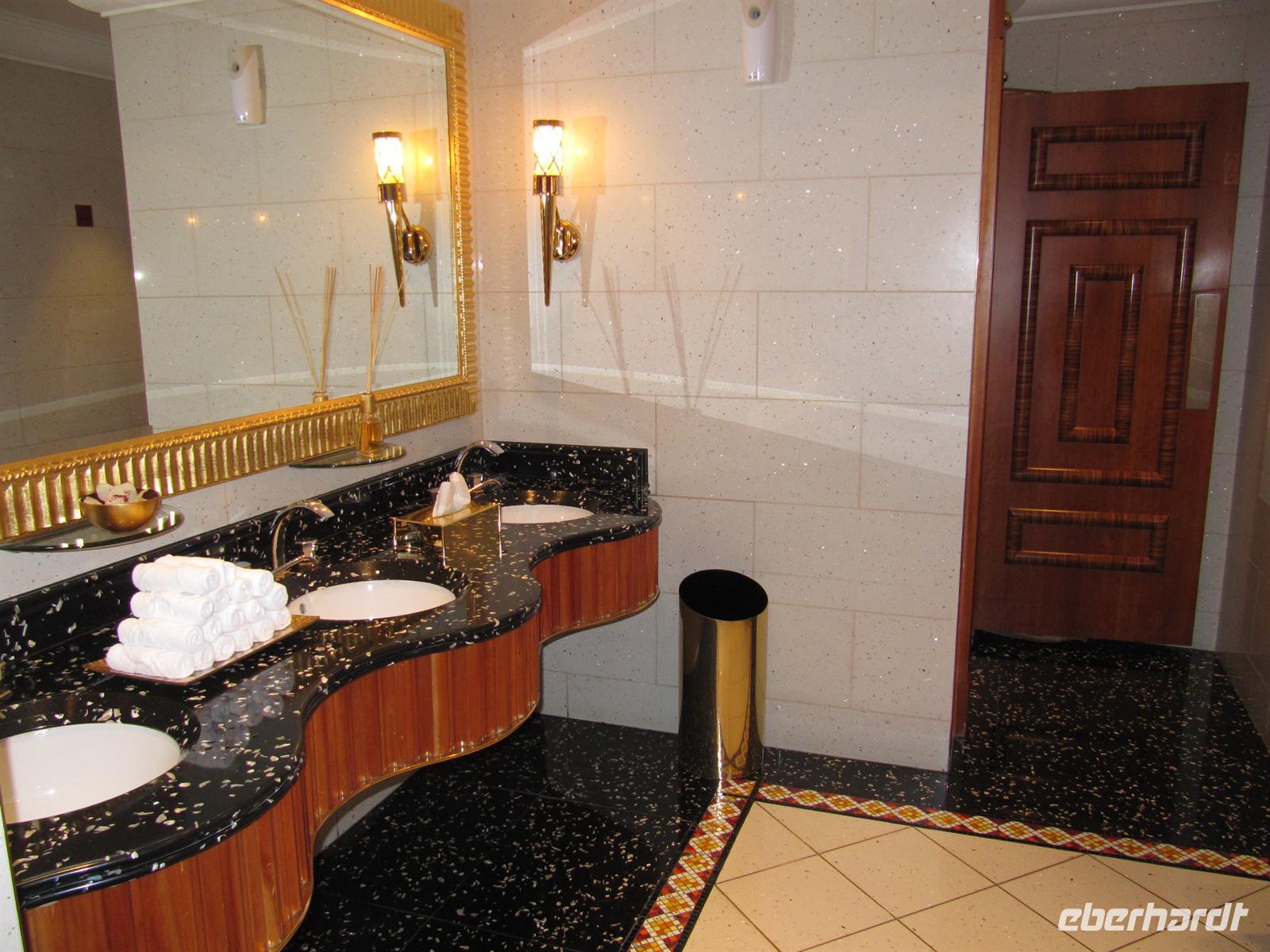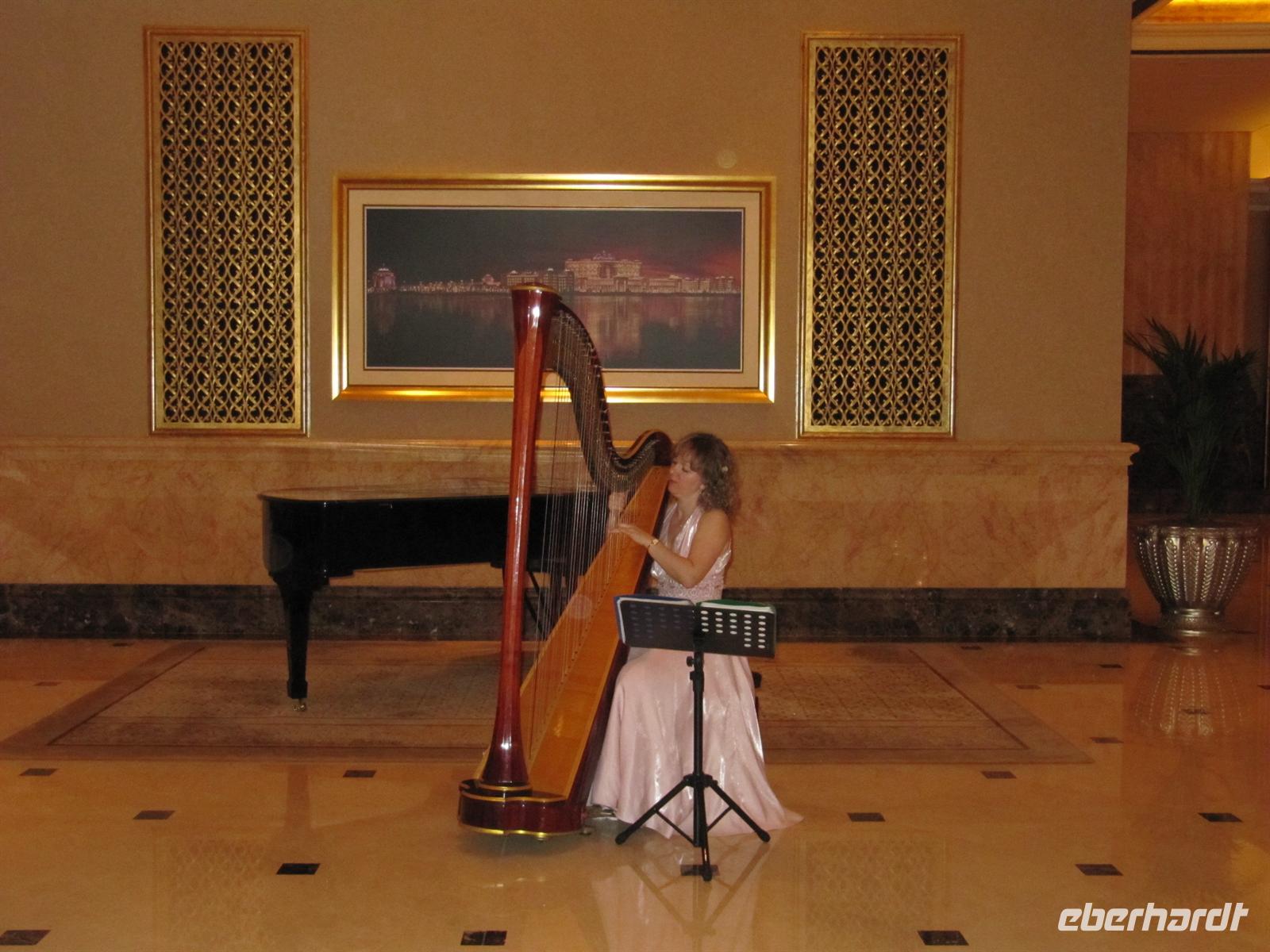 Wir sahen die Skyline der Stadt und die Marina-Mall. Nun erreichten wir das prachtvolle Emirates Palace Hotel. Wir sahen uns die Ausstellung über die neuen Bauprojekte auf der Insel vor Abu Dhabi an. Dort sollen mehrere Museen mit sehr moderner Architektur entstehen. Nun flanierten wir durch die prunkvolle Lobby des Hotels. Für uns war eine Teestunde im Café reserviert. In sehr gediegener Atmosphäre wurden uns Kleine Süßigkeiten und Sandwiches gereicht. Eine der Törtchen waren sogar mit Gold verziert.Wir genossen diese Stunde. Anschließend fuhren wir über die Insel Yasi Island und sahen die Formel 1 Rennstrecke. Nachdem wir alle Fotos geschossen hatten, kehrten wir nach Dubai zurück.