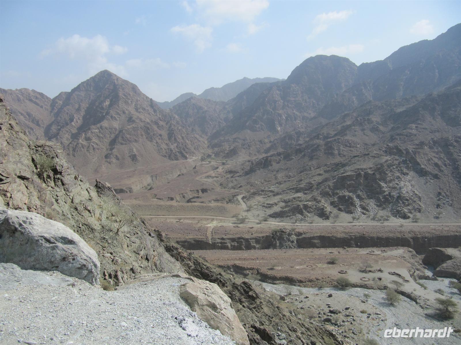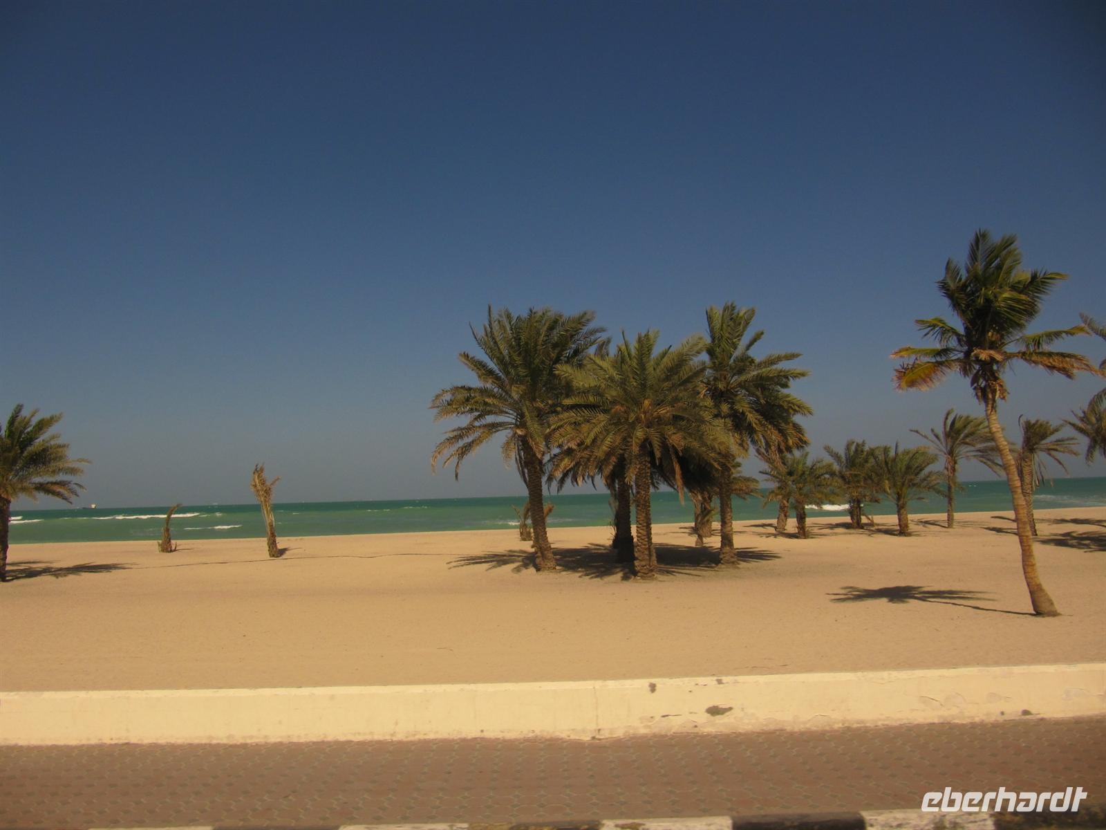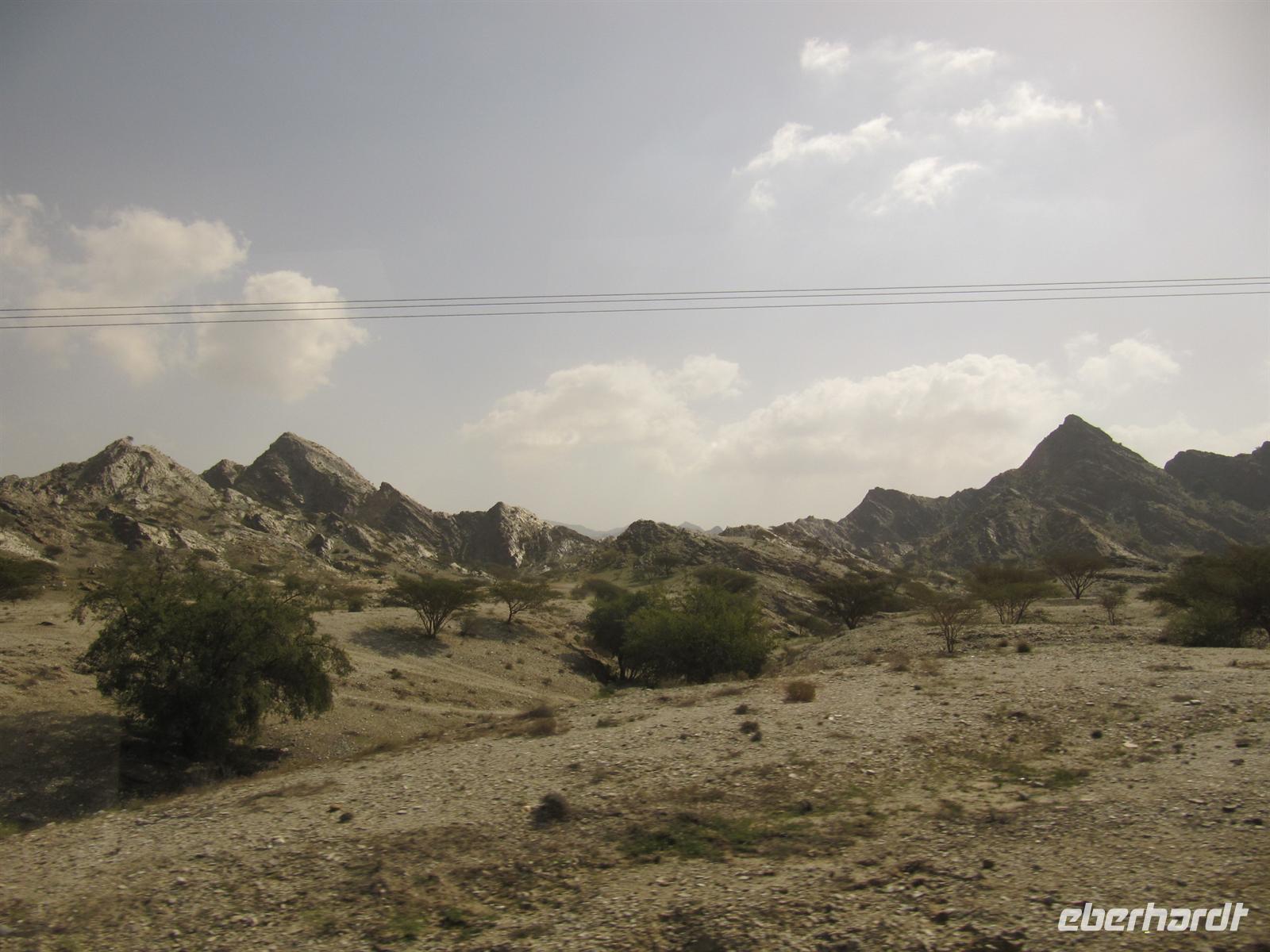 Heute führte uns die Reise an den Golf von Oman. Zunächst fuhren wir nochmals durch Sharjah und dann ging es wieder durch die Wüste. Nun erreichten wir das Hadjagebirge. Durch die wilde Berglandschaft brachte uns der Bus Richtung Osten. Wir sahen mehrere Wadis, ausgetrocknete