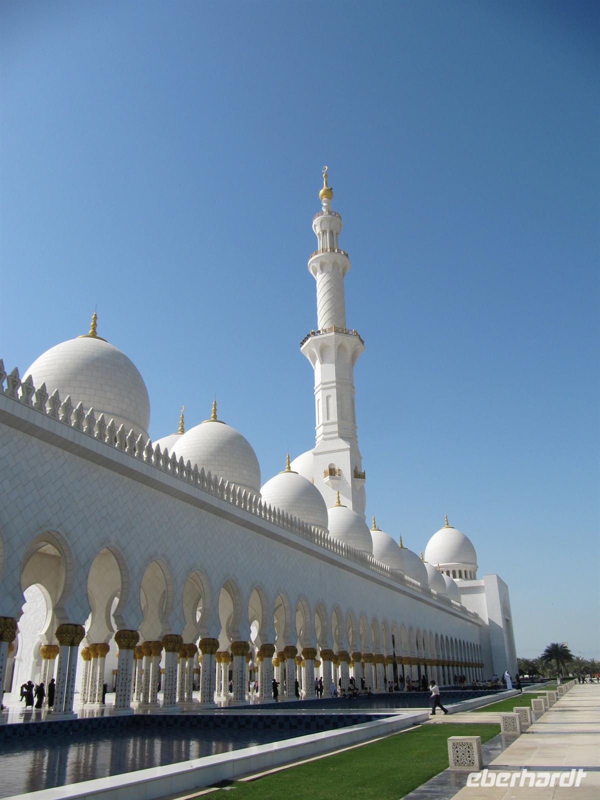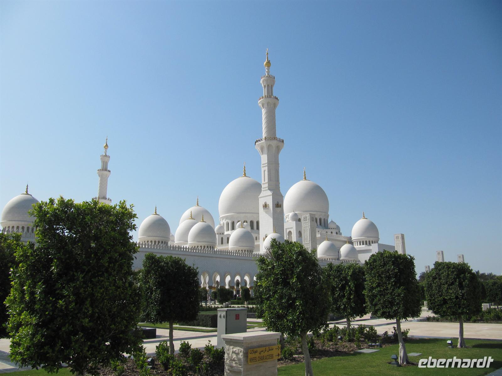 Wir entdeckten das größte Emirat, Abu Dhabi. Zunächst fuhren wir über die Autobahn durch die Wüste. In Abu Dhabi besuchten wir die Große Moschee. Zuerst ließen wir Damen uns mit einer