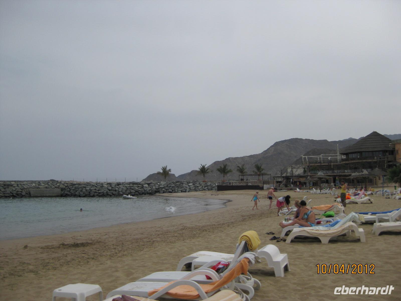 Bald darauf erreichten wir das Strandhotel „Sandy Beach“, welches direkt am Meer gelegen ist. Bereits von weiten sahen wir das glitzernde Meer näher rücken. Im Hotel genossen wir zunächst ein schmackhaftes Mittagessen. Im Anschluss gingen wir im Meer baden und entspannten uns auf den Strandliegen, welche mit den Handtüchern kostenlos genutzt werden konnten. Ausgeruht begaben wir uns am Nachmittag auf die Rückreise. Auf der Rückfahrt machten wir noch kurz Halt an der ältesten Moschee der Emirate. Gegen Abend erreichten wir wieder unser Hotel, wo bereits die Gäste, welche nicht am Ausflug teilnahmen warteten und wir gemeinsam zu Abend aßen.