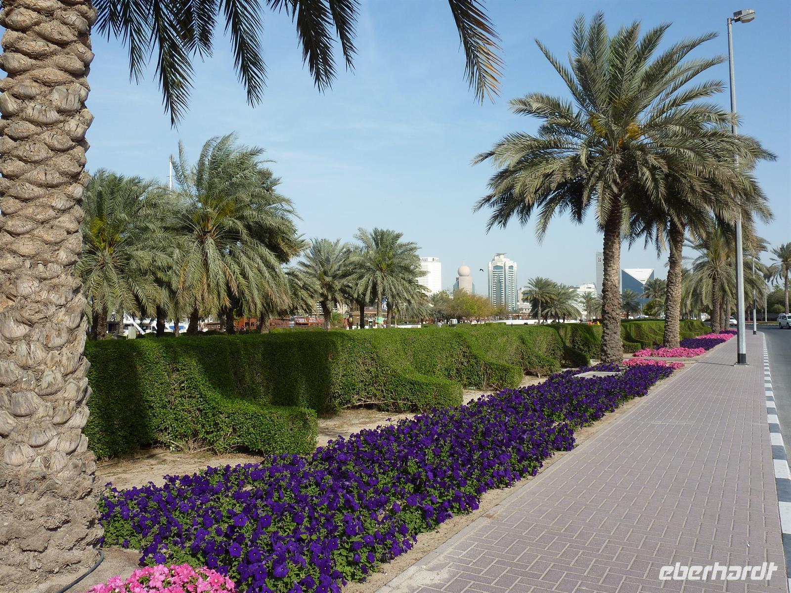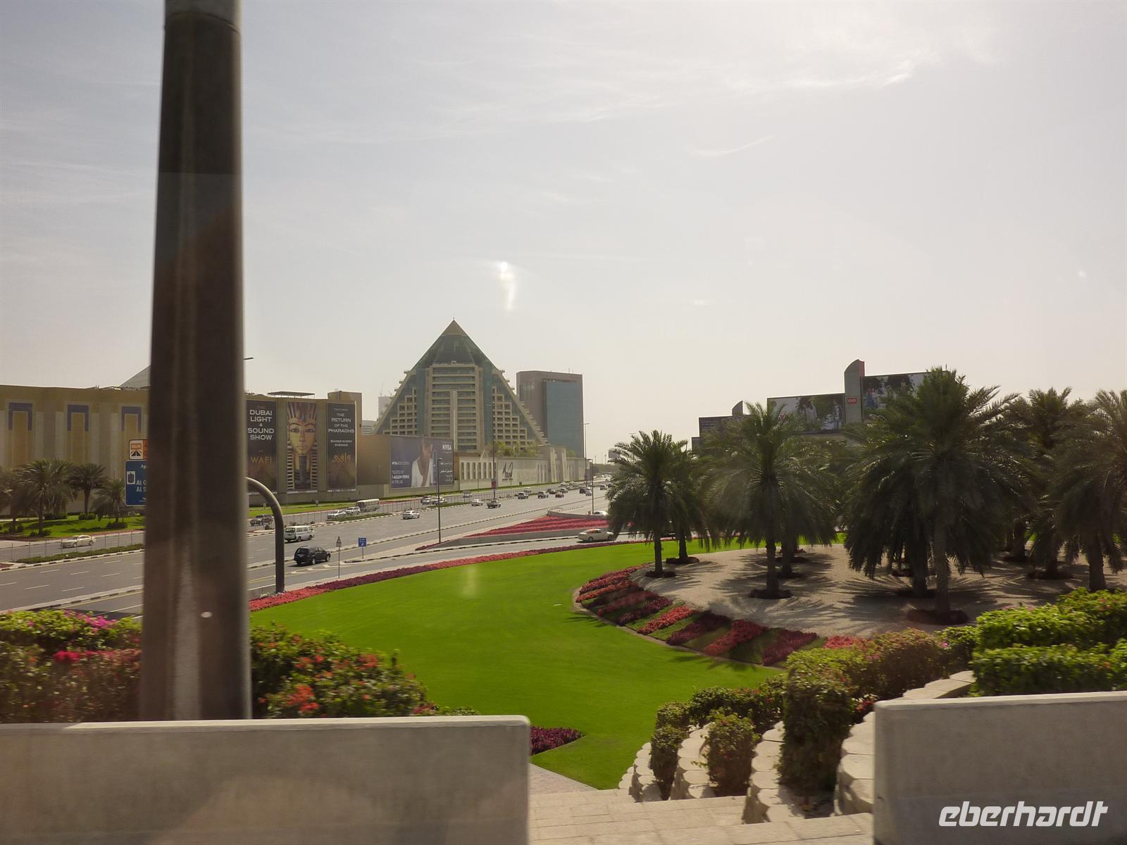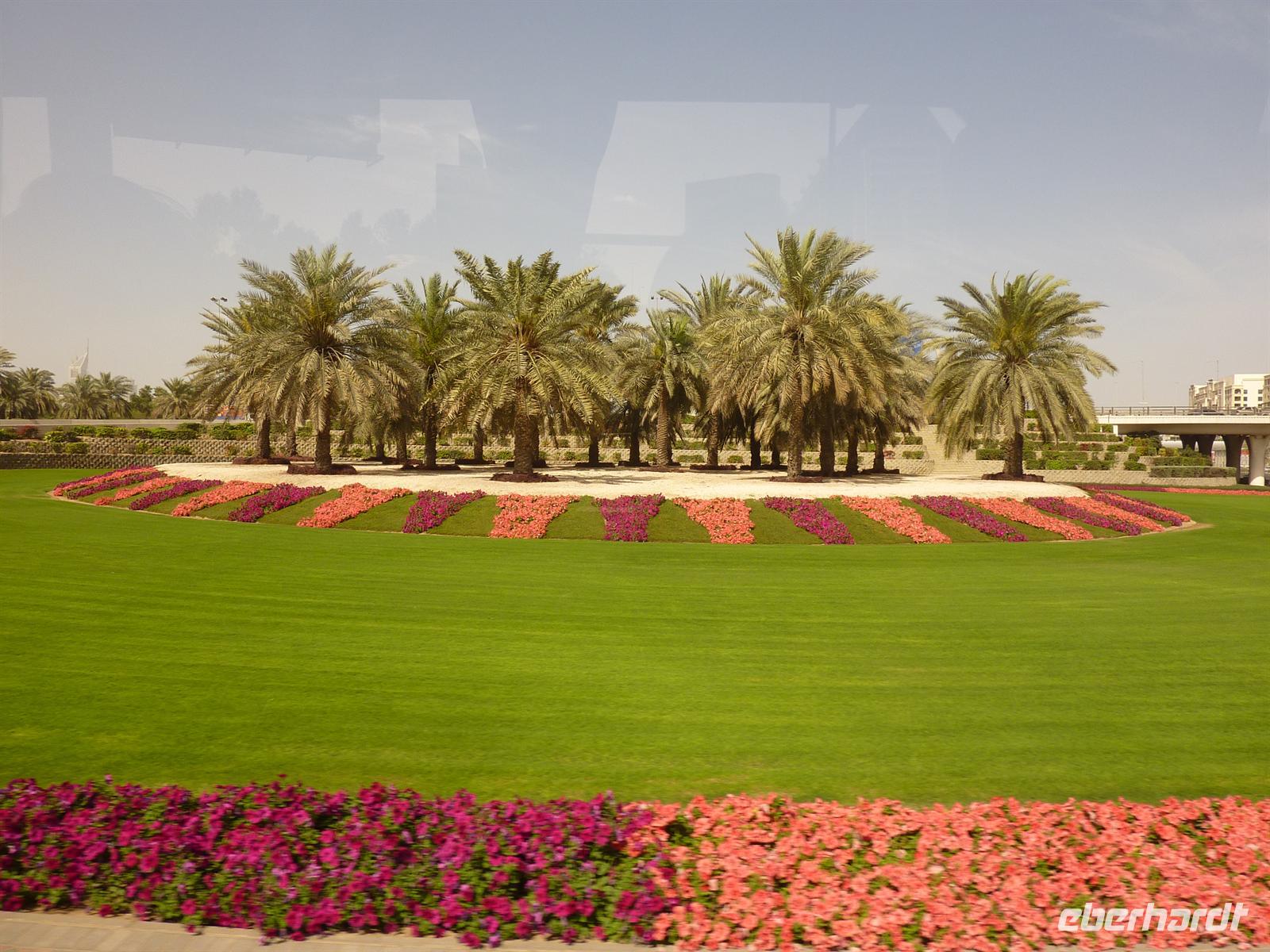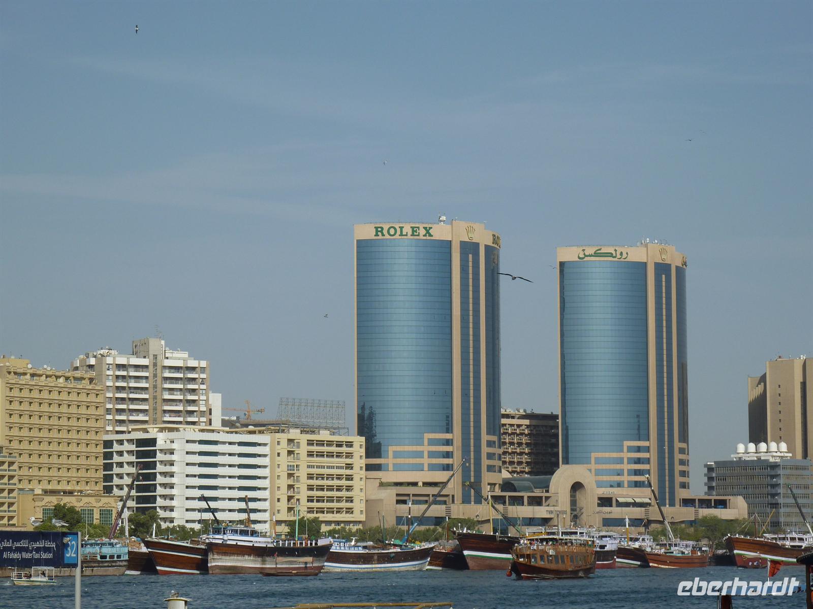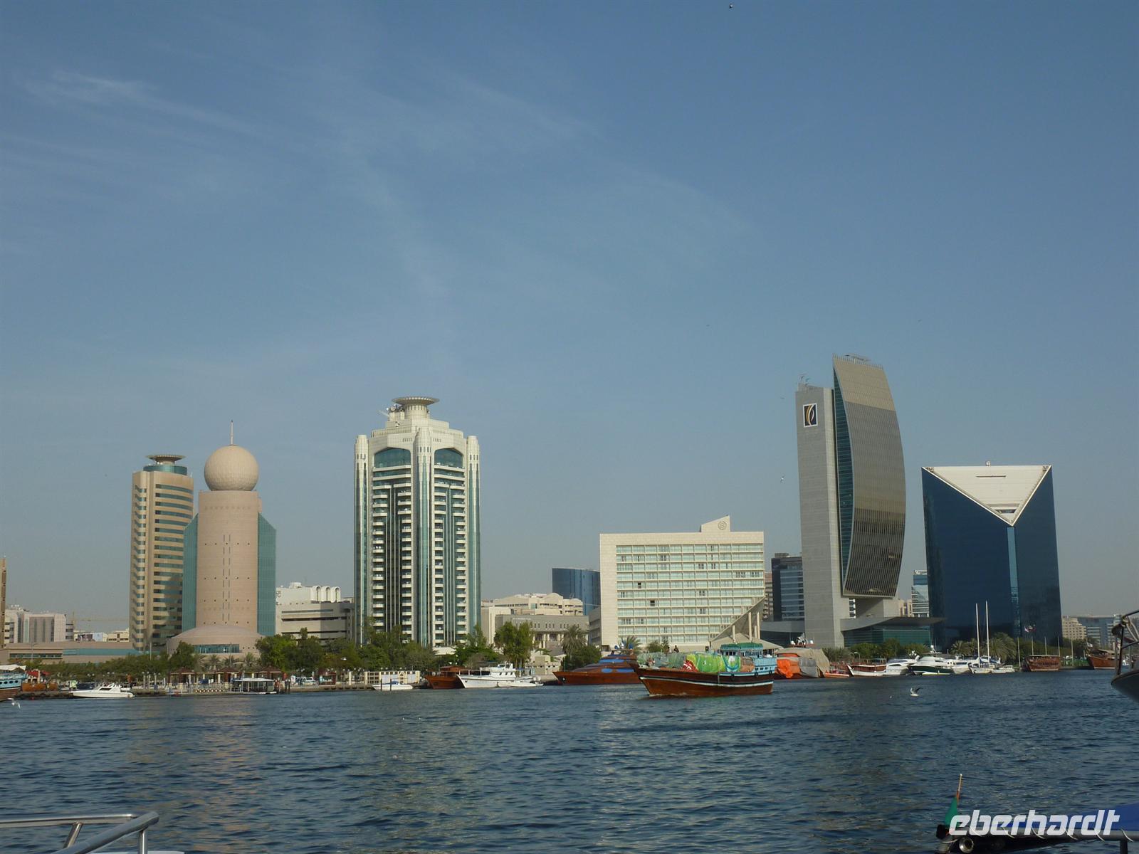 Nach einer etwas kurzen Nacht und noch etwas verschlafen, startete der Tag aber bei super sonnigem und heißem Wetter. Schnell war die Müdigkeit vergessen. Martina begrüßte uns und wir gingen zum Bus. Wir machten eine Orientierungsfahrt durch das riesige Dubai, um sich passend auf die kommenden Tage einzustimmen. Wir lernten vor allem das moderne Dubai kennen, das heißt fuhren durch die Stadtteile Burj Dubai und Jumeirah. Als Erstes fuhren wir auf die legendäre, künstlich angelegte Palmeninsel. Alles sah sehr nobel aus, geschmackvoll angelegte Vorgärten, luxuriöse Villen und ringsherum viiiiel Wasser. Hier kann man sich wohlfühlen. Es ging weiter bis zur Spitze der Palme, wo wir das Luxushotel „Atlantis“ sehen konnten. Ein sehr imposanter und eindrucksvoller Bau, die Kameras liefen auf Hochtouren, jeder wollte das schönste Foto knipsen. Dann fuhren wir zum nächsten Höhepunkt, den in wenigen Tagen viele Gäste auch von innen kennenlernen dürfen: das Burj al Arab. Ein 7-Sterne-Hotel der besonderen Art, gebaut wie ein Segel fügt es sich perfekt ins Gesamtbild ein. Einige aus meiner Gruppe taruten sich, und erfrischten sich zumindestens mit den Füßen im Wasser. Die Stimmung war sehr gut und gut gelaunt machten wir uns auf den Weg zur Dubai Marina, einem Stadtteil mit einigen Yachthäfen und besonders beeindruckenden Hochhäusern. Martina, die ursprünglich aus Frankfurt kommt, zog den Vergleich zum Frankfurter Mainhatten. Den Abschluss der Tour bildete der Besuch in einer der grüßten Einkaufszentren, der „Mall of Emirates“. Hier hatten wir etwas Freizeit, um entweder etwas zu essen oder den Glanz und Gloria in den Geschäften zu beobachten. Nach der Rückkehr im Hotel hatten wir Freizeit, die wir mit Spaziergängen zum Creek oder Faulenzen am Hotel-Pool verbrachten. Zum Abendessen fuhren wir circa eine viertel Stunde, zu den sogenannten Twin Towers, um im Daniel Restaurant zu Abend zu essen.