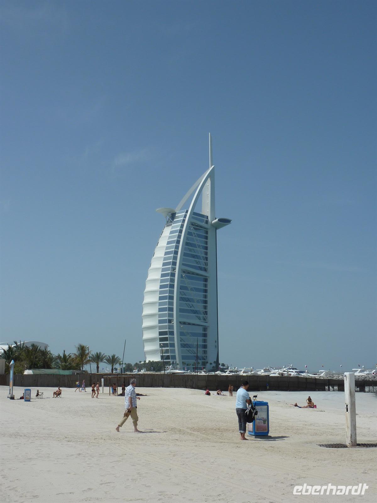 Heute ist der erste freie Tag für meine Gäste. Alle konnten etwas länger schlafen, noch ausgiebiger frühstücken und die letzten Tage noch einmal Revue passieren lassen. Viele nutzten die Gelegenheit mit mir am Morgen zum Jumeirah Beach zu fahren. Unser Hotel bietet dafür einen täglichen Transfer an, den wir dankend in Anspruch nahmen. Nach einer halben Stunde kamen wir am Badeparadies an. Nun strömten alle in verschiedene Richtungen, um sich in der Sonne etwas zu bräunen und natürlich das kühle Nass zu genießen.