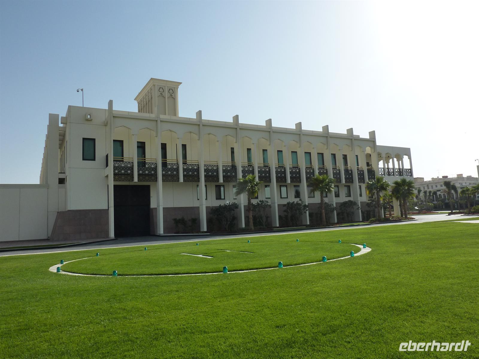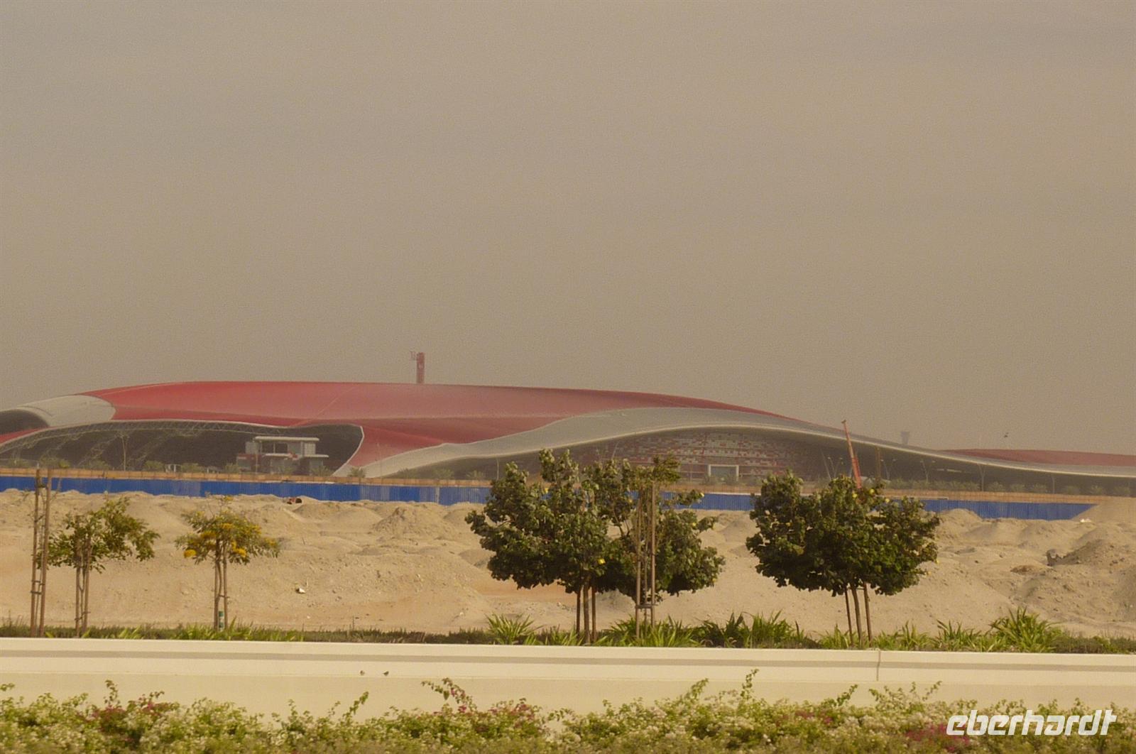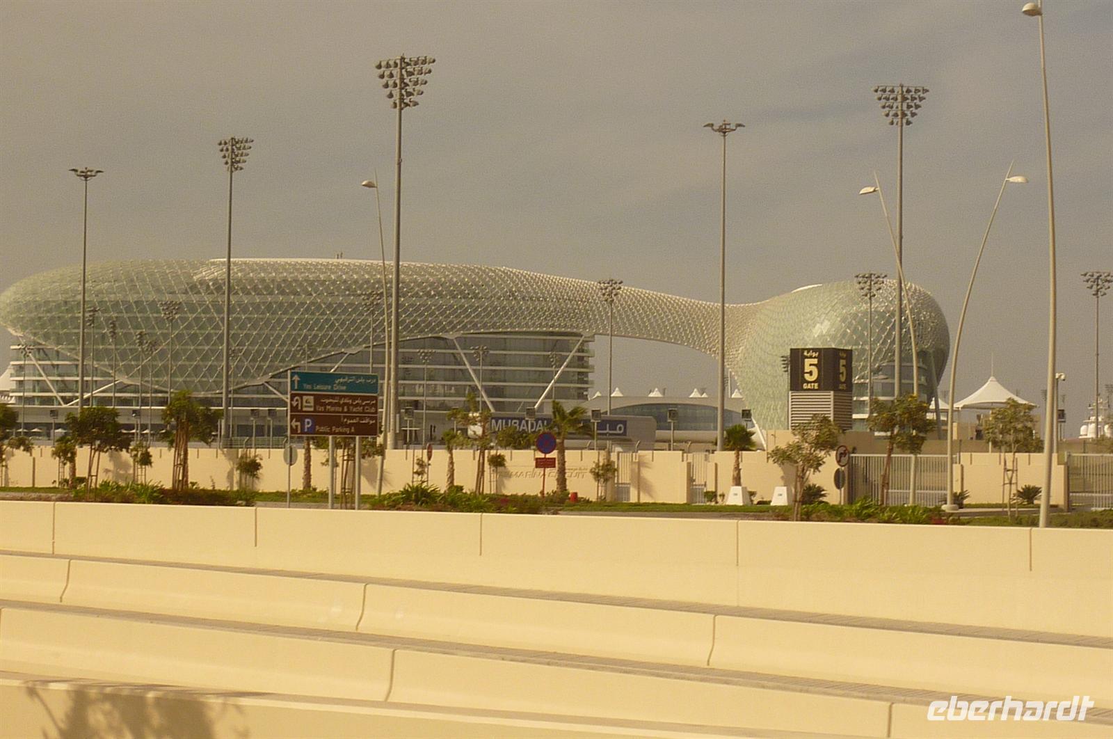 Anschließend trafen wir uns wieder am Bus und wie immer waren alle superpünktlich. Dann reisten wir weiter über die Corniche, also die Küstenstrtaße, zum Yachthafen und schließlich unserem nächsten Stopp, der Heritage Village. Hier legten wir eine kurze Pause ein, denn von hier bot sich uns ein super Blick auf die Skyline von Abu Dhabi und wer einen guten Zoom bei seiner Kamera hatte, bekam auch das 6-Sterne Hotel Emirates Palace super drauf. Dieses Luxushotel verzauberte alle durch seine majestätische Eleganz, das glänzende Gold und die malerischen Wasserspiele vor dem imposanten Eingang. Nachdem wir im Hotel die Ausstellung der geplanten Projekte bis 2020 gesehen hatten, waren wir zur Teestunde geladen. Es gab Tee oder Kaffee und jede Menge kleiner, leckerer Häppchen. Von herzhaft bis zuckersüß und mit Blattgold veredelt war alles dabei. Danach fühlten wir uns 20 Kilo schwerer. Zum Abschluss nutzten wir die eindrucksvolle Kulisse für ein weiteres, gemeinsames Gruppenfoto. Wieder hieß es „Läääääächeln!“. Nun traten wir die Reise zurück nach Dubai an. Aber wir machten natürlich eine Runde zur Yasi Island und konnten die weltbekannte Formel 1 Rennstrecke zumindest von außen bestaunen. Sehr beeindruckend, wie alle fanden. Mit vielen neuen Eindrücken ging es zurück in unser Hotel. Wir kamen zum Glück gut durch den Verkehr, so dass Jeder sogar bis zum Abendessen noch etwas Zeit für sich hatte. Ein langer Tag geht zu Ende, aber da morgen ein freier Tag für alle ist, können wir die Erholung auf morgen verschieben.