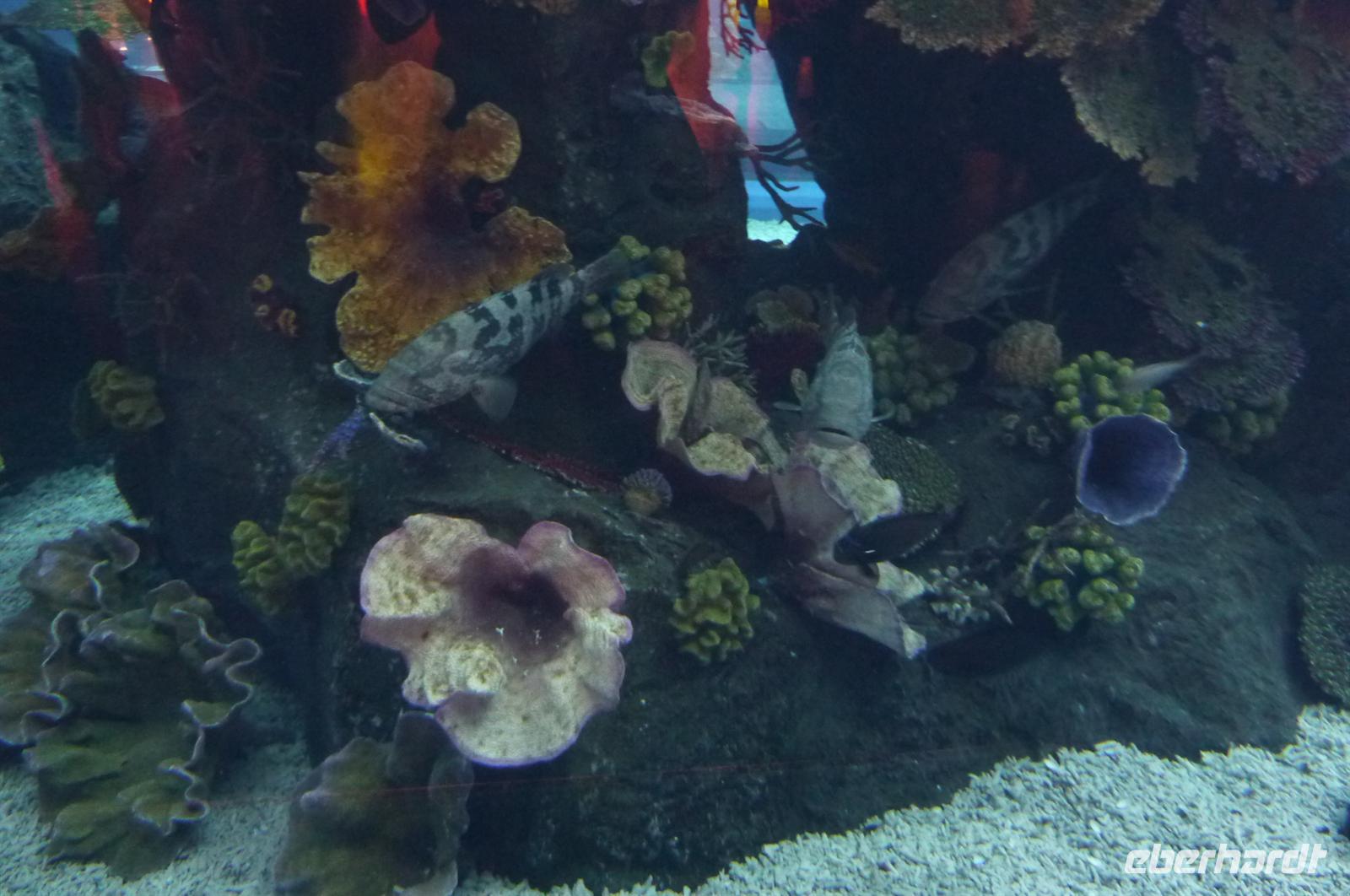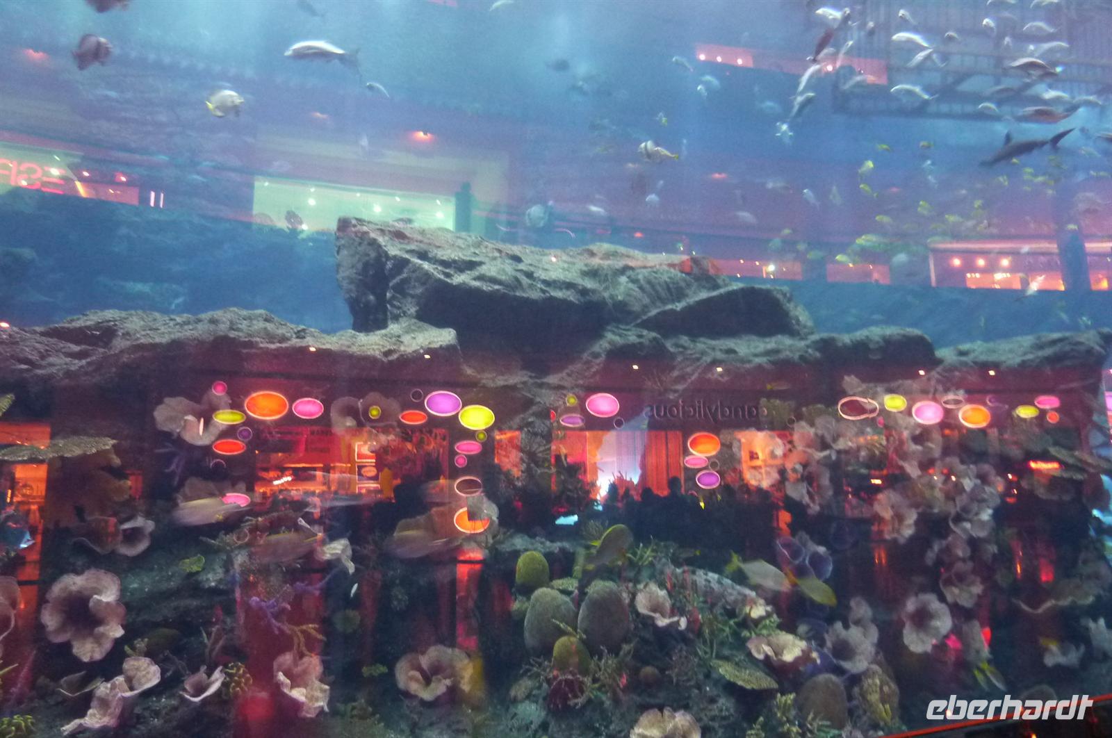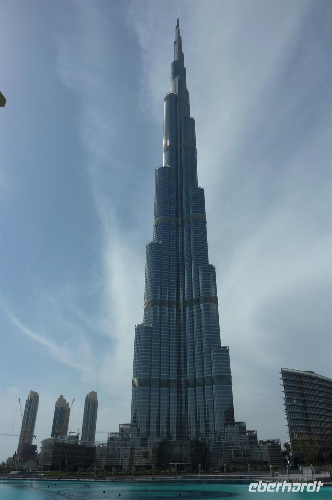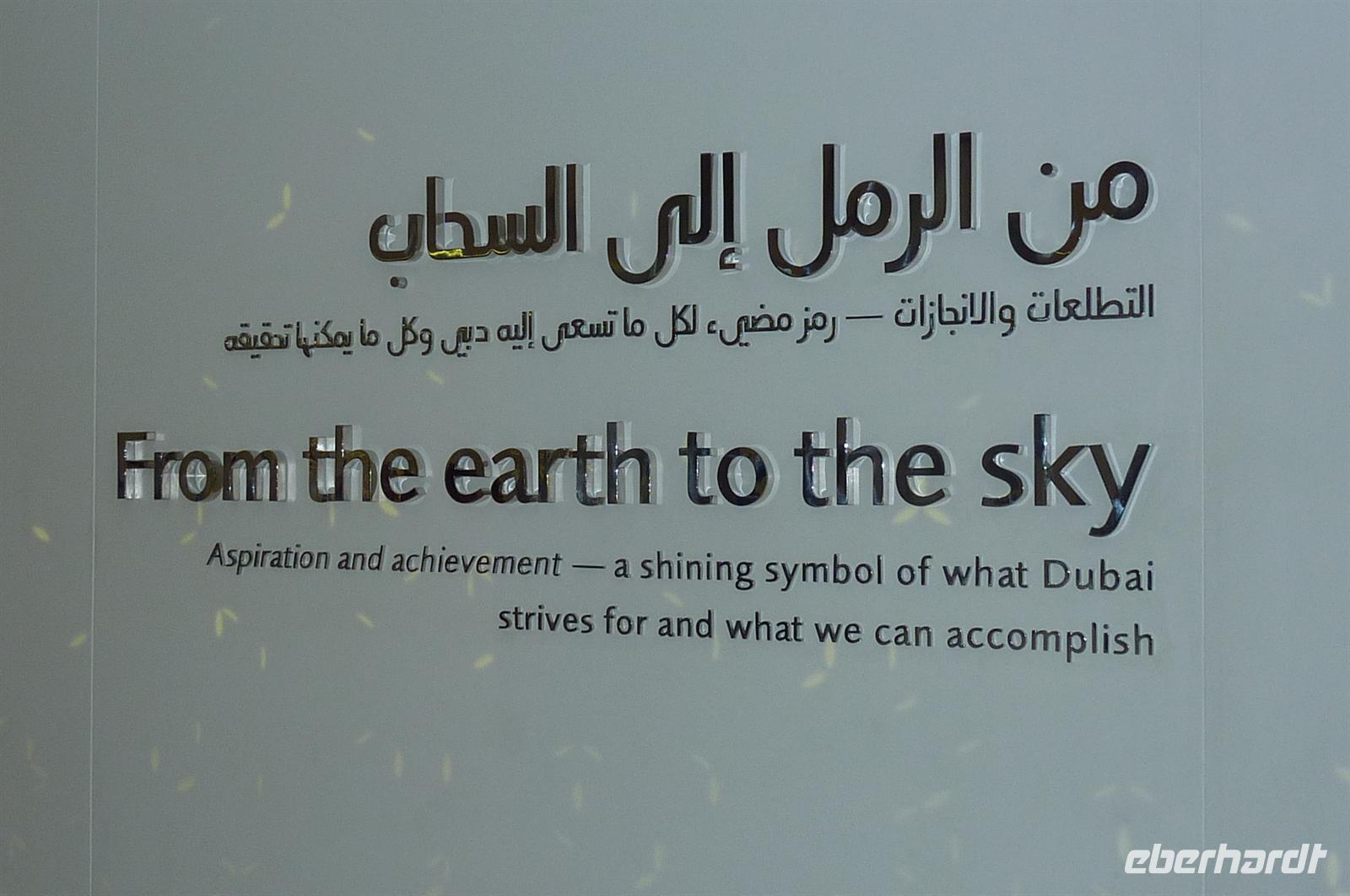 Gut gestärkt von einem leckeren Frühstück brachen wir gegen zehn auf und schlenderten durch die Gassen, die Souks waren geöffnet und jeder Händler wollte seine Waren an den Mann bringen. Es war noch wenig los in den Straßen, so dass alle gut beieinander blieben und trotzdem jeder etwas schauen konnte. Wir liefen Richtung Dubai Creek, um mit einer typischen Dhau zum anderen Stadtteil überzusetzen. Eine etwas wackelige Angelegenheit, aber der Blick ringsherum war sehr schön. Nach einer kurzen Fahrt stiegen wir aus und waren auch schon mitten im Gewürz-Souk. Martina erklärte uns einige landestypische Gewürze und gab uns hilfreiche Tipps zum Einkaufen auf den Souks. Handeln ist hier die Devise. Wir bummelten durch die Gassen, es duftete nach Weihrauch und hunderten von Gewürzen. Typisch arabisch eben. Weiter ging es in Richtung Gold Souk. Ein paar meiner Gäste hatten sich schon förmlich Einkaufszettel gemacht, was unbedingt besorgt werden muss für die Daheimgebliebenen. Nach über einer Stunde Zeit, war jeder zufrieden und glücklich - auch die nichts gekauft haben. Wir liefen noch ein paar Meter und stiegen in den Bus, der bereits auf uns wartete. Die Fahrt ging nun weiter zur Dubai Mall. Nachdem etwas Zeit war um zu essen oder einfach nur durch die Mall zu spazieren, trafen wir uns, um ins Dubai Aquarium zu gehen. Man fühlte sich wie unter Wasser, überall sah man die kuriosesten Fischarten. Auf einer Hängebrücke fühlte man sich dann nicht mehr wie in Dubai, sondern wir im Dschungel - mitten in der Wüste. Doch nun erwartete uns der Höhepunkt des Tages: die Auffahrt in den 828. hohen und damit höchsten Turm der Welt, dem Burj Khalifa.