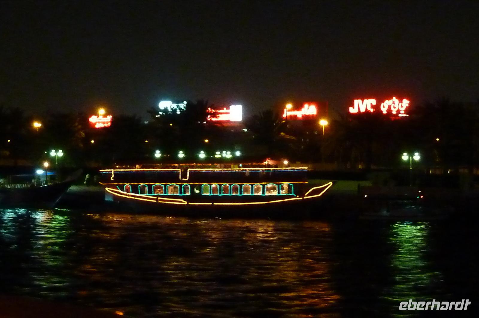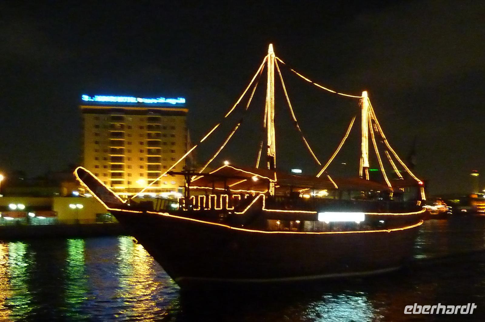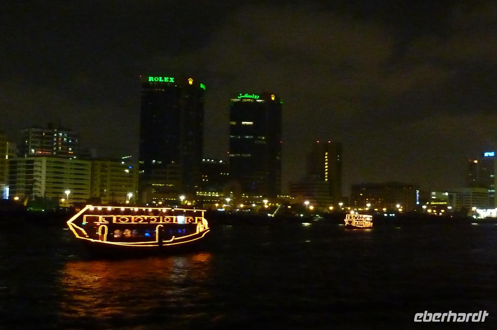 Am Abend boten wir eine Creek-Fahrt mit der Dhau an, 7 Personen meiner Gruppe nahmen dies an und erlebten Dubai bei Nacht. Wir bekamen wieder leckeres Buffet und konnten den frischen Wind an Deck bei stimmungsvoller Musik genießen.