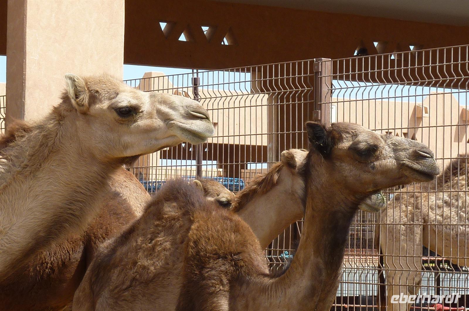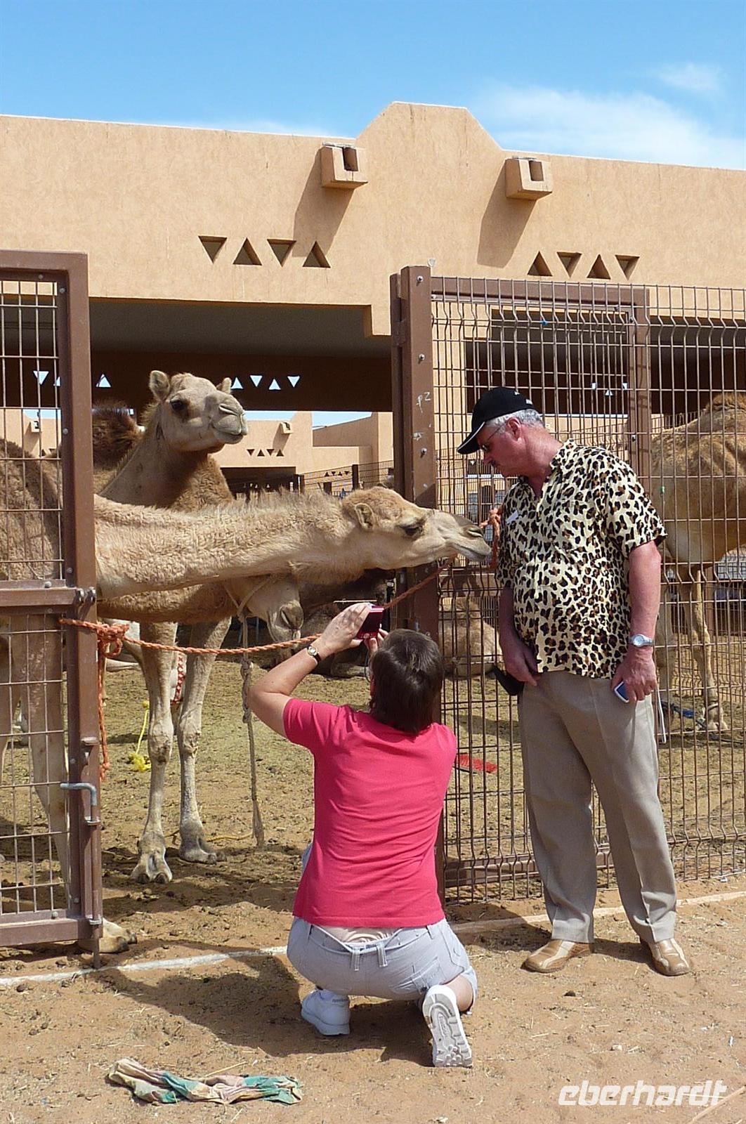 Wieder kamen 13 Personen mit Martina und mir mit und wir machten uns früh auf den Weg nach Al Ain. Die Stadt gehört zum Emirat Abu Dhabi und ein Gegensatz zu Dubai. Viele palmenartige Oasen, viele Grünflächen in der Stadt und vor allem keine Hochhäuser, sondern nur flache Bauten im arabischen Stil. Als ersten besuchten wir das Al Ain Palace Museum, eine sehr schöne Anlage mit geschmackvoll angelegten Grünflächen und eine Lounge, die zum Verweilen einlädt. Anschließend fuhren wir weiter zum Al Ain National Museum, in dem die letzten Jahrzehnte des Lebens in der Wüste dargestellt sind. Jeder hatte individuell Zeit zum Besichtigen. Die Zeit verging wie im Fluge und es war schon Mittag geworden. Langsam kündige der Magen sein Hungergefühl an, also fuhren wir in die Bawadi Mall, um eine Kleinigkeit zu essen und etwas durch die Geschäfte zu schlendern. In unmittelbare Nähe der Mall befindet sich seit Neustem der Kamelmarkt, den wir vor der Heimfahrt besuchten. Es war wenig los, somit hatten wir genug Platz die Kamele und ihre Babies zu beobachten und zu fotografieren. Nun ging es wieder Richtung Hotel. Bis zum Abendessen war es nun noch viel Zeit. Nach kurzer Suche fand ich fast die komplette Gruppe am Pool, um die Wartezeit bei einem Schläfchen oder einer Runde Schwimmen zu überbrücken.