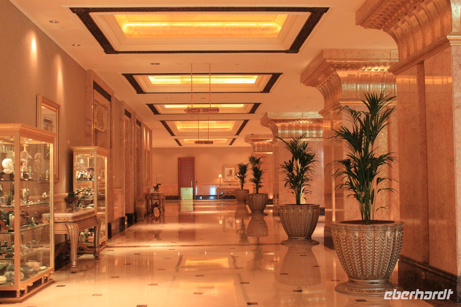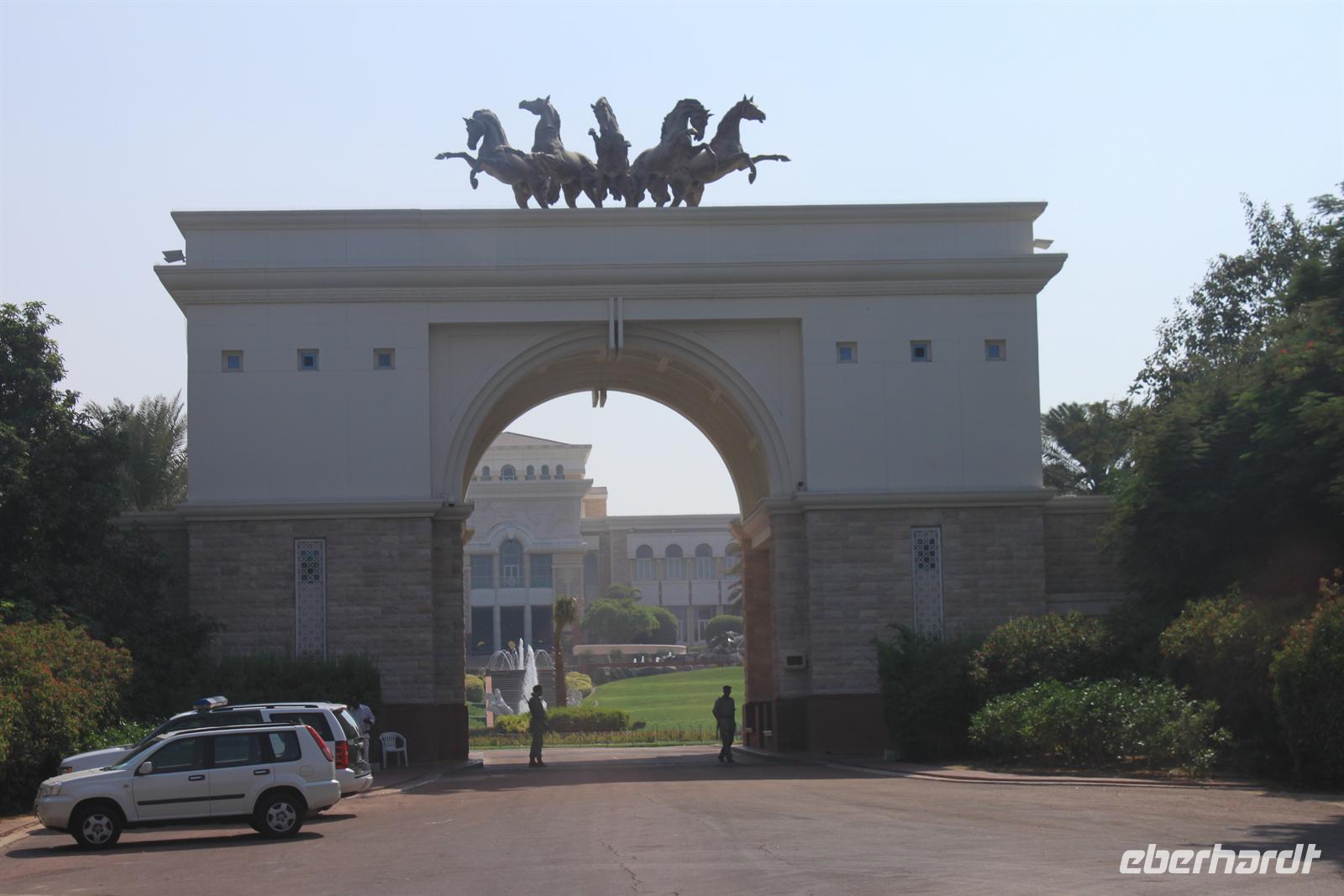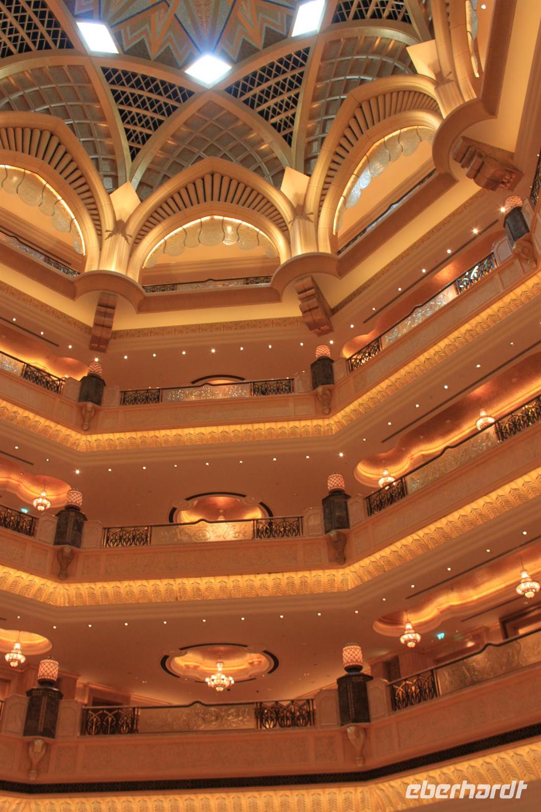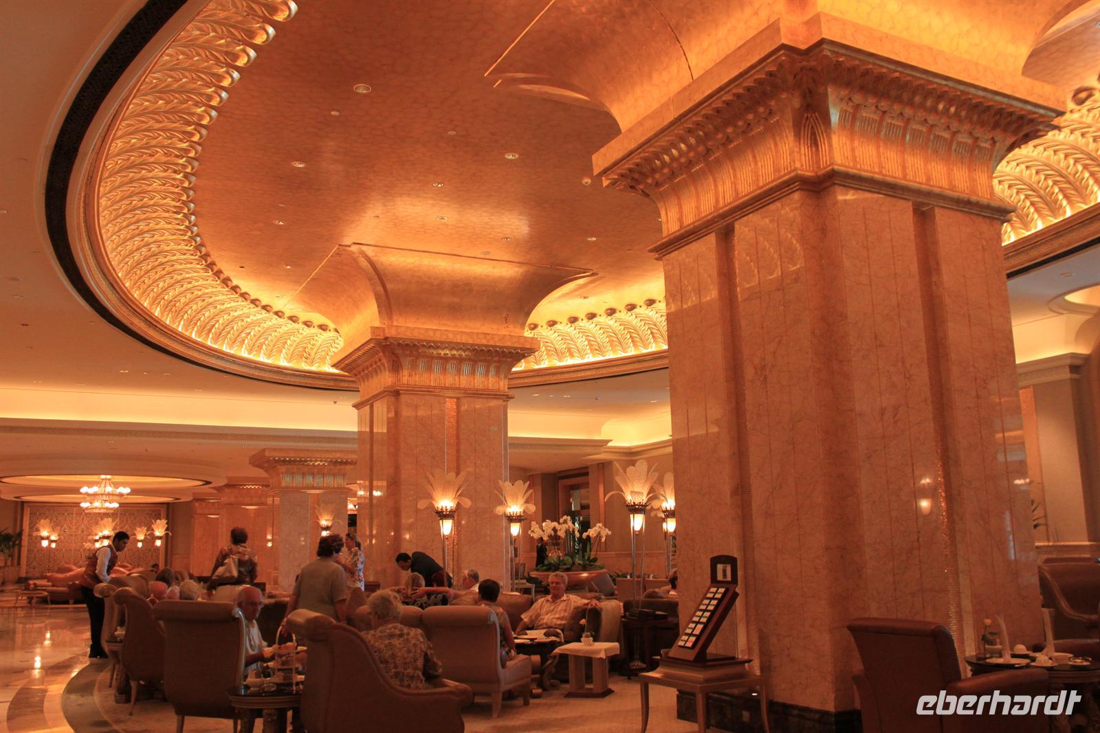Mein persönliches Highlight ist die Tea-Time im Emirates Palace-Hotel in Abu Dhabi. Nach langer Fahrt nach Abu Dhabi besichtigen wir zunächst die Große Moschee - die größte außerhalb Saudi-Arabiens - besonders eindrucksvoll durch das bestechende Weiß des Marmors. Im Anschluss folgte eine kleine Rundfahrt über die Insel und dann endlich das 7-Sterne-Hotel, welches das Auge mit sanften gold-braunen Farbtönen verwöhnt. Hier fühle ich mich meist sofort wohl. Der Kuchen, die kleinen Häppchen und der Golddekor… hier passt einfach alles zusammen.