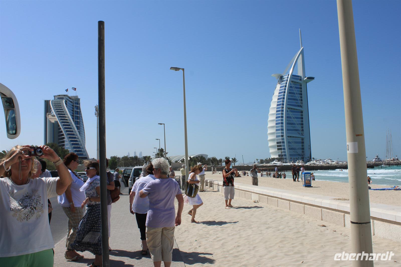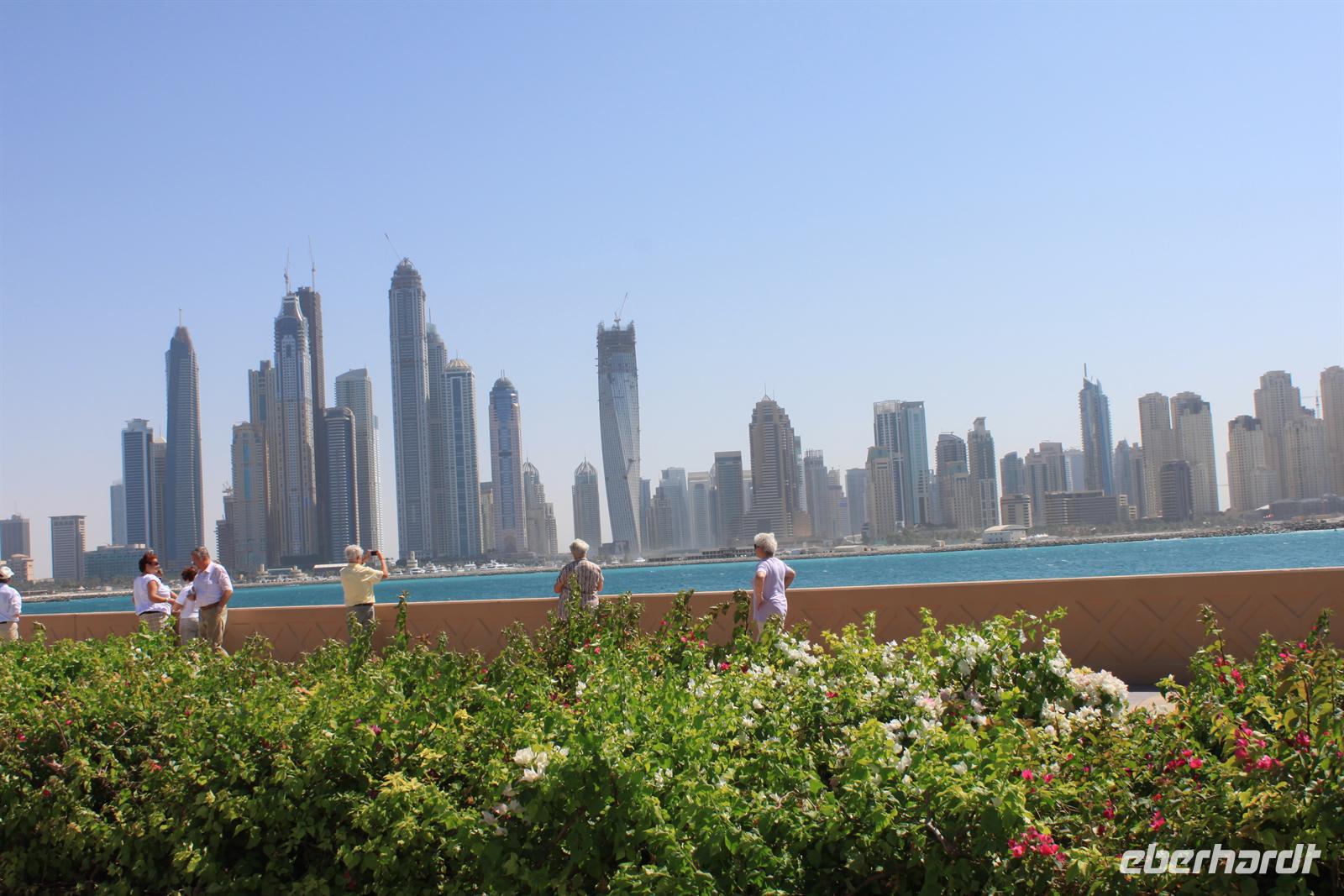 Während der gesamten Dubai-Reise haben wir noch das Moderne Dubai gesehen, allein die Sheik Zayed Road überwältigt mit ihren unendlich scheinenden Hochaus-Reihen. Angesichts dessen wirkt die Dubai Marina beinahe schon heimelig mit ihrem Wasserbecken. Für viele meiner Gäste war der Fotostopp am Atlantishotel ein großes Erlebnis - auch wenn ich gestehen muss, dass ich die Wohnungen auf der „Großen Palme“ weniger reizvoll finde.
