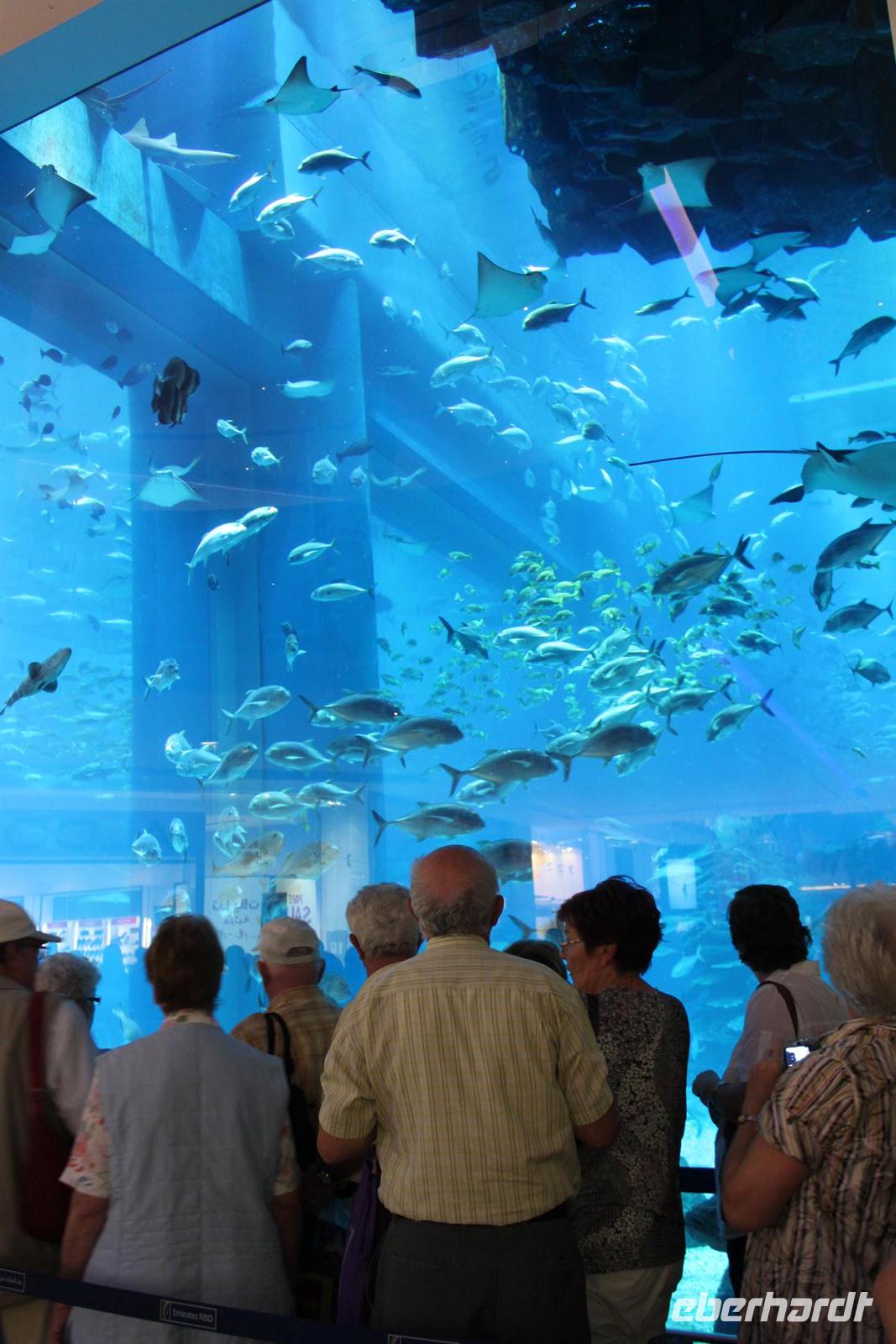 Unser Aufenthalt in der Dubai Mall, der größten Mall überhaupt, war durch die Auffahrt auf den Burj Khalifa und den Besuch des Aquariums sehr abwechslungsreich - immerhin sind direkt über uns die Haie und Stachelrochen geschwommen und sogar Pinguine gab es!