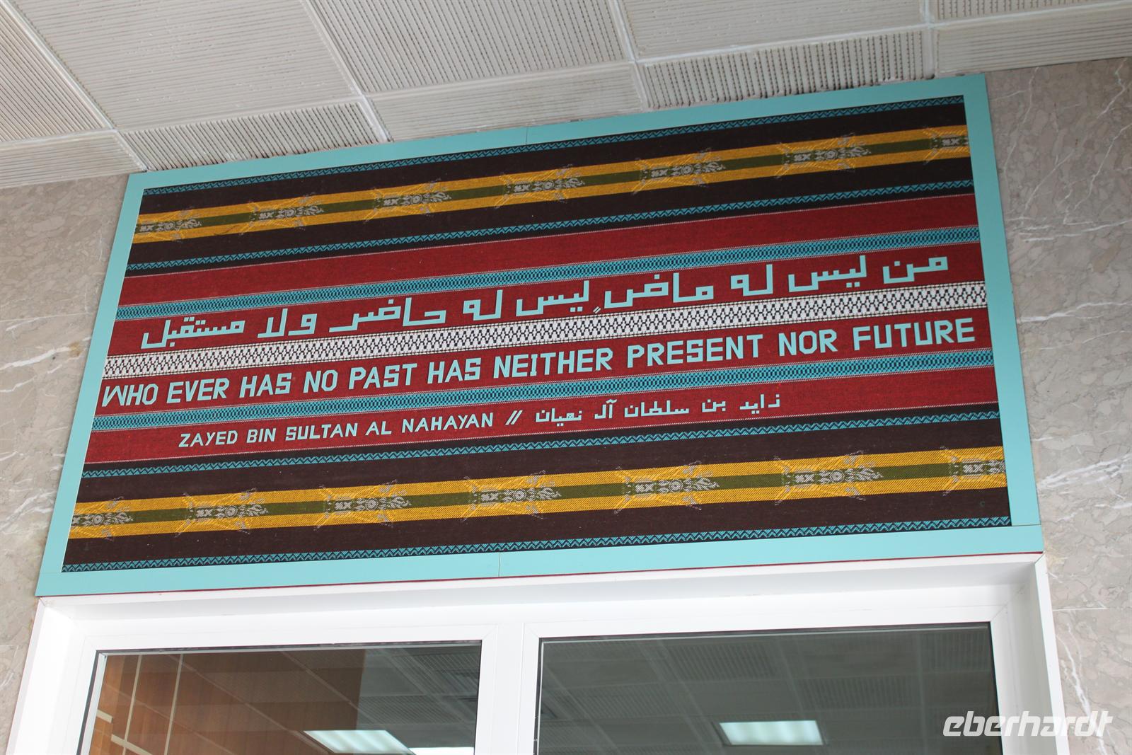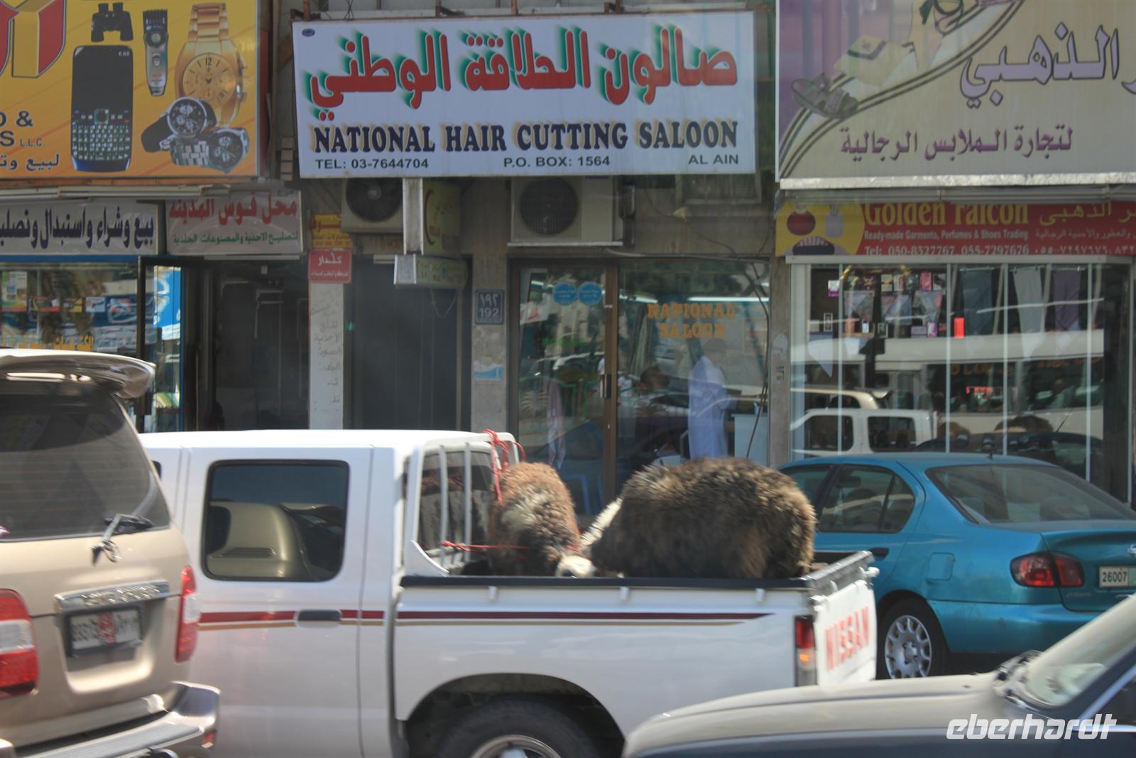 Ganz anderes dahingegen ist der Ausflug in den Süden nach Al Ain. Wir besichtigten das Museum der Oasenstadt und die angrenzende alte Oase. Schon das Bild der Stadt wirkt völlig anders: keine Hochhäuser, Schafe auf der Laderfläche von Lieferwagen und bedeutend mehr verschleierte Frauen. Das Leben scheint hier weniger stressig In der Mall für die Mittagspause haben viele von uns die Gelegenheit genutzt einfach mal zu sitzen und die Menschen zu beobachten! Eine Tätigkeit, der ich in den Emiraten nur selten vorgehe - stets habe ich das Gefühl, dass alles an mir vorbeirast. Hier in Al Ain, stehe ich auf dem Markt Kopf an Kopf mit Schafen und Kamelen und spüre einen Hauch des ehemaligen Lebens.