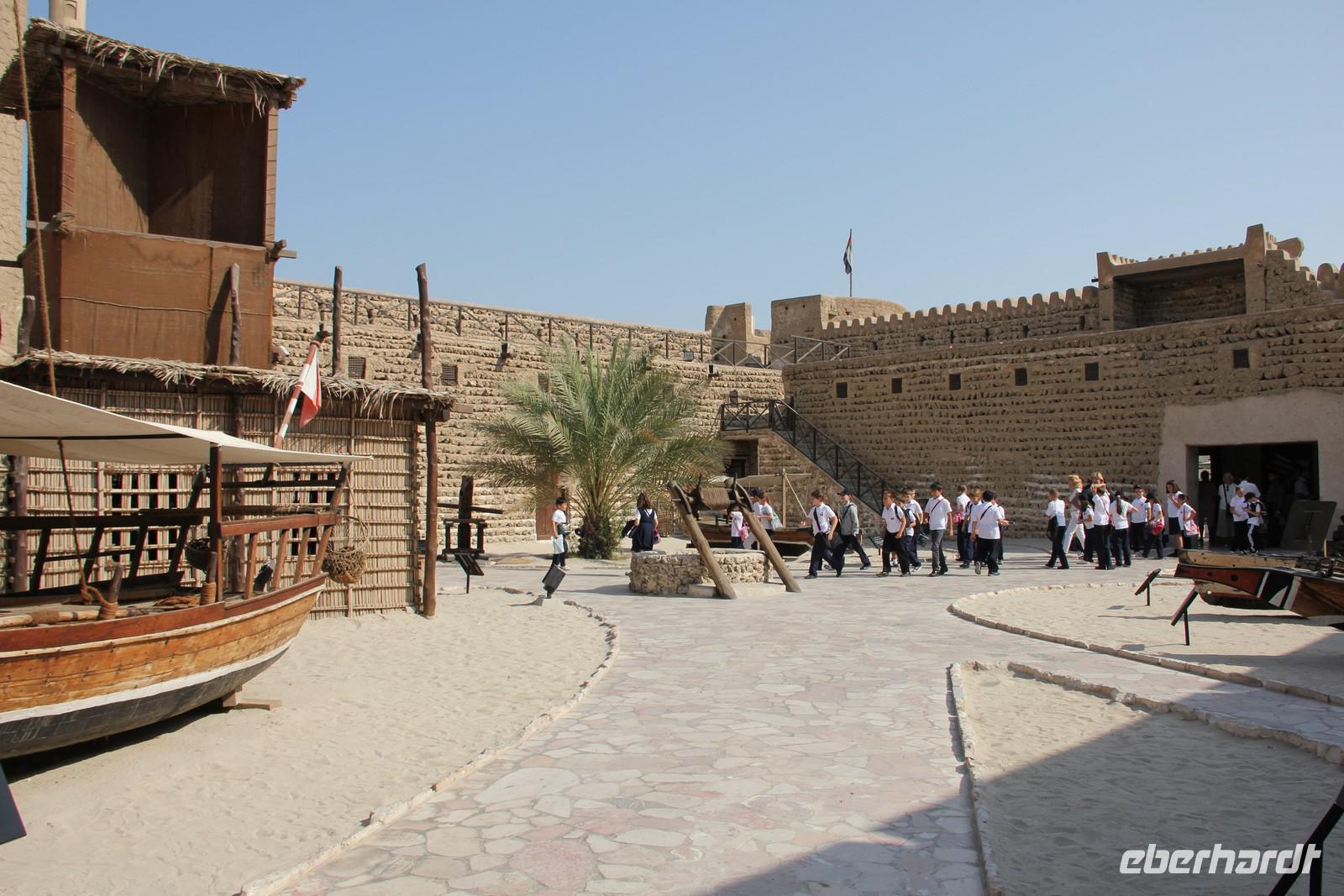 Anschließend ging es weiter auf den Dattelmarkt, wo es Datteln in allen möglichen Varianten zu kaufen und verköstigen gab. Unsere Fahrt ging weiter zum Heritage Village, von welchem man einen wunderbaren Blick auf die Skyline von Abu Dhabi hat.