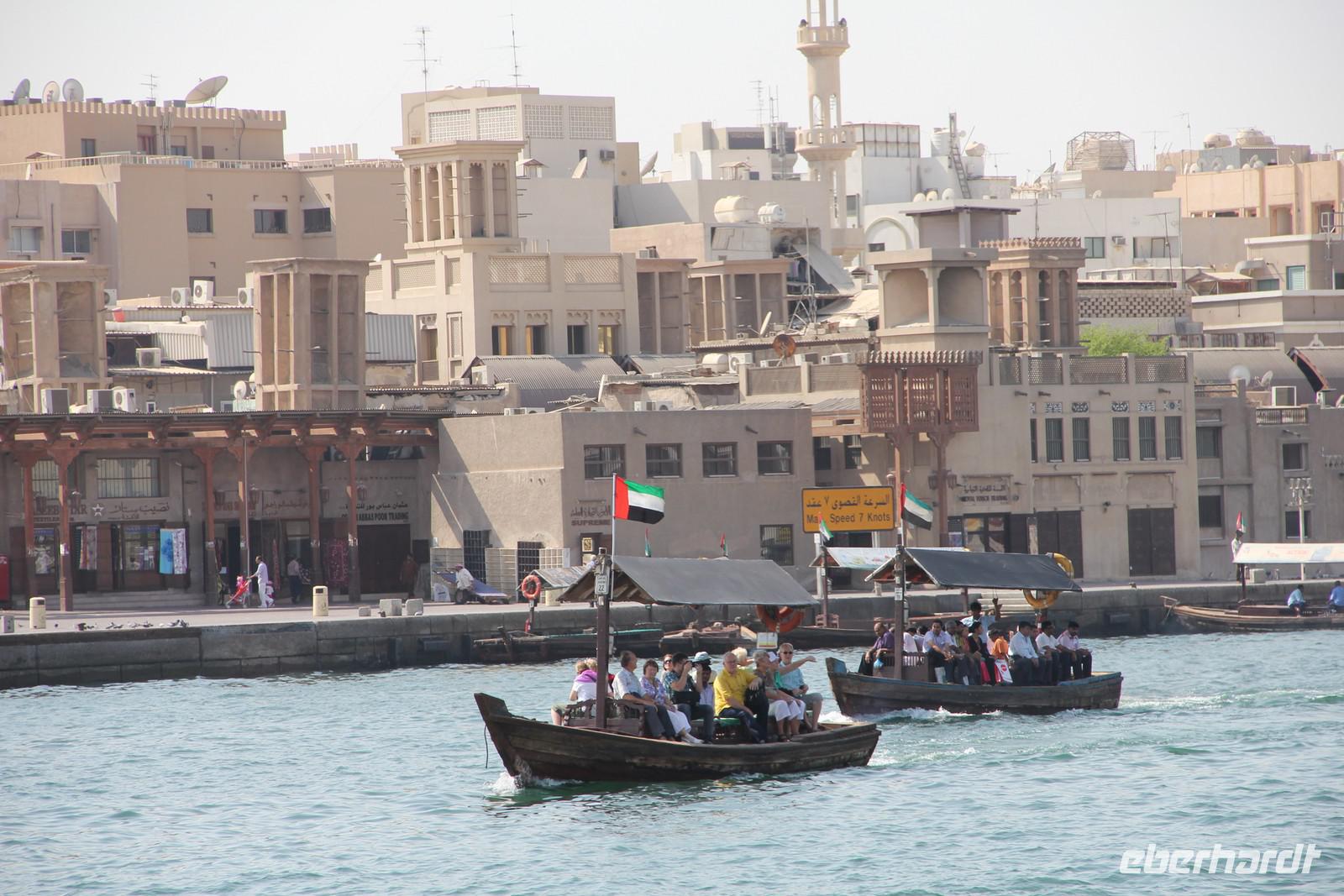Diesen Tag begannen wir mit einem Besuch im Dubai Museum. Gemeinsam mit unserer örtlichen Reiseleiterin Anja besichtigten wir das unterirdische Museum und lernten so einiges über die Entstehung der Stadt. Später ging es über den Stoffmarkt weiter zum Dubai Creek, einem natürlichen Meeresarm des Persischen Golfs. Dort erwarteten und bereits zwei Abra Boote, Wassertaxis die in Dubai zum alltäglichen Leben gehören. Angekommen auf der anderen Creek-Seite besichtigten wir den Gewürz Souk sowie den Gold Souk, wo wir uns im Handeln beweisen konnten. Vanilleschoten, Kamelmilchschokolade, Gold in allen Varianten und Formen, verschiedene Pashminas ... Zum Mittagessen fuhren wir dann wieder ins Hotel zurück, bevor es am frühen Abend dann auf zur Wüstensafari ging.