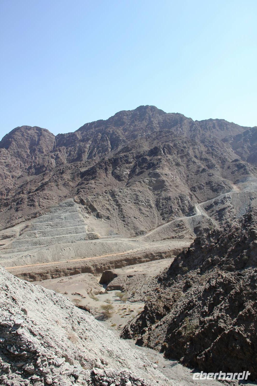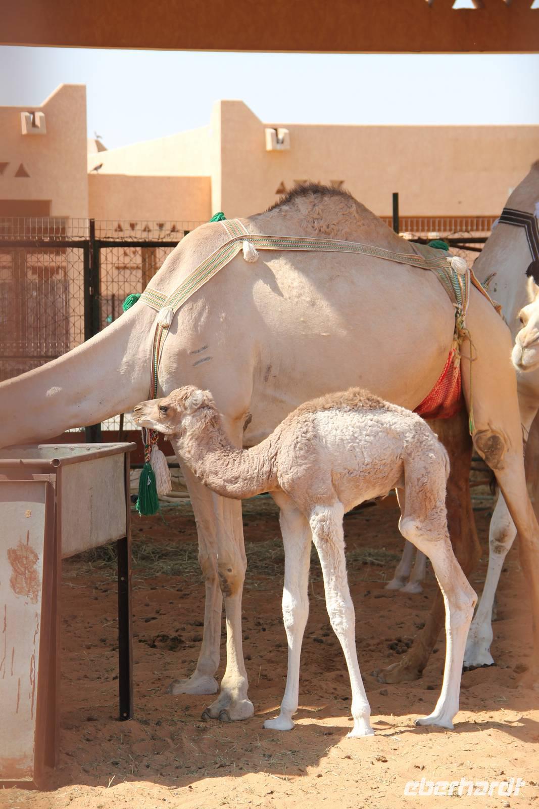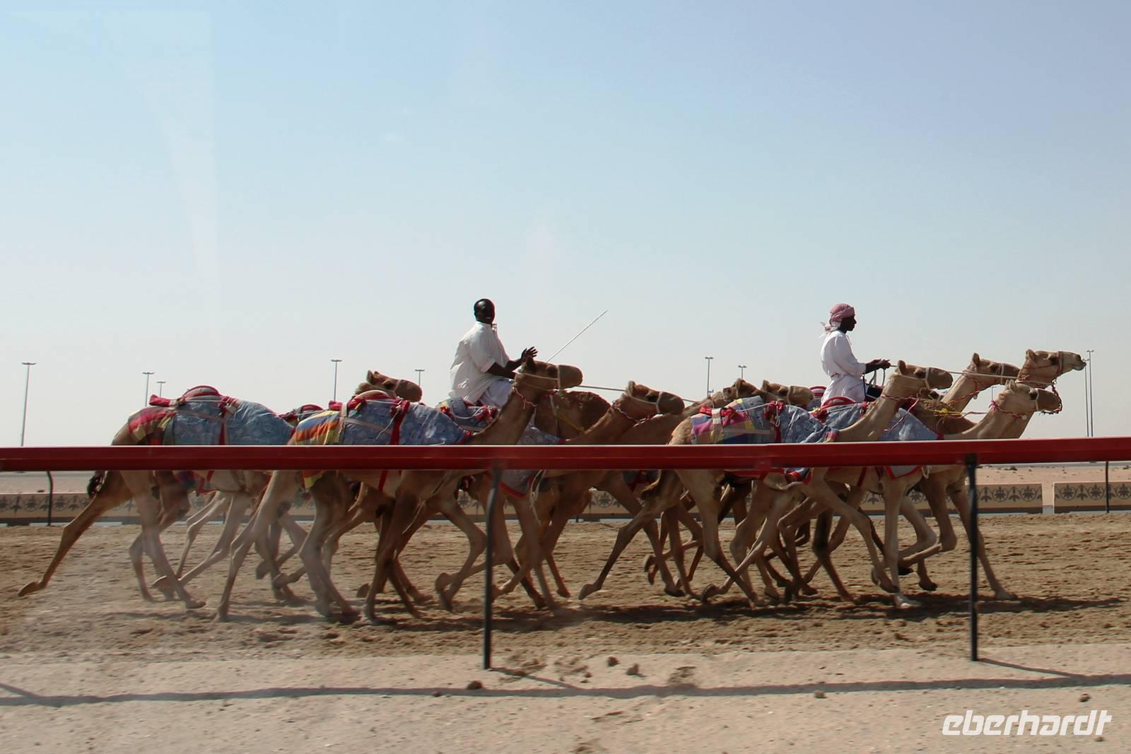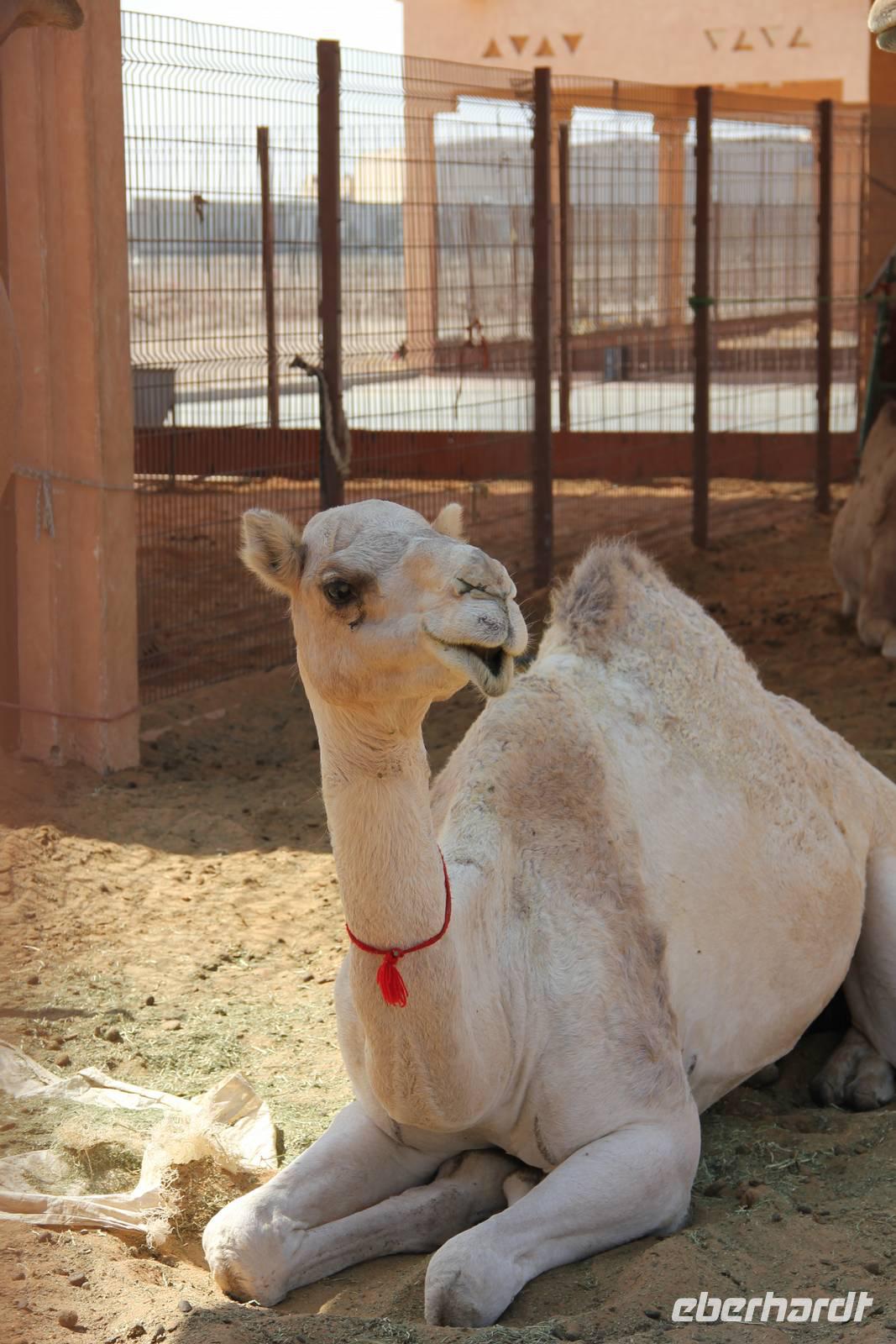 Am Vormittag fuhren wir von Dubai in das Emirat Abu Dhabi. Unser Ziel war die Oasenstadt Al Ain. Unterwegs kamen wir an einer Kamelrennbahn vorbei, auf der auch gerade Trainings stattfanden. Während unserer Fahrt durch die recht karge Landschaft konnten wir rechts und links immer wieder die verschiedensten Kamele sehen. Unser erster Stopp war dann der Kamelmarkt in Al Ain. Hier konnten wir sehen, wie die Kamele gehalten werden, bevor die verkauft werden und wir konnten sogar den Kauf eines Kamels mit verfolgen.