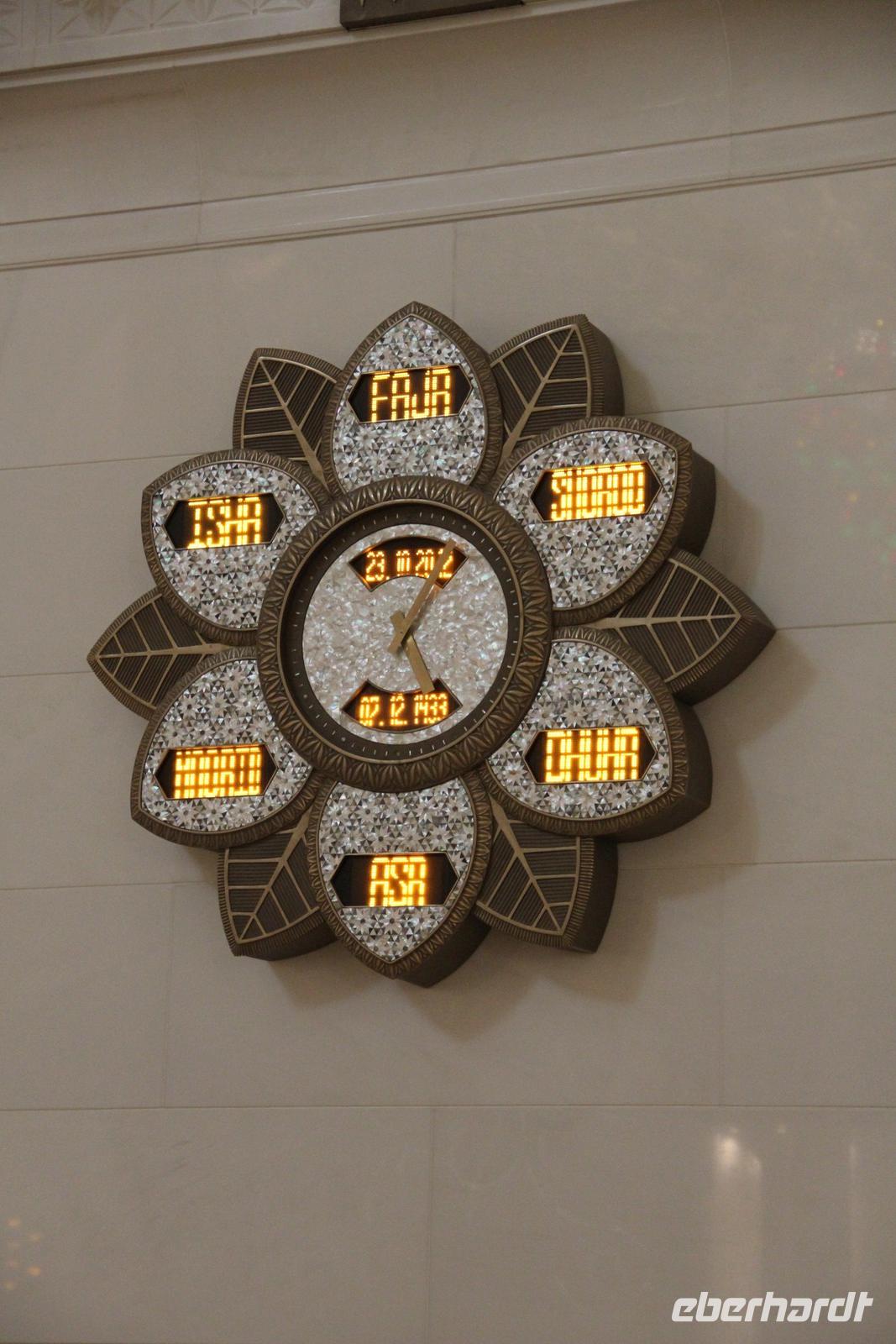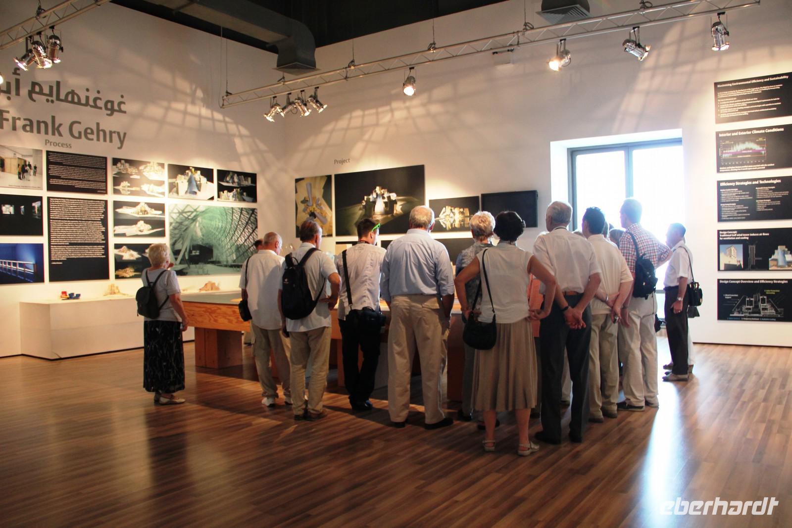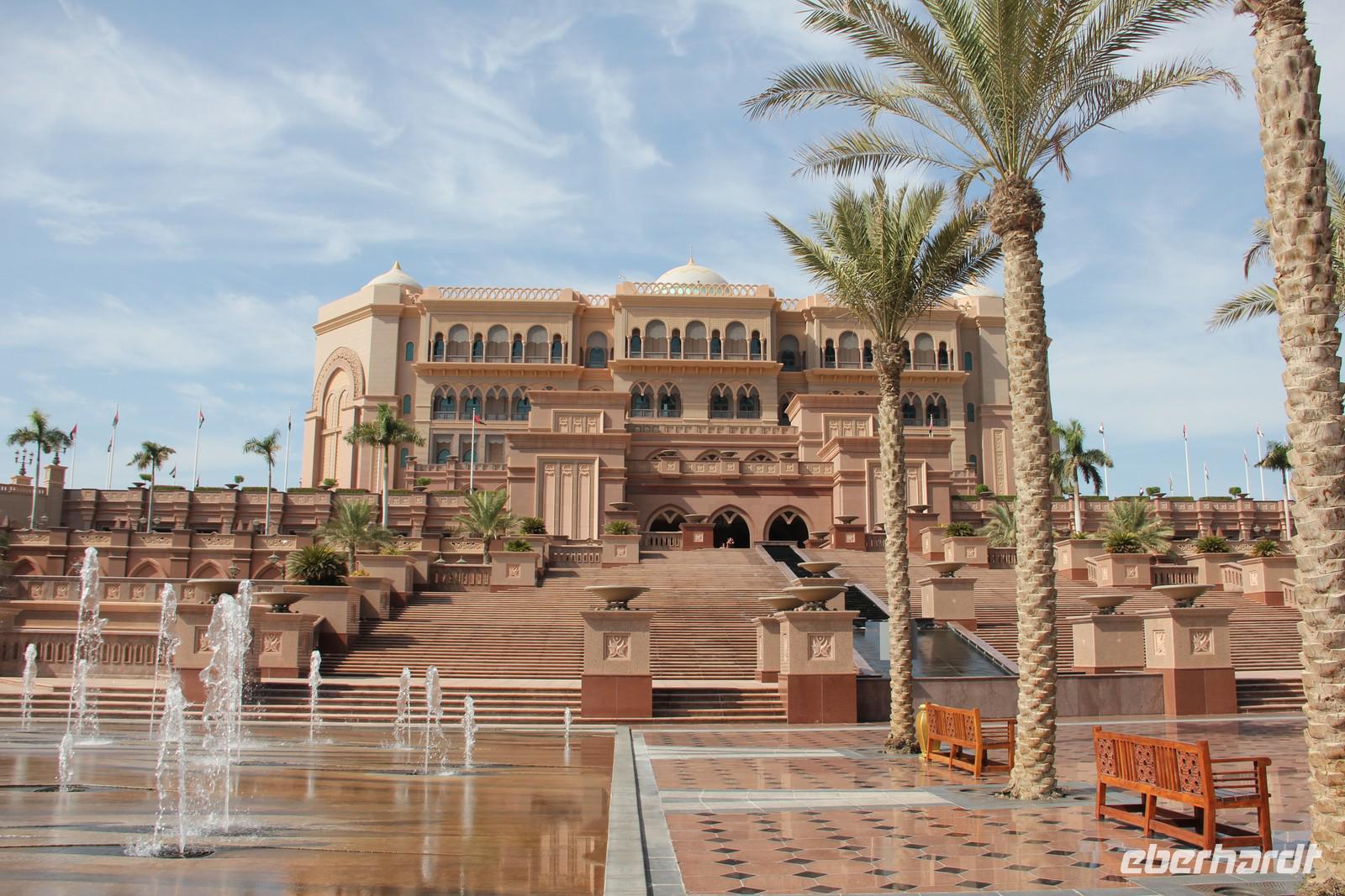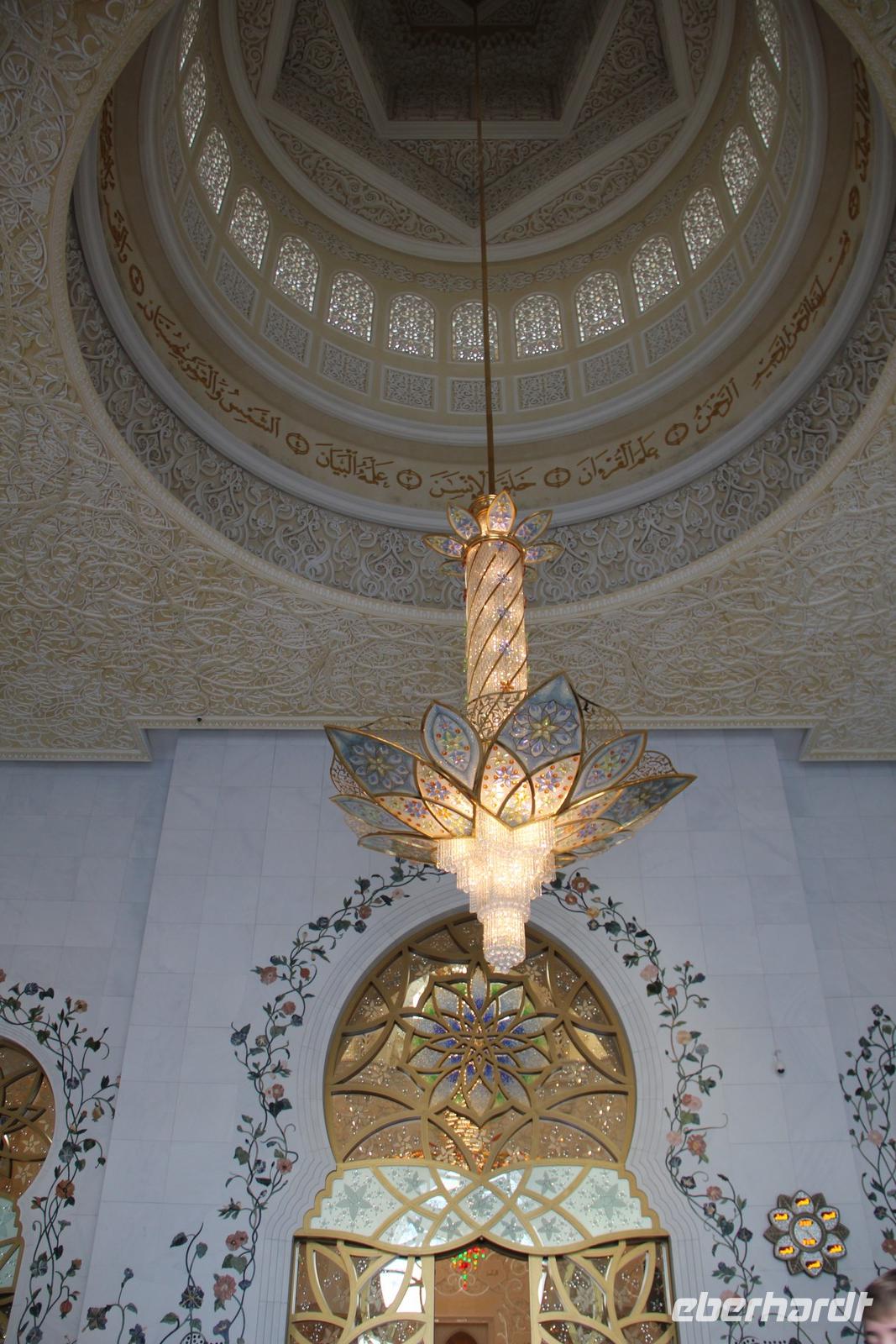 Nun wartete das Highlight des Tages auf uns: das Emirates Palace. Hier besichtigten wir erst kurz eine Ausstellung über Saadiyat Island, einem Teil von Abu Dhabi, der gerade im Entstehen ist. Schließlich wartete unsere Teestunde. Wir bekamen Kaffee, Tee und die besten Häppchen, die man sich nur vorstellen kann. Das Blattgold auf den kleinen Desserts bildete dabei das i-Tüpfelchen. Nach der Teestunde konnte man sich auch noch etwas in dem von Marmor und Gold nur so strotzendem Hotel umsehen, bevor wir weiter zur Sheik Sayed Grand Moschee fuhren.