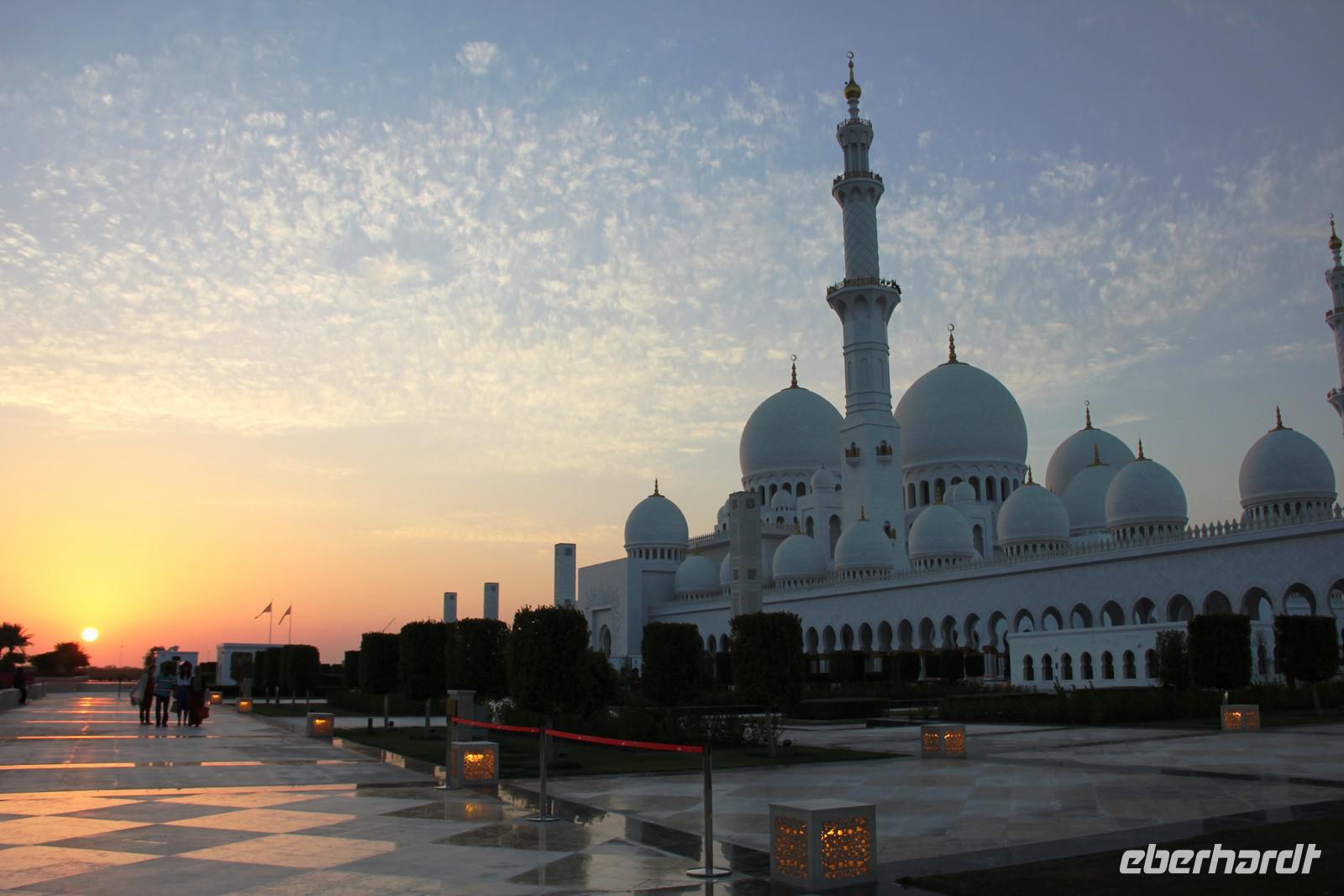 Dort angekommen mussten sich einige Gäste inklusive mir eine Abaya überziehen, bevor wir die Moschee betreten durften. Wir bestaunten alles und konnten nachdem wir die Moschee verlassen hatten noch einen perfekten Sonnenuntergang genießen. Dann ging es wieder nach Dubai zurück.