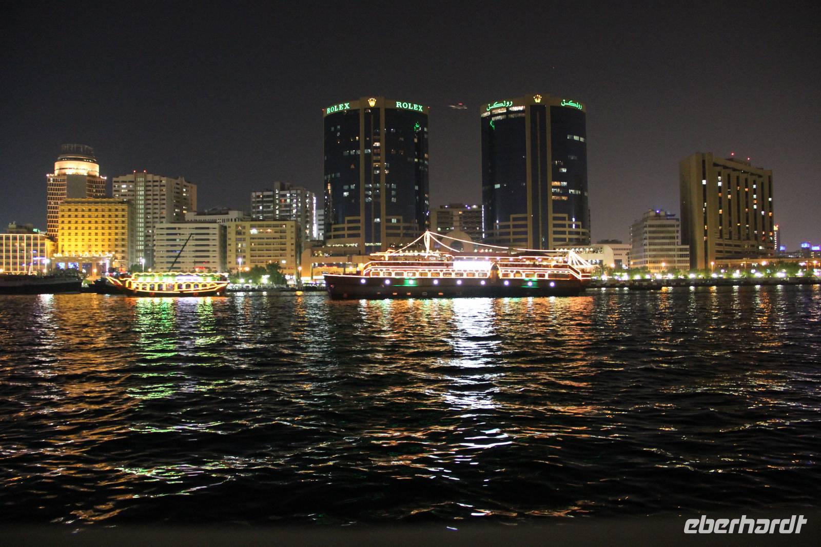 Am Abend genossen dann einige Gäste ihr Abendessen bei einer fakultativen Dhow Fahrt auf dem Dubai Creek. Bei einer herrlichen Aussicht genossen wir die Fahrt und das Essen. Das allabendliche Feuerwerk rundete den Abend gelungen ab.