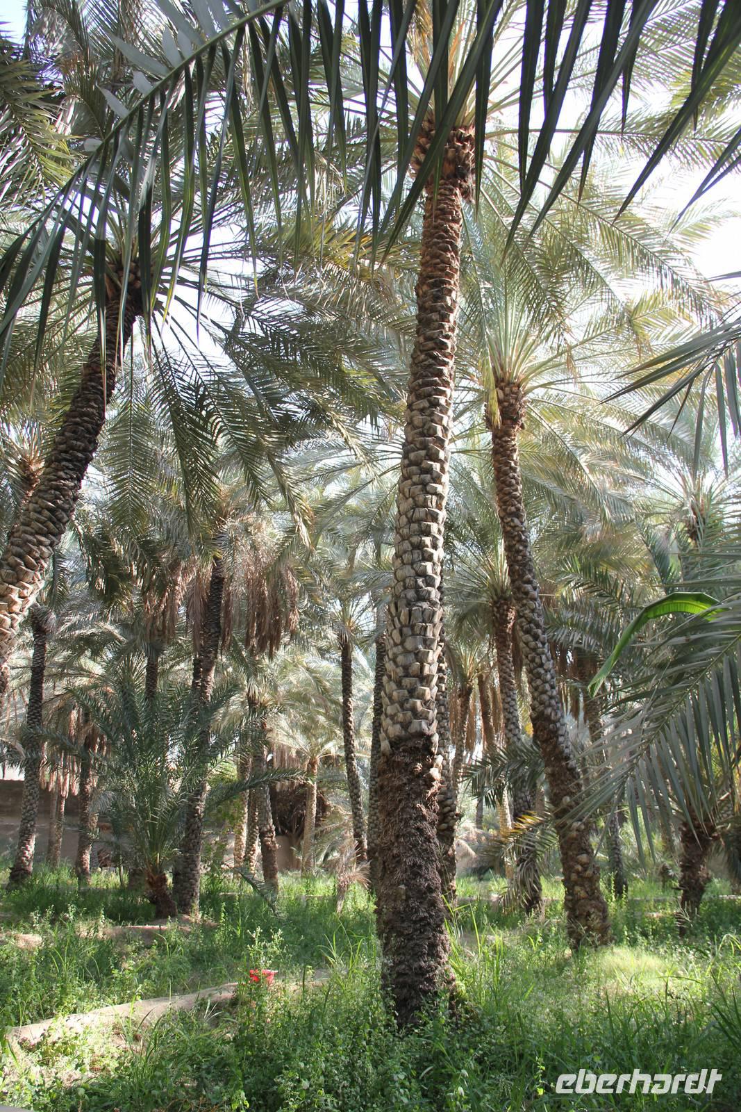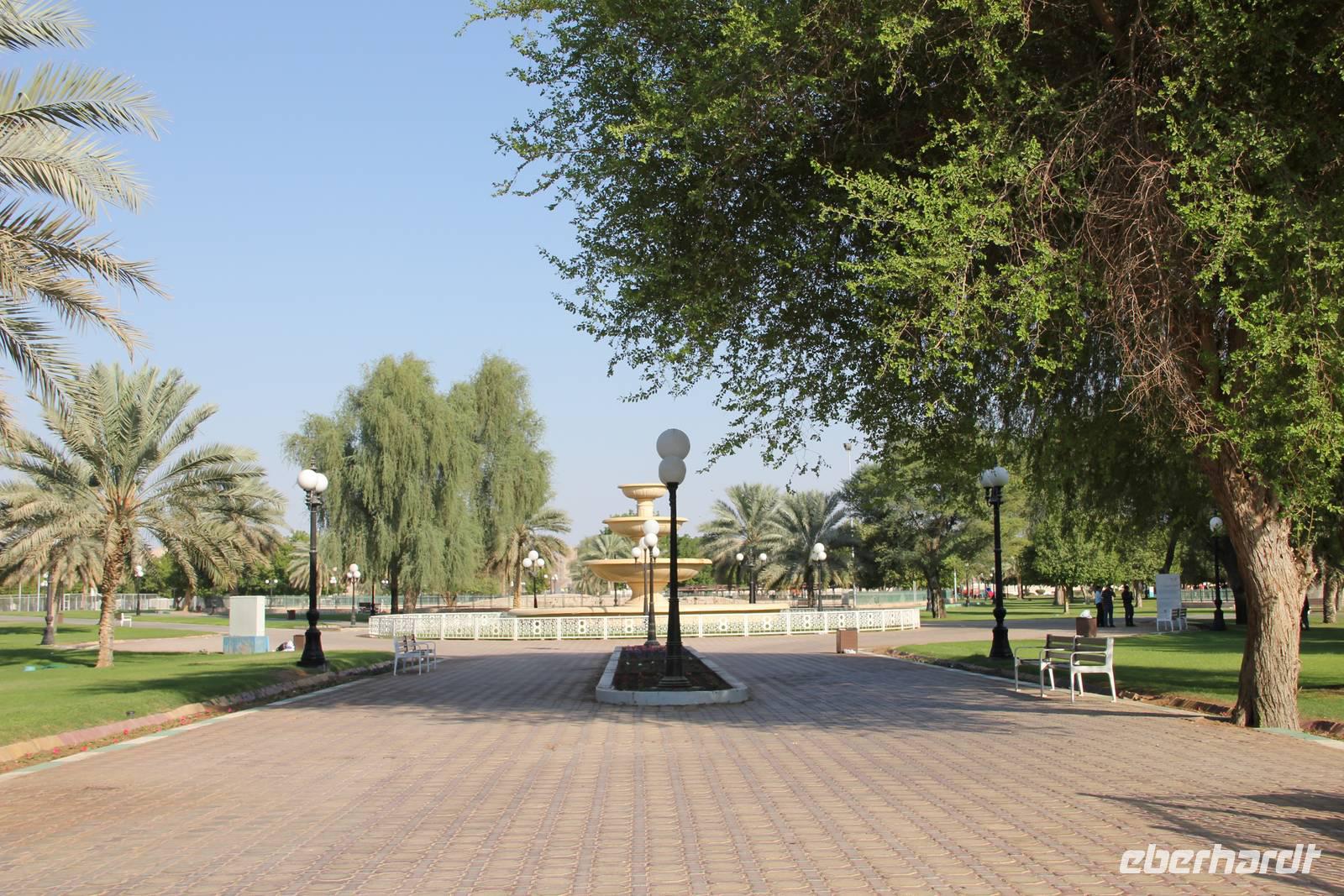 Nachdem wir in einer der zahlreichen Shopping Malls zu Mittag gegessen hatten, haben wir uns auf den Weg zur Oase von Al Ain gemacht. Hier konnten wir grün über grün sehen und uns wurde gezeigt, wie man barfuß eine Palme hochklettert.