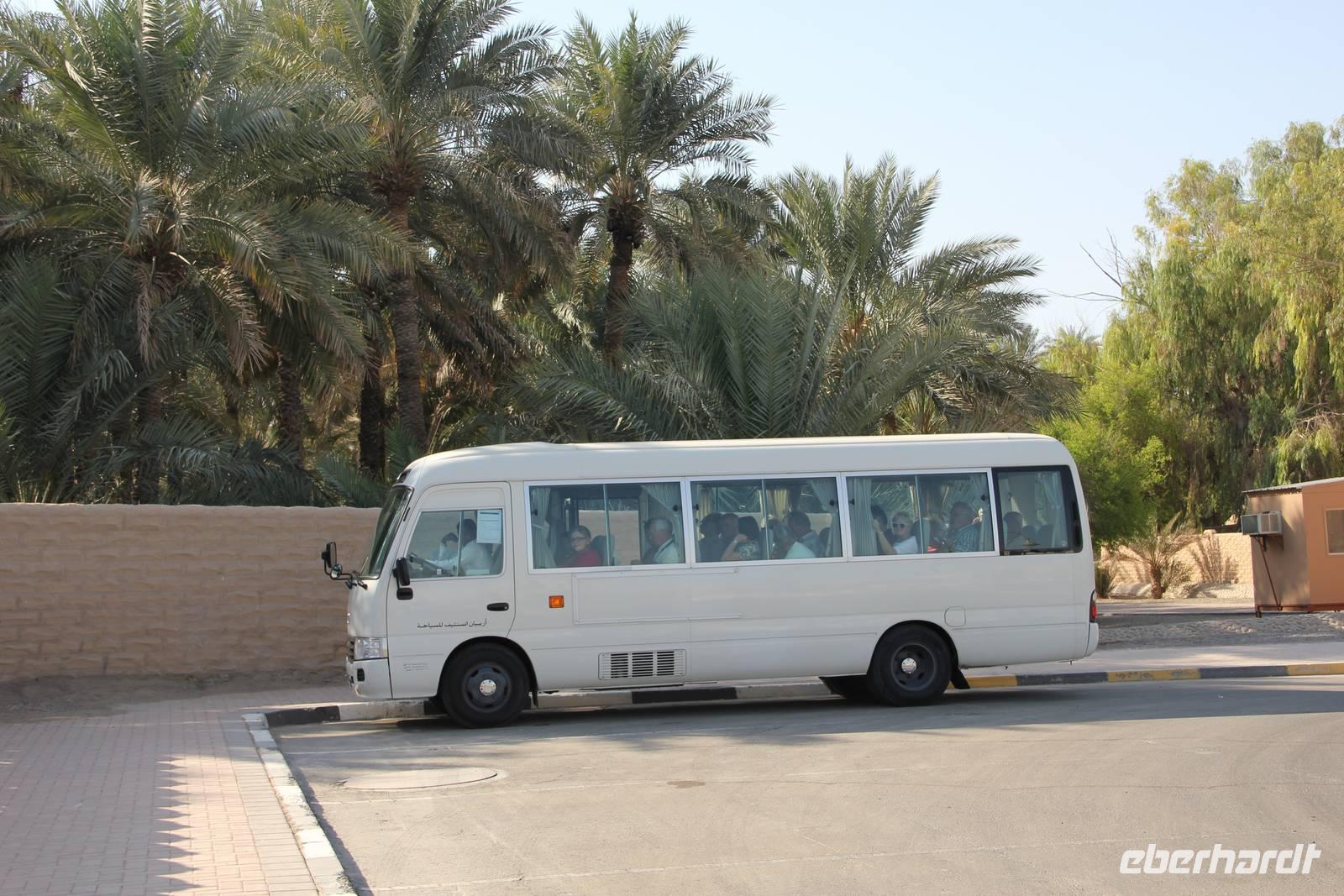 Vor der Heimfahrt zog sich Anja, unserer örtliche Reiseleitung, noch ihre Abaya an, um uns einmal zu zeigen, wie man solch ein Gewand trägt und so konnten wir natürlich auch ein Foto von einer Frau in Abaya machen, was in den Emiraten sonst eigentlich nicht erlaubt und nicht erwünscht ist.