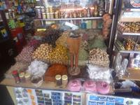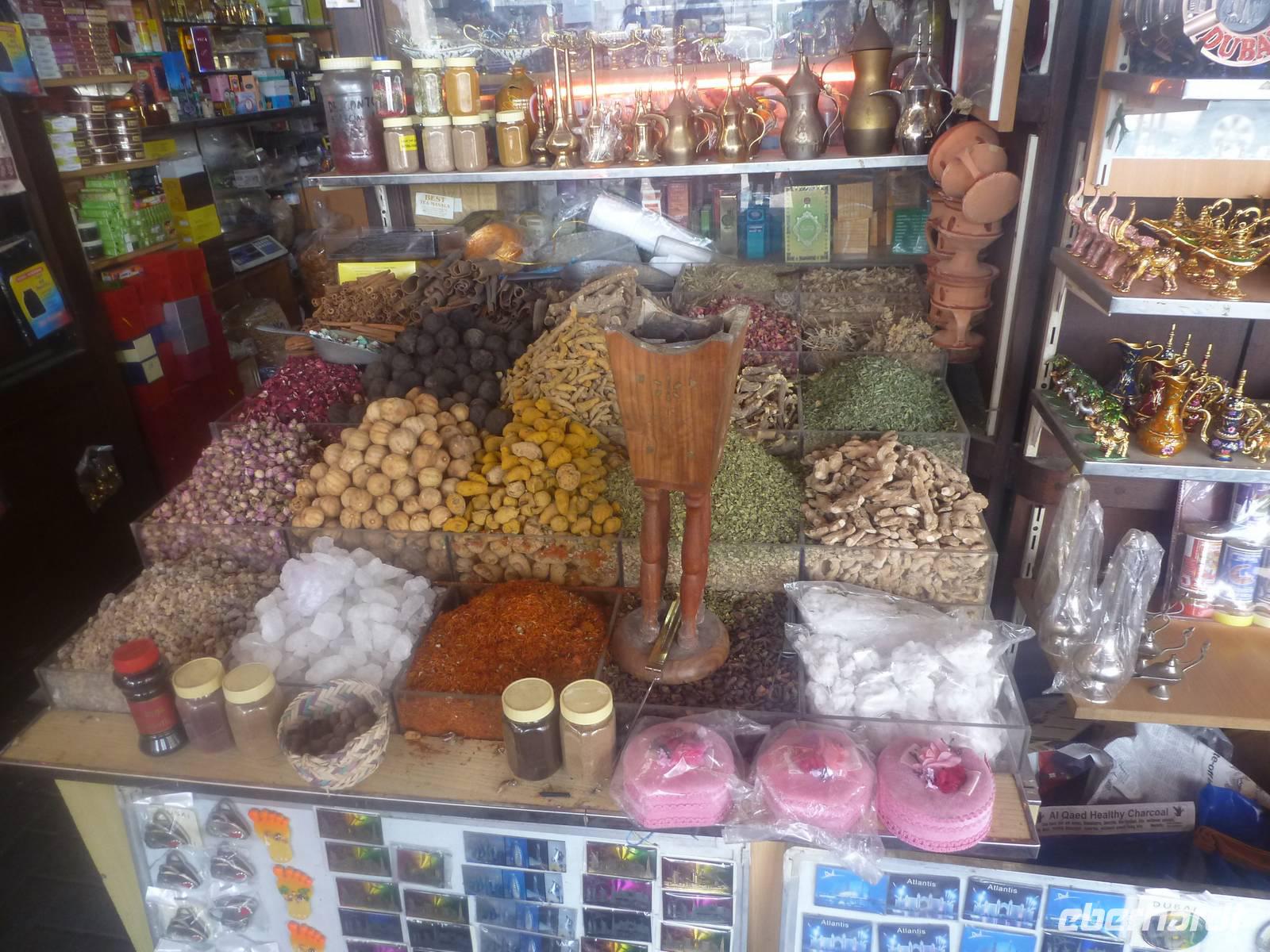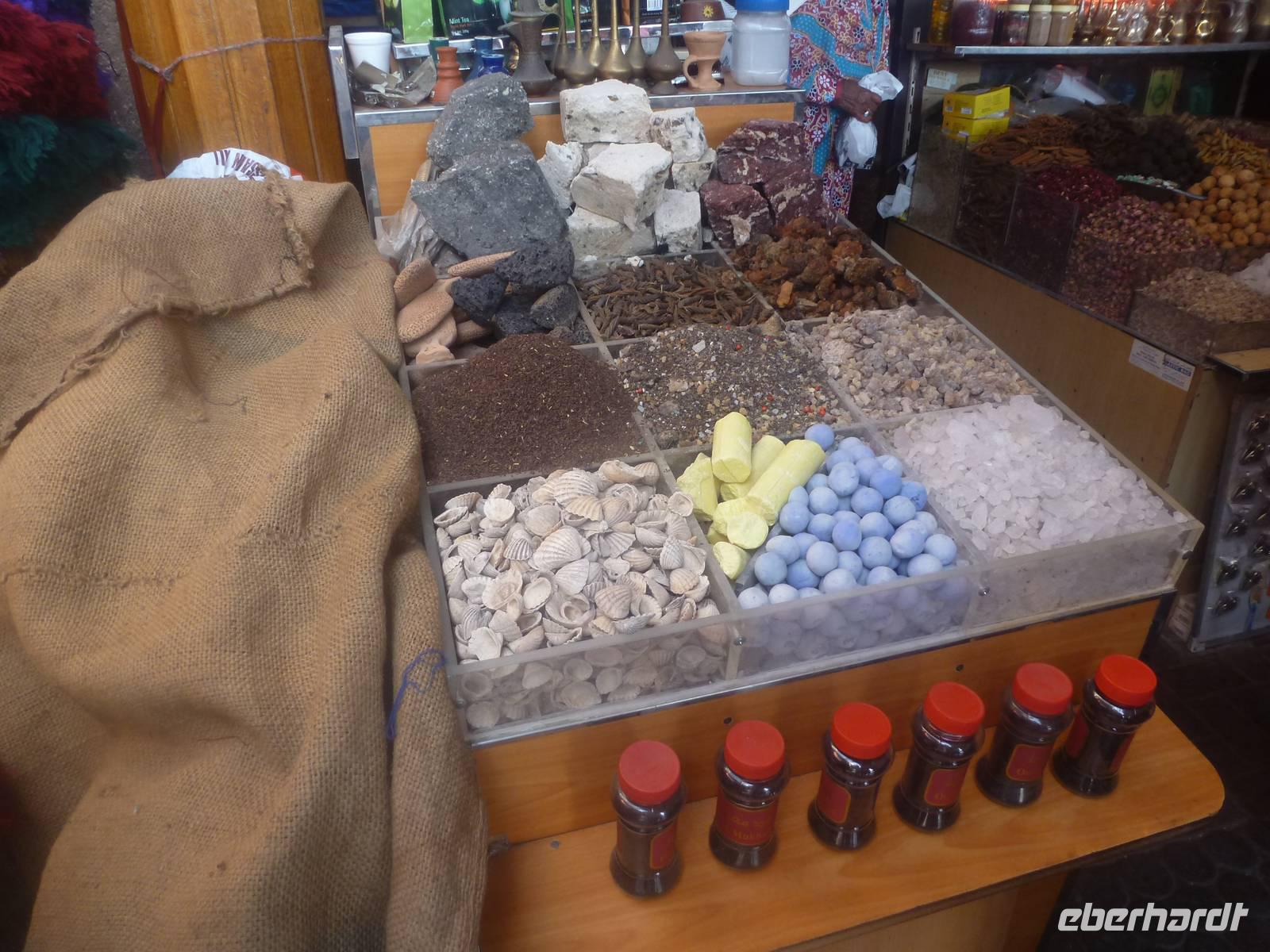 Die engen Gänge sind voll gestellt mit Säcken und Schüsseln, mit exotischen Kräutern und Gewürzen aus dem Nahen Osten und Asien. Es riecht betörend und die Fotomotive sind vielversprechend. So decken sich viele von uns mit orientalischen Gewürzen für zu Hause ein.