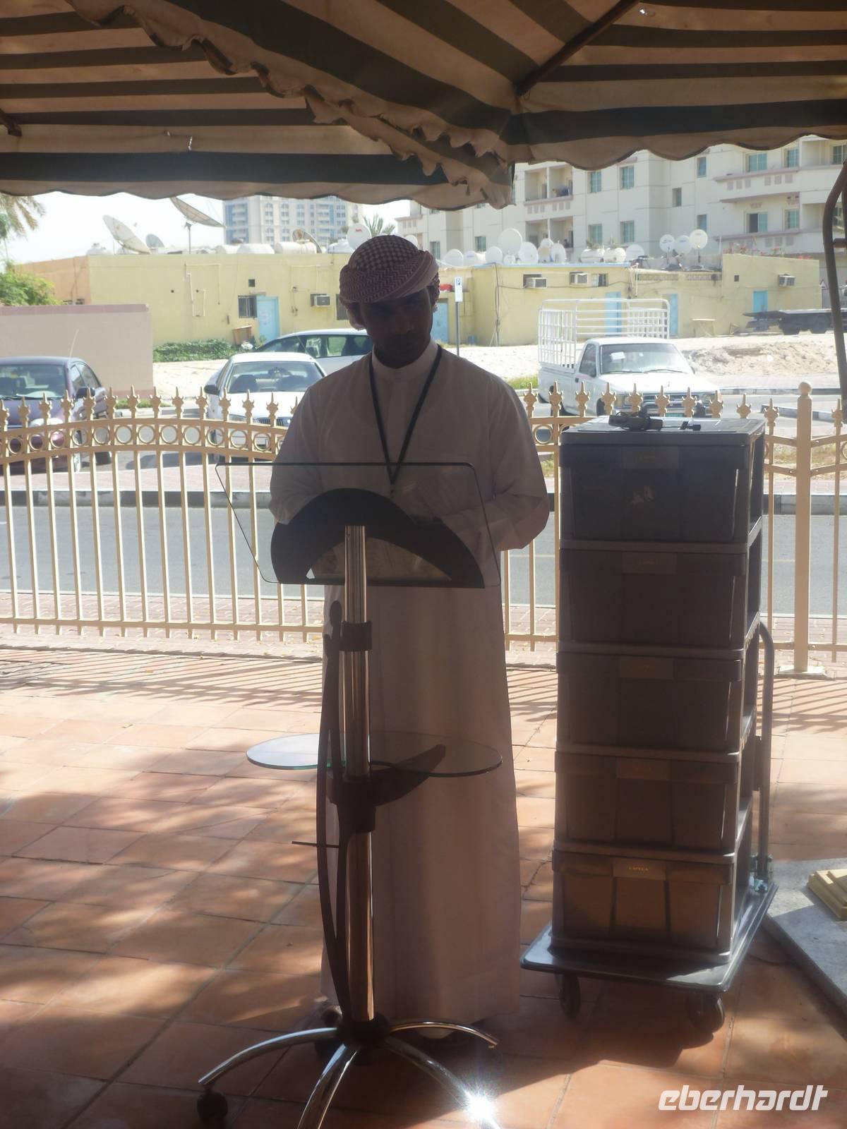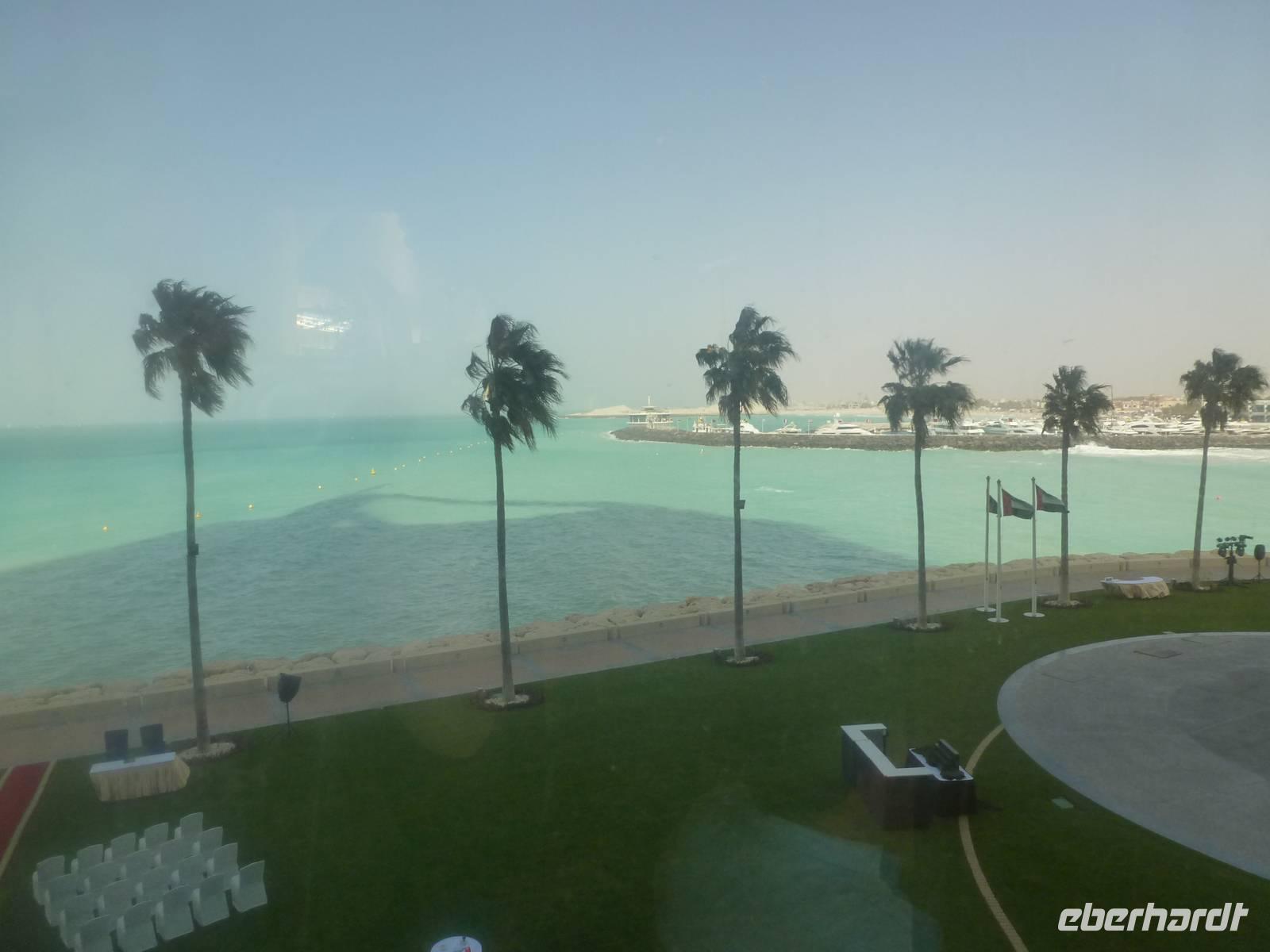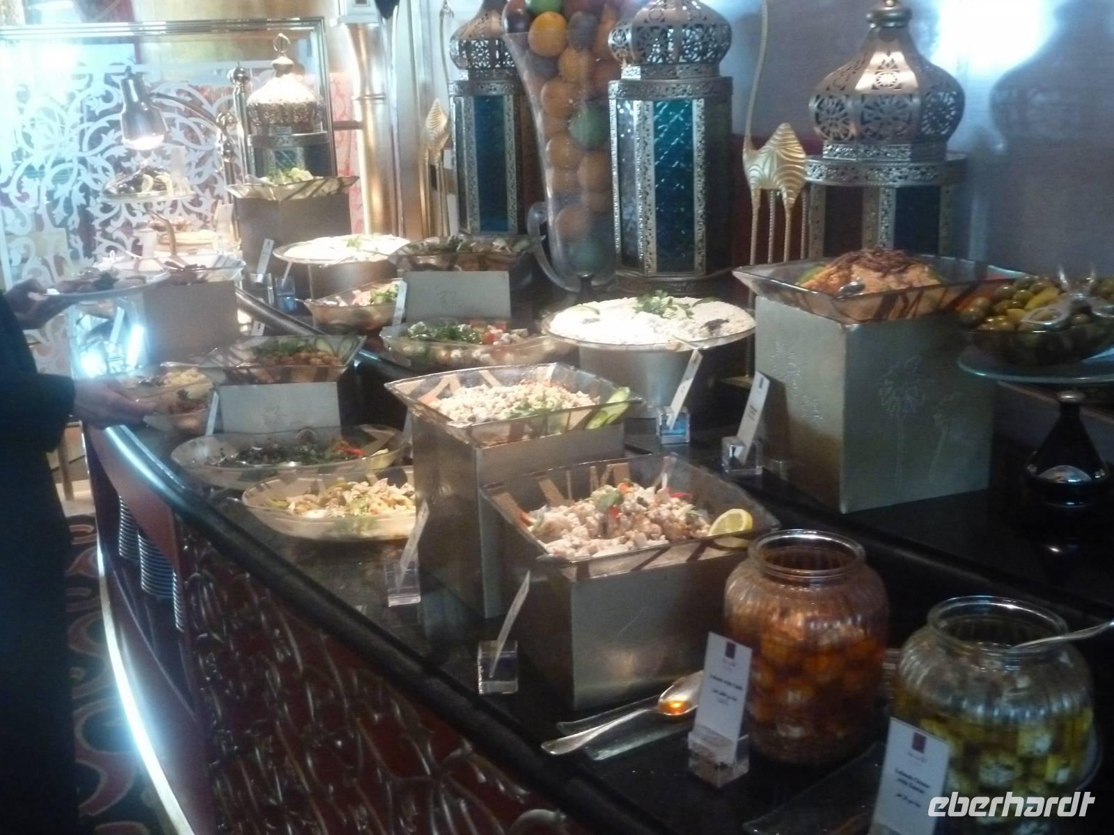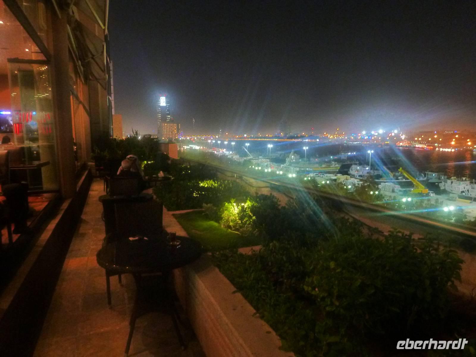 Am Abend läd Eberhardt zum Dinner in die Twin Towers ein. Hier genossen wir ein leckeres iranisches Buffet mit allerlei Köstlichkeiten und genossen den atemberaubenden Blick auf die kleinen Dhau Boote auf dem Dubai Creek, die abends wunderbar beleuchtet sind. In jedem Fall ein Highlight unserer Reise nach Dubai. So störte es uns auch nicht, dass in vielen arabischen Restaurants kein Alkohol angeboten wird. Einige ließen den Abend später bei einem Bierchen oder einem Glas Wein in der hoteleigenen Bar ausklingen.