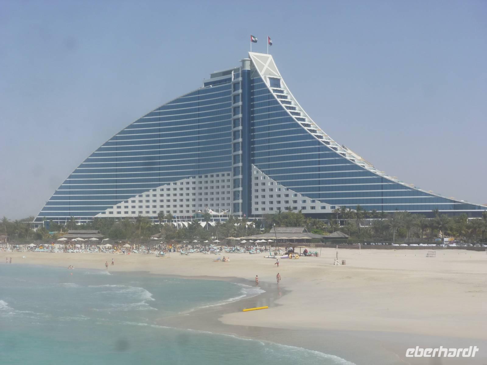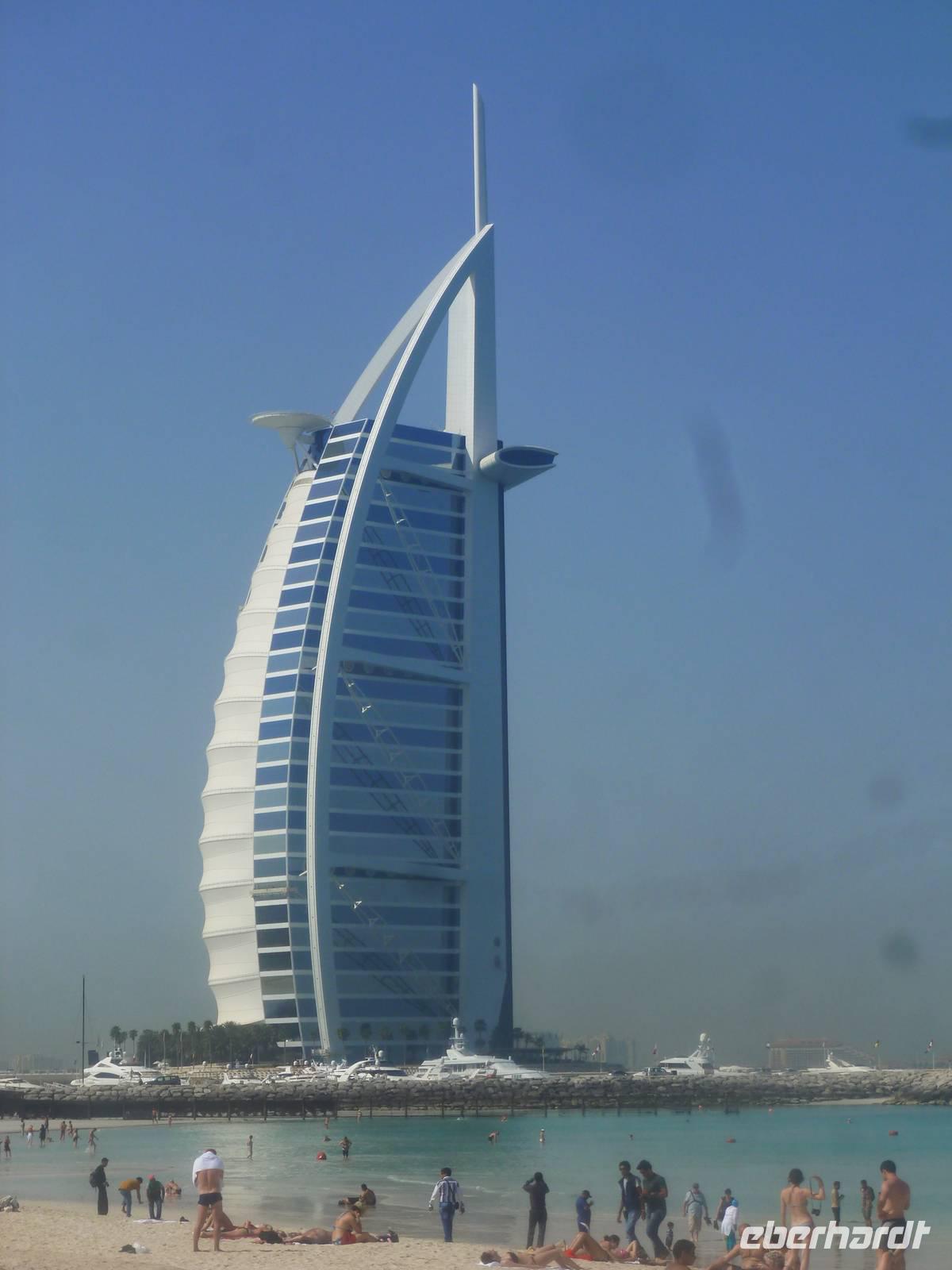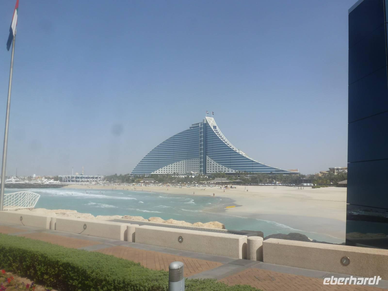 Heute beginnt ein neuer Tag und dieser steht im Zeichen des Modernen Dubai. Wir fahren entlang der Sheikh Zayed Road zuerst zur Jumeirah Moschee und geniessen hier auch den ersten zaghaften Blick auf den Burj Khalifa. Anschliessend reisen wir weiter zum Fotostopp am Viele testen mit den Zehenspitzen die Wassertemperatur und empfinden diese als angenehm.