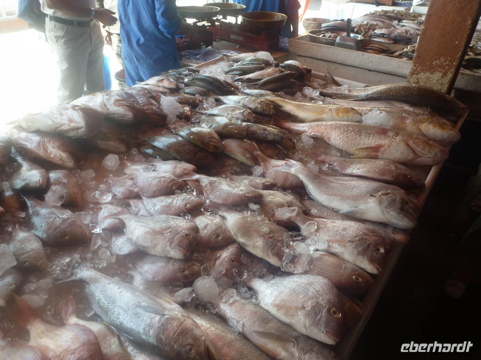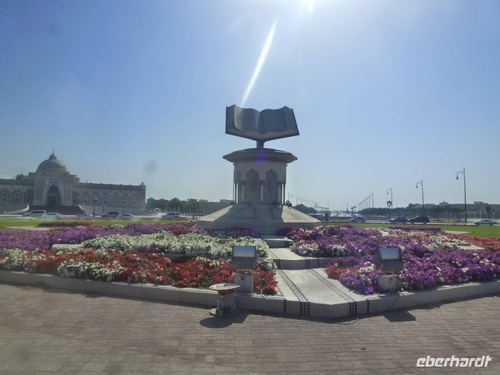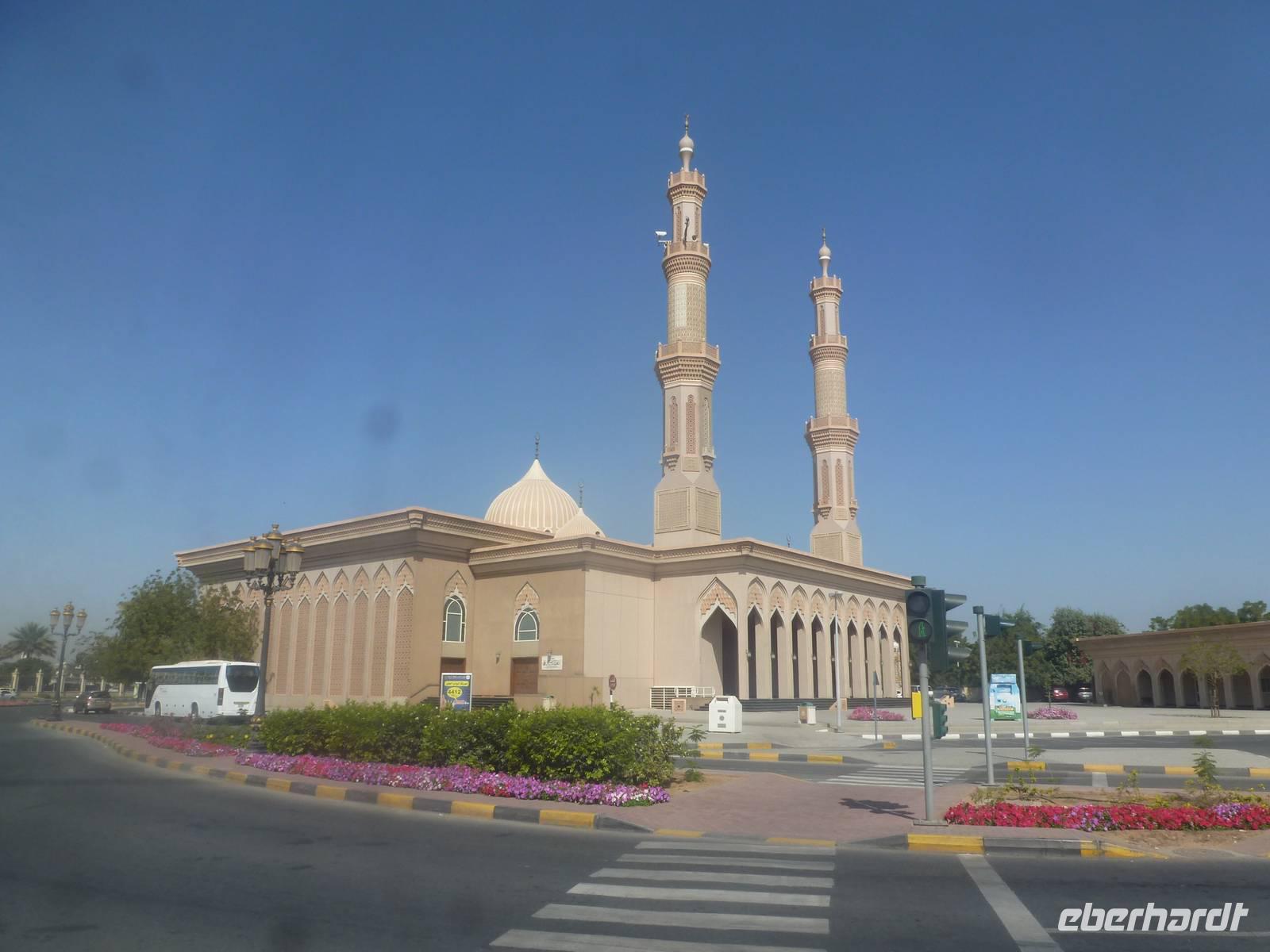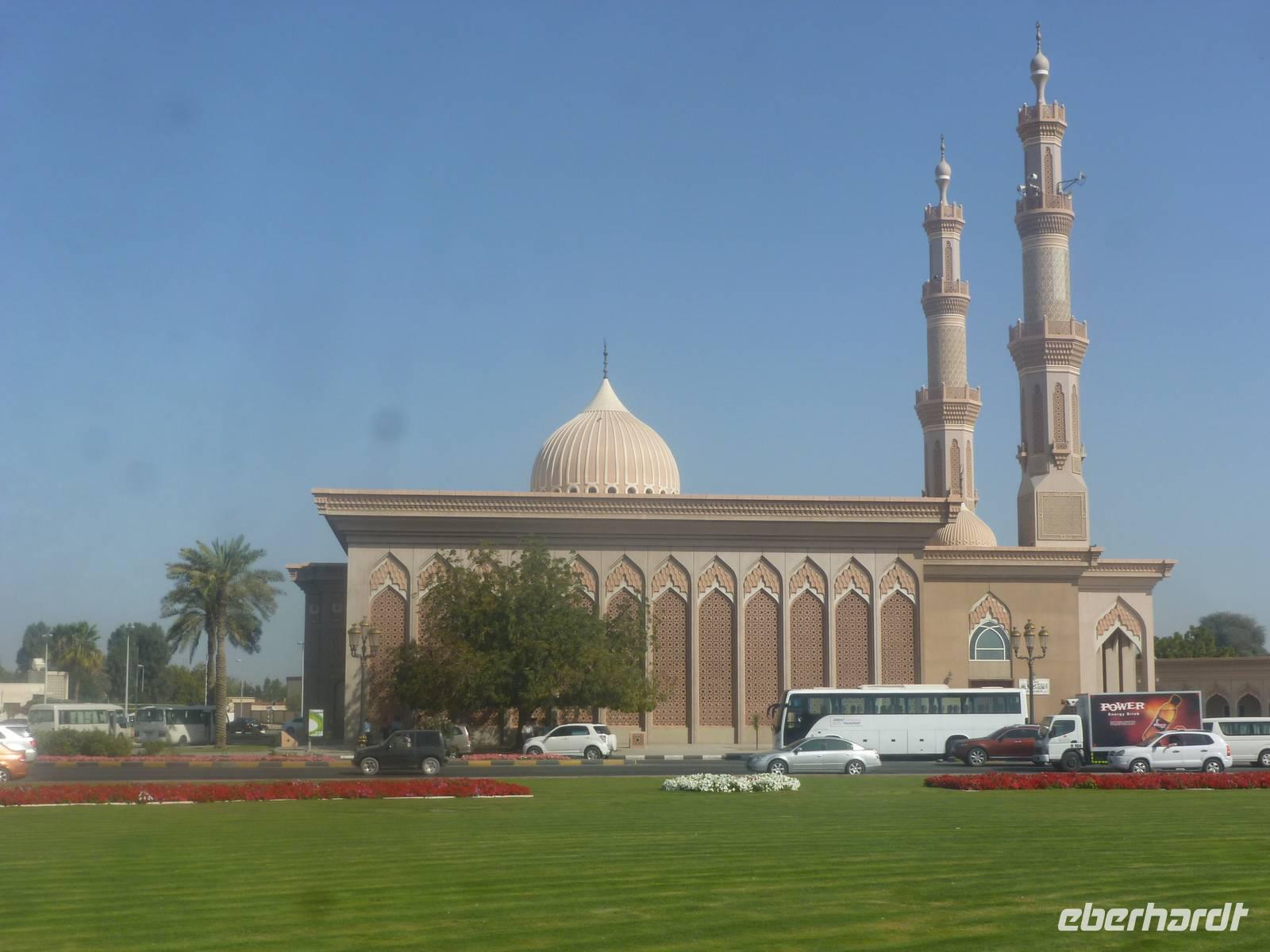 Heute reisen wir in das drittgrößte Emirat der Vereinigten Arabischen Emirate, nach Sharjah. Schnell fällt uns auf, dass Sharjah im Gegensatz zu Dubai und Abu Dhabi weniger aufwendig gestaltet ist. Auffällig sind hier vor allem die großzügigen Grünanlagen und die perfekt restaurierten islamischen Bauwerke. Bei einer Stadtrundfahrt lernen wir das Emirat näher kennen. Wir halten zuerst an der King Faisal Moschee und an dem wunderschönen Kreisverkehr mit seinem Koran, der viel für Tumult gesorgt hat wie wir von Anja erfahren. Unsere nächste Station ist heute der Fischmarkt. Hier erfahren wir allerlei Wissenswertes über die Landwirtschaft. Anja erzählt uns, dass in der Wüste natürlich nicht sonderlich viel wächst und der Großteil aller Obst - und Gemüsesorten exportiert wird. Wir erfahren auch, dass der Fischfang natürlich noch eine große Rolle in den Vereinigten Arabischen Emiraten spielt.