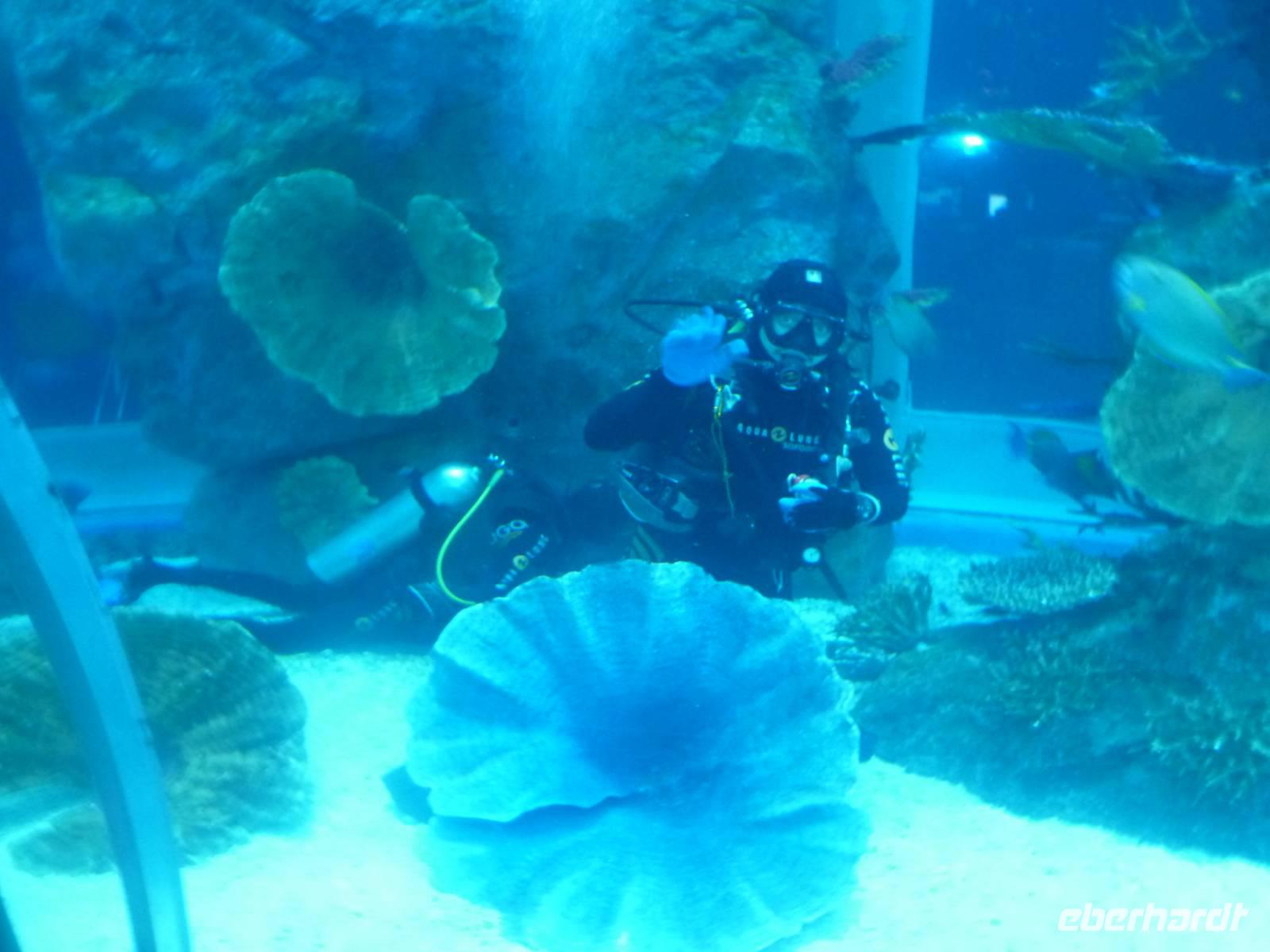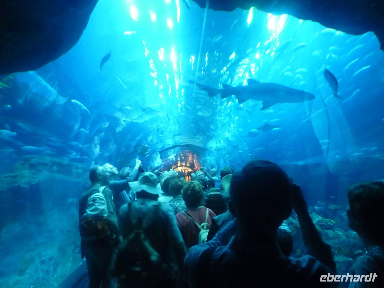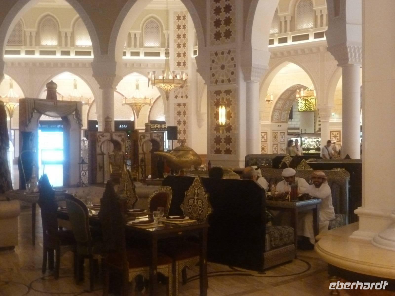 Nach einer kurzen aber feinen Mittagspause erwartet uns zunächst der Unterwasserzoo und anschließend das gigantische Dubai Aquarium, in dem sich 33 000 Meerestiere tummeln. Durch einen Tunnel ergeben sich weitere Einblicke in die Unterwasserwelt. Außerdem besticht die Mall noch mit einer Eislaufbahn und einer spektakulären Kletterwand sowie einem Wasserfall.